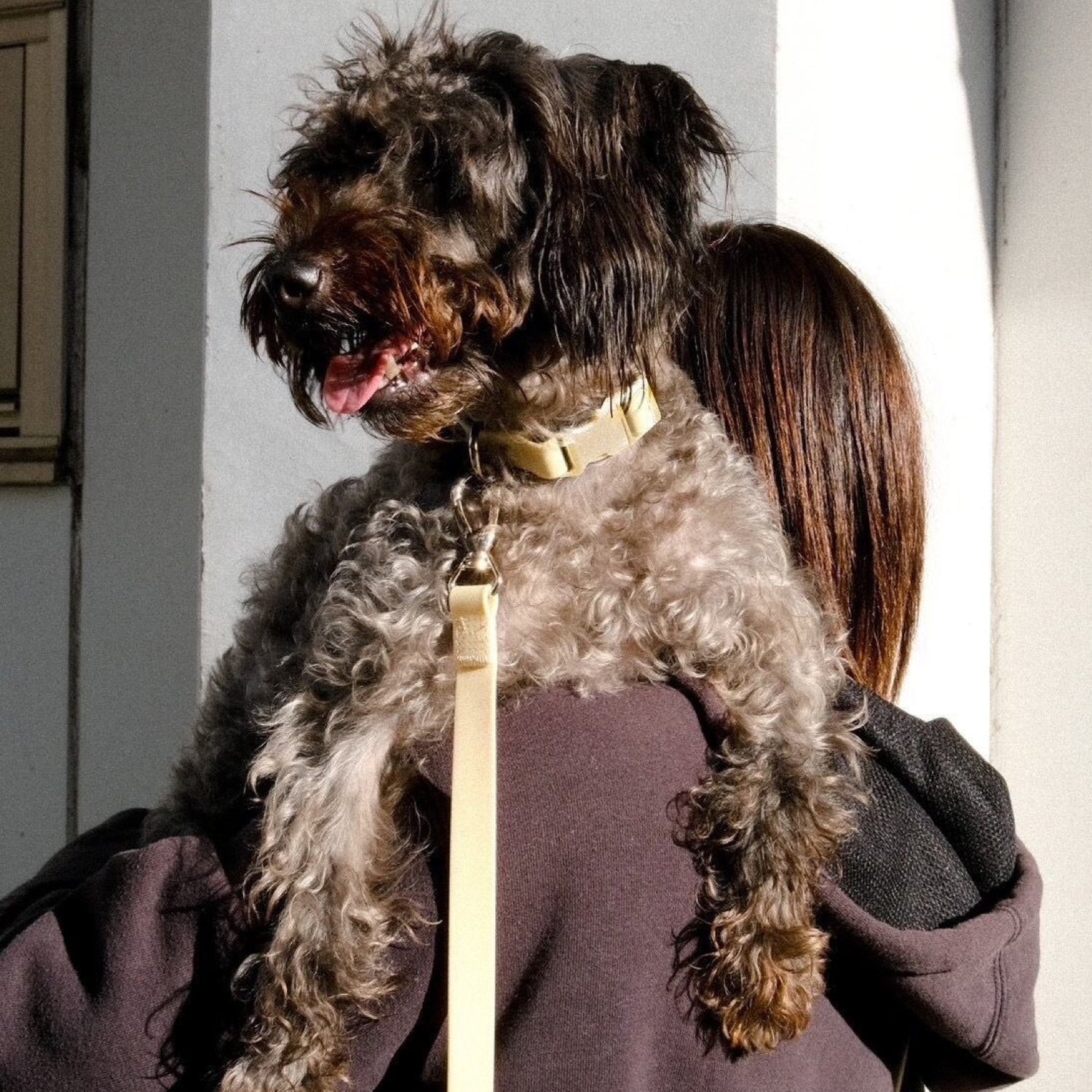 Ouidaは私の妹がやっているDOG&CATのブランドです。リードはカスタムによってショートリード・ショルダーリードにもなるし、どんなに汚れてもさっと拭けば汚れが落ちるのが嬉しい。リードとカラーを色違いで使っても可愛いです。