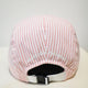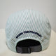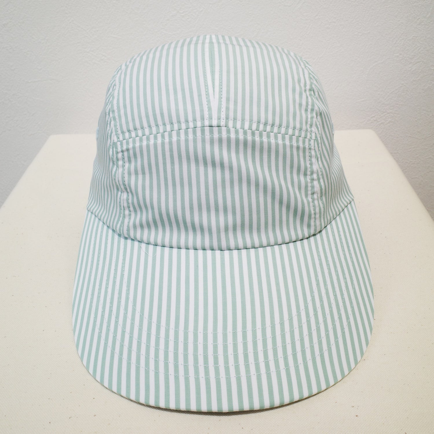 イタリア製ドレスシャツ生地を使用。コットン100%の細番手の縦糸と横糸を高密度に織った、光沢感、ハリ腰のある上質な素材。裏面には吸水速乾性のあるポリエステル/コットンを使用。よりキレイなフォルムを出すため計算して作られた5パネルのオリジナルボディに、9cmのロングブリムタイプ。後部にロゴ刺繍入り。