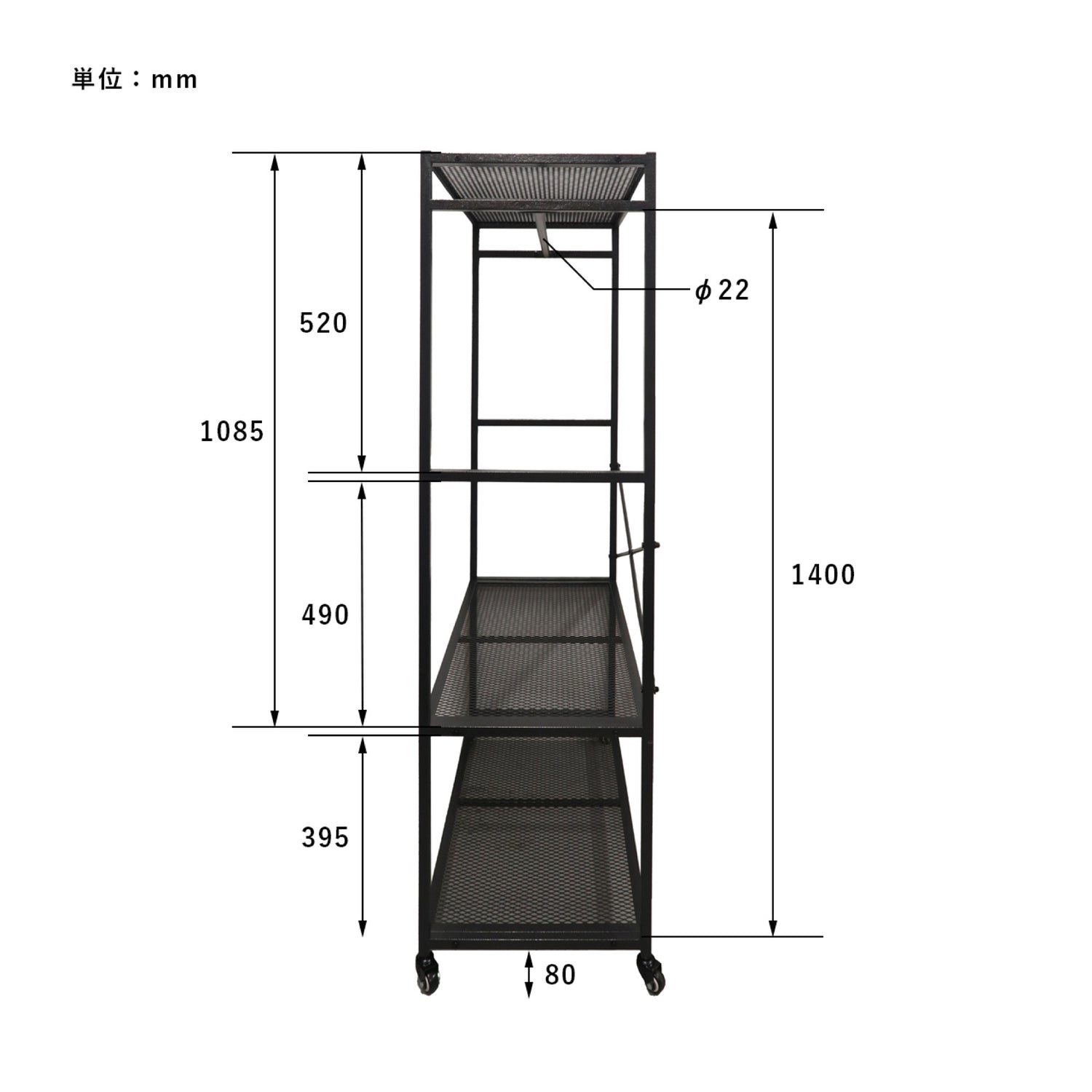 軽量アイアンメッシュシェルフ(キャスター付き)
