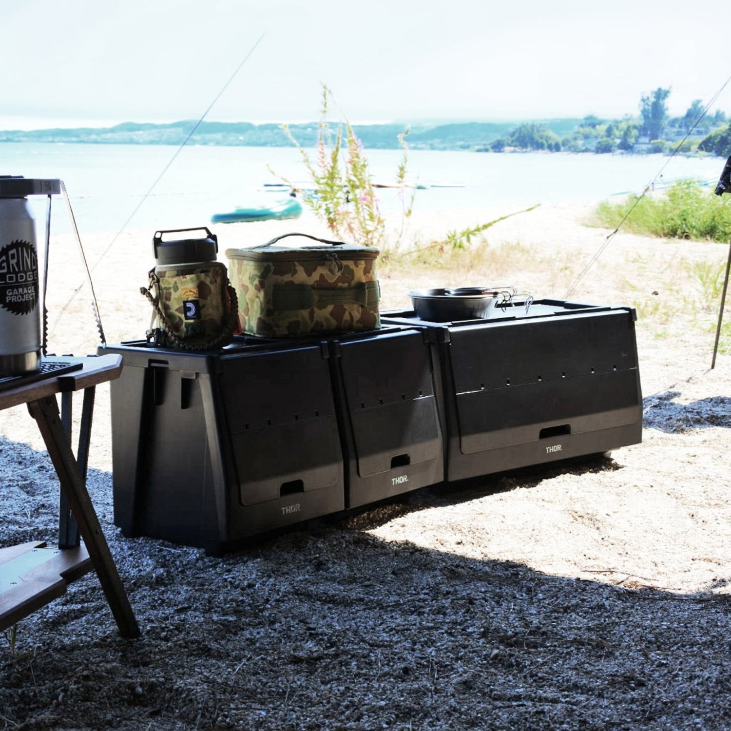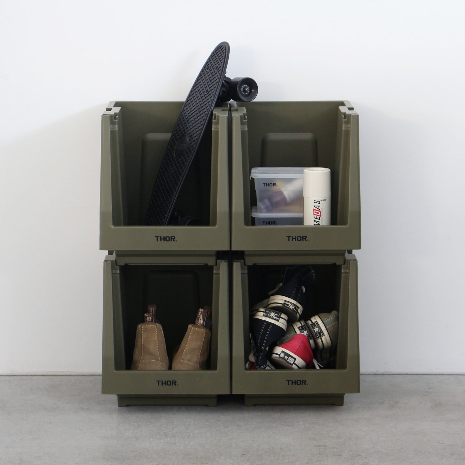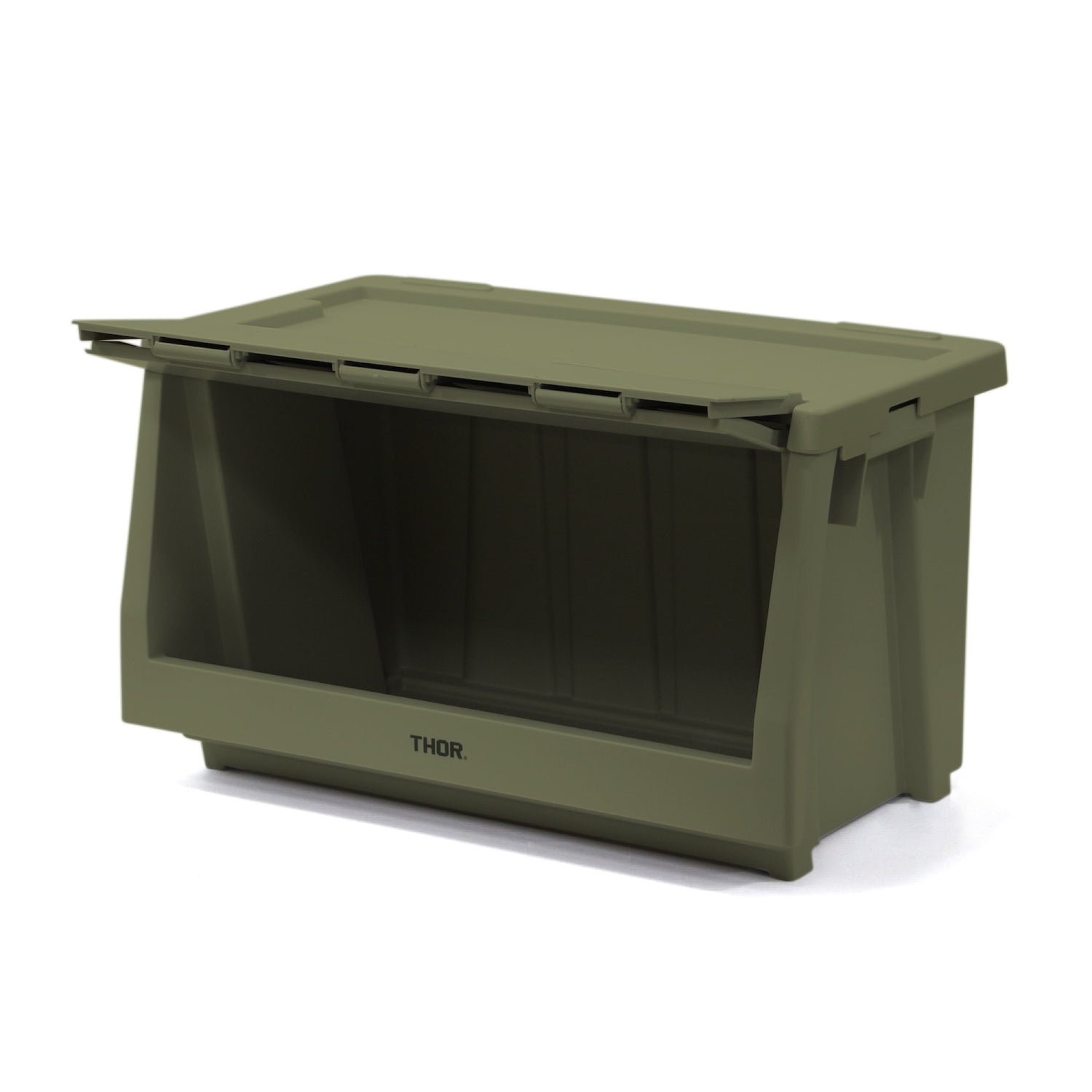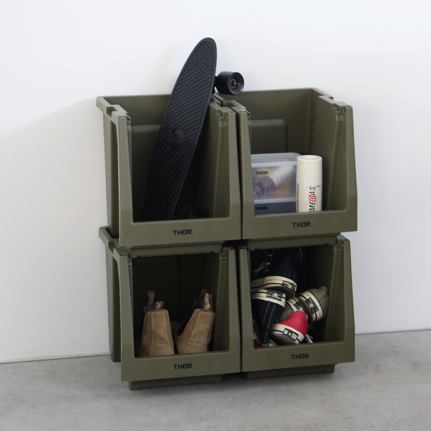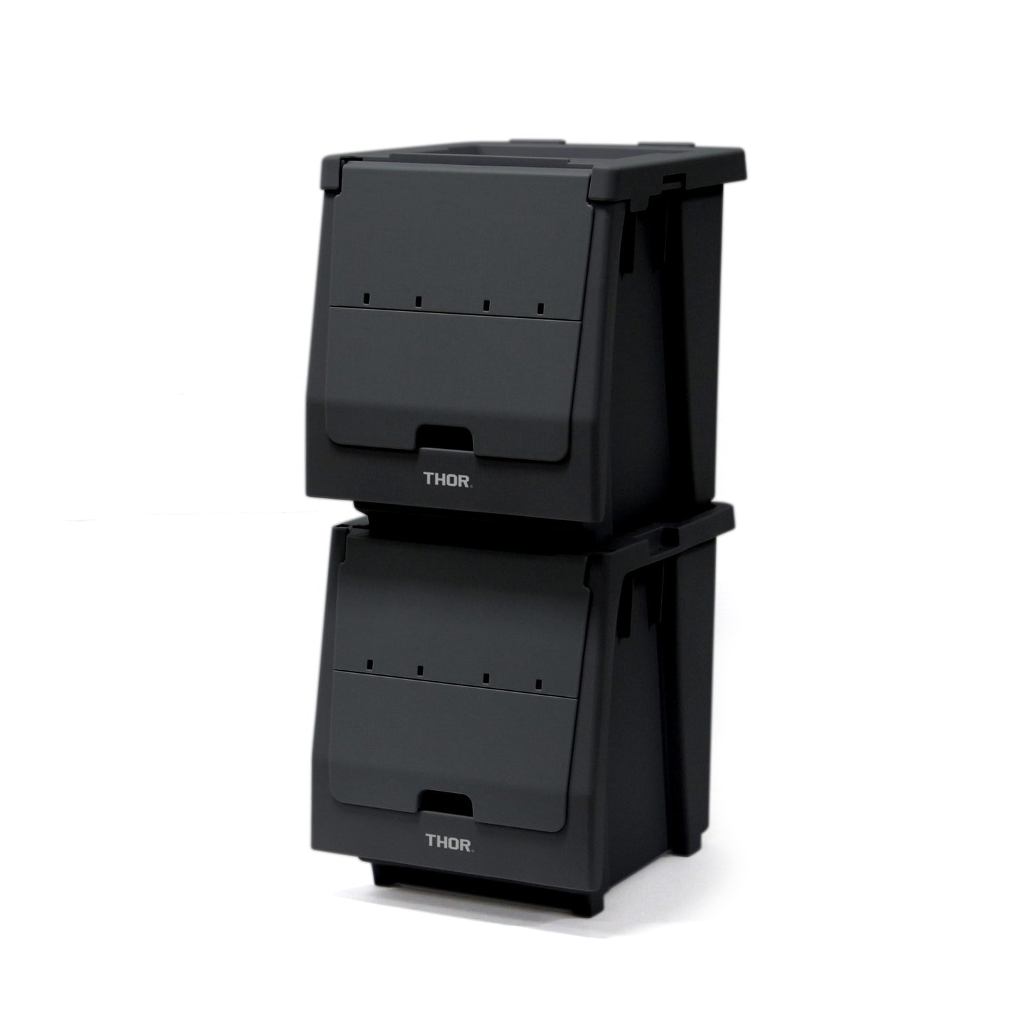 コンテナボックスといえば今や定番のTHORから、室内での収納に特化した「スタッキングシェルフコンテ」が登場したので、我が家にも導入しました。業務用感の強い従来のコンテナに比べて、生活空間にも馴染みやすい仕様。正直、画像だけ見たときは「ちょっと物足りないかも…?」と思ったけど、実際に部屋で使ってみるとこれがちょうどいい。無骨さは残しつつ、ちゃんと生活雑貨に寄り添ってる感じ。前扉は開けっぱなしに固定できて、出し入れもスムーズ。折りたたみコンテナによくある耐荷重20〜30kgとは違い、これは120kgとタフ仕様(さすがTHOR)。アウトドアでももちろん活躍してくれそうです。内寸の高さが33.5cmあるのも地味に優秀で、2Lのペットボトルや雑誌も立てたまま収納できます。ここ、意外と見逃せないポイントかも。20Lと50Lの2サイズ展開で、カラーは3色。20Lはソファ横に置いてサイドテーブルとして使うのもアリ。3段までスタッキングOKなので、50L+20L×2の組み合わせなんかも楽しい。物置部屋の壁一面に並べて、配色を楽しむのもアリです。これは、室内収納の新しい定番になっていく気がしてます。