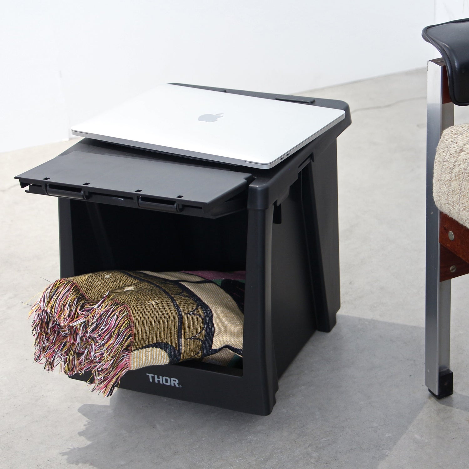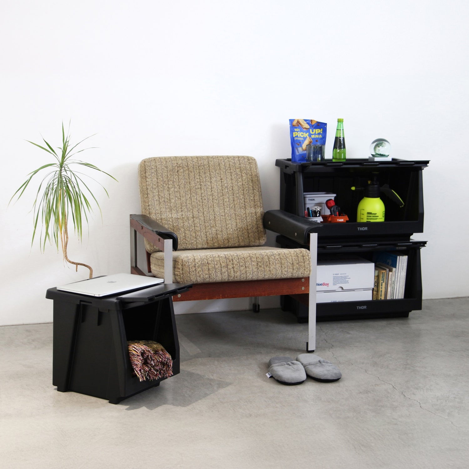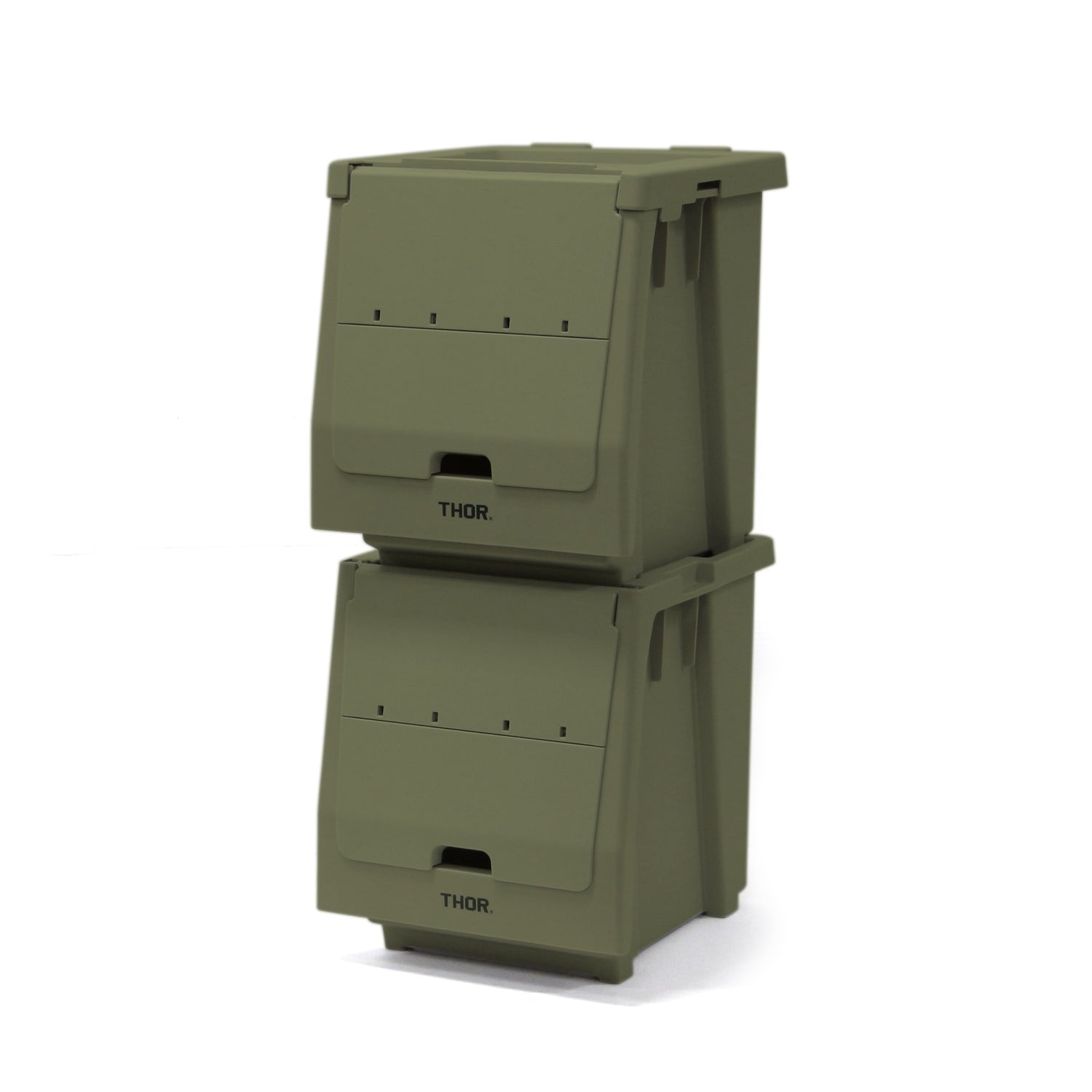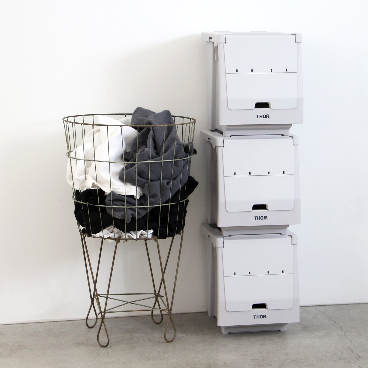 コンテナボックスといえば今や定番のTHORから、室内での収納に特化した「スタッキングシェルフコンテ」が登場したので、我が家にも導入しました。業務用感の強い従来のコンテナに比べて、生活空間にも馴染みやすい仕様。正直、画像だけ見たときは「ちょっと物足りないかも…?」と思ったけど、実際に部屋で使ってみるとこれがちょうどいい。無骨さは残しつつ、ちゃんと生活雑貨に寄り添ってる感じ。前扉は開けっぱなしに固定できて、出し入れもスムーズ。折りたたみコンテナによくある耐荷重20〜30kgとは違い、これは120kgとタフ仕様(さすがTHOR)。アウトドアでももちろん活躍してくれそうです。内寸の高さが33.5cmあるのも地味に優秀で、2Lのペットボトルや雑誌も立てたまま収納できます。ここ、意外と見逃せないポイントかも。20Lと50Lの2サイズ展開で、カラーは3色。20Lはソファ横に置いてサイドテーブルとして使うのもアリ。3段までスタッキングOKなので、50L+20L×2の組み合わせなんかも楽しい。物置部屋の壁一面に並べて、配色を楽しむのもアリです。これは、室内収納の新しい定番になっていく気がしてます。