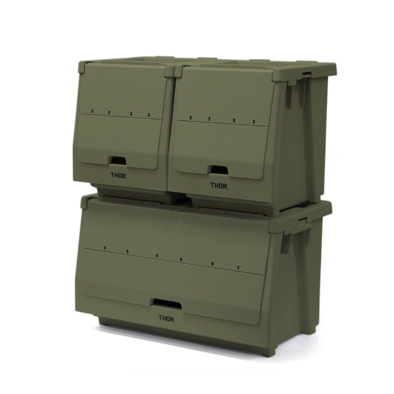 サイズは20Lと50Lの2種類。単体で使うだけでなく、20Lと50Lの異なるサイズ同士でも、しっかりと積み重ねることができる設計になっているため、用途やスペースに合わせて柔軟にアレンジが可能です。3段までスタキング可能。