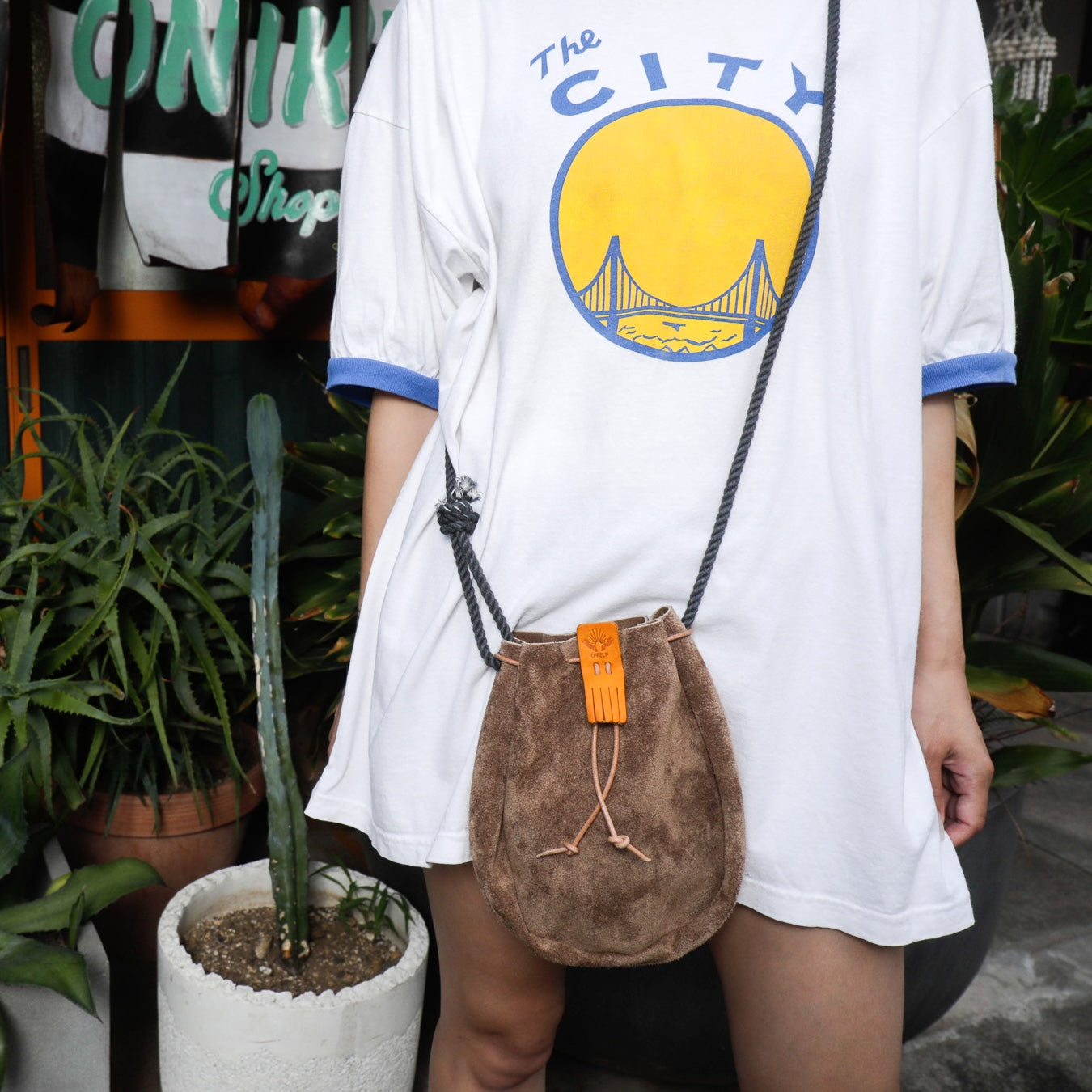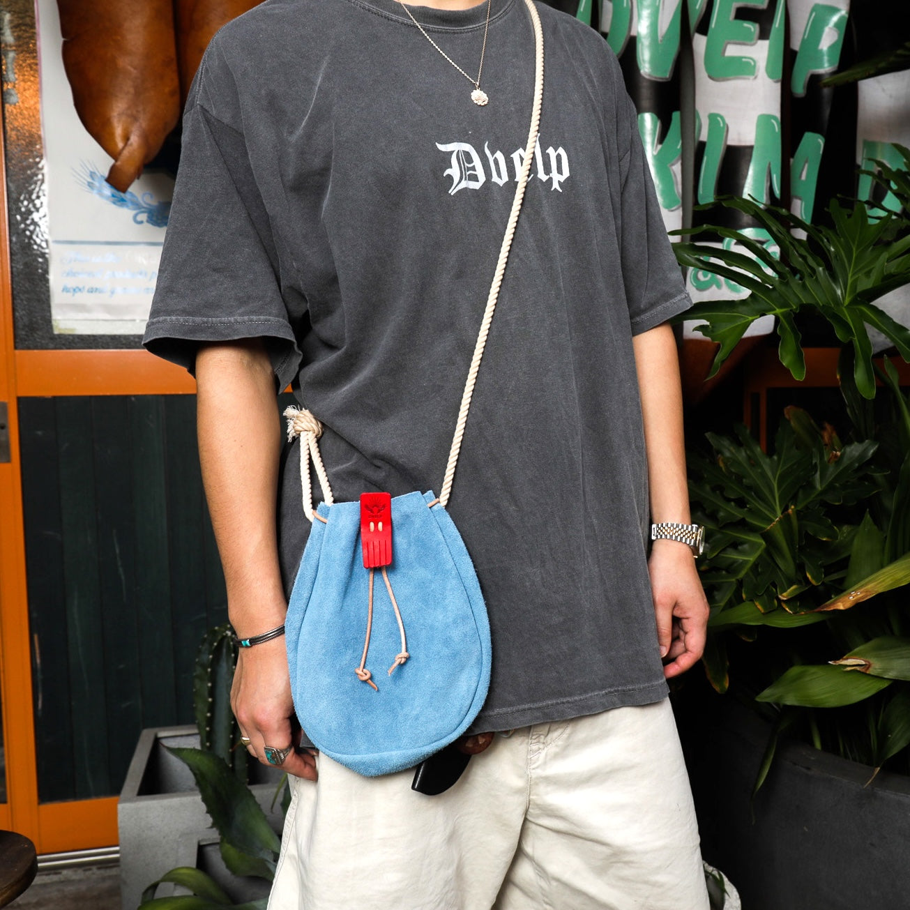 発色の良い国産スエードがファッションのポイントになる巾着タイプのショルダーバッグ。男女問わず、スタイル問わずの万能アイテム。丁度良いサイズなので、1年通して使えるところも最高。嬉しいmade in japanです!