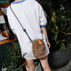 ショルダーロープは綿100%の国産ロープで、コーヒー染めのナチュラル、染料染めのブラックの2色からお選び頂けます。170cmと長めですが、片側の結び目を引っ張ることで、長さ調整可能になっていますので、身長問わずお好きな位置でご使用いただけます。