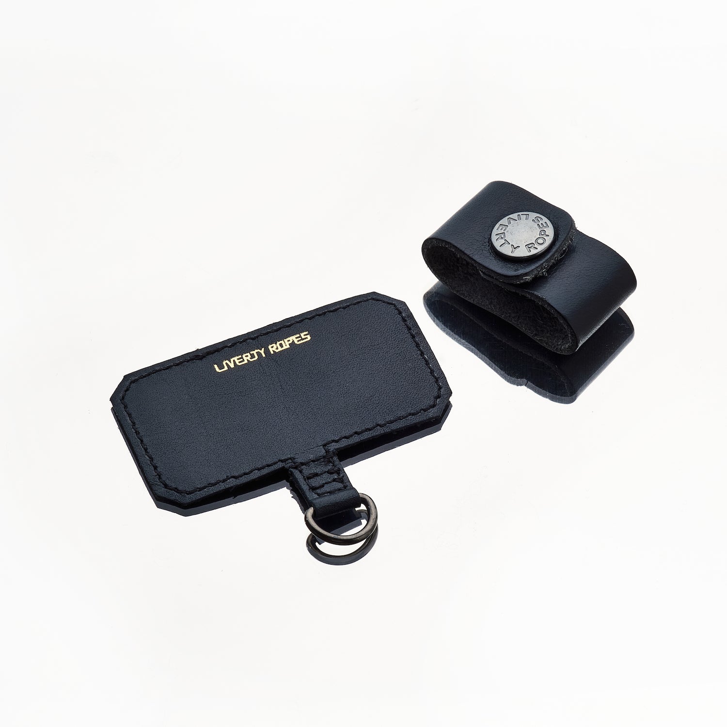 長さ調節に便利なスライドパーツが付属。素材は繊維密度が高くハリがあ り、なめらかなイタリア・ワルピエ社の「ブッテーロ レザー」を採用。ボタン部分は真鍮にニッケル 加工をしました。組紐と干渉せず、素材にこだわったアイテムに仕上げました。