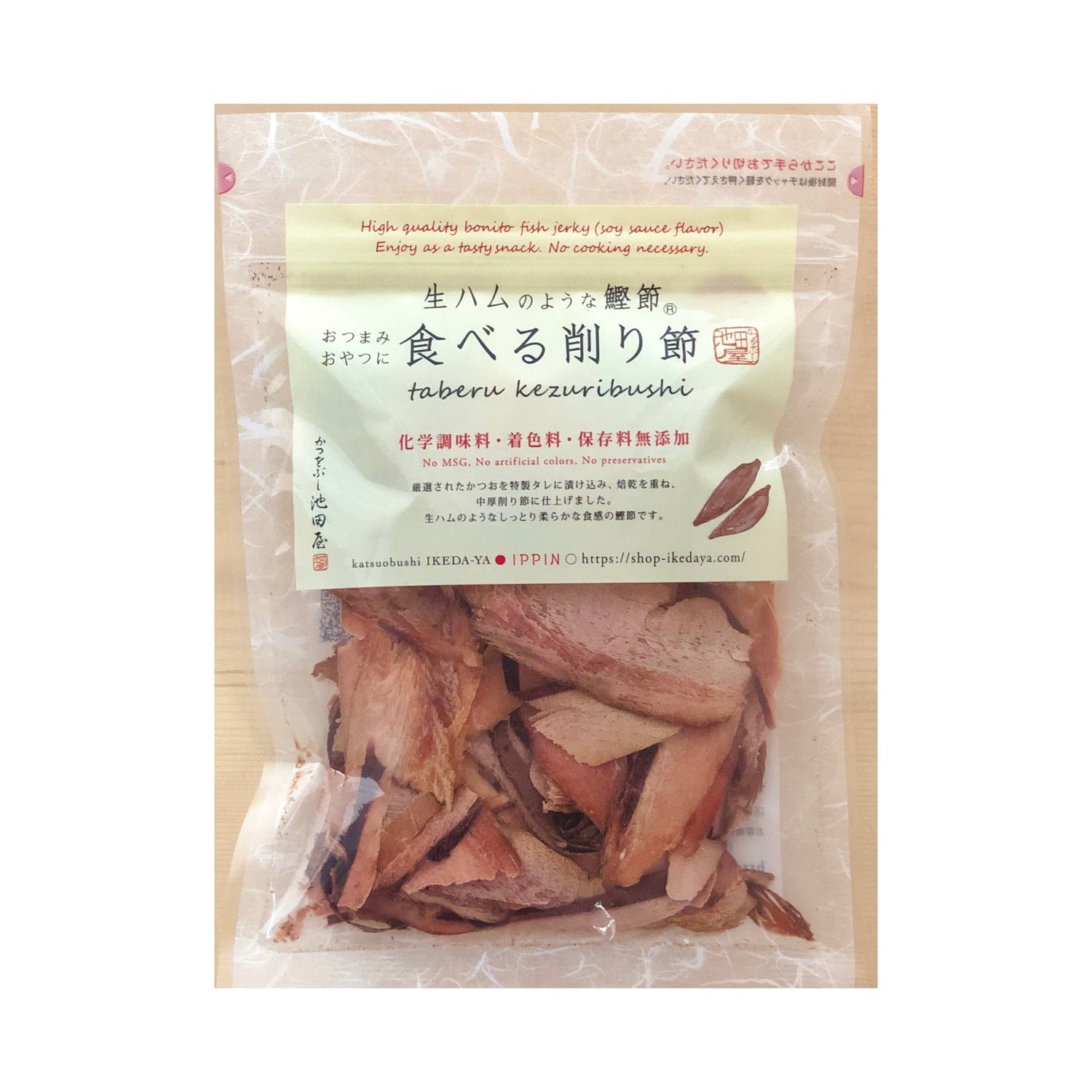 厳選されたかつおを特製タレに漬け込み、焙乾を重ね、中厚削り節に仕上げました。化学調味料・着色料・保存料無添加。ほんのり和風醤油味。ビール、日本酒のおつまみはもちろん、チーズを添えてワインのおつまみにもピッタリです。その他、ごはんにのせたり、マヨネーズ添え、サラダ・チャーハンなど、お料理にもよく合います。しっとり柔らかな新食感をお楽しみください。