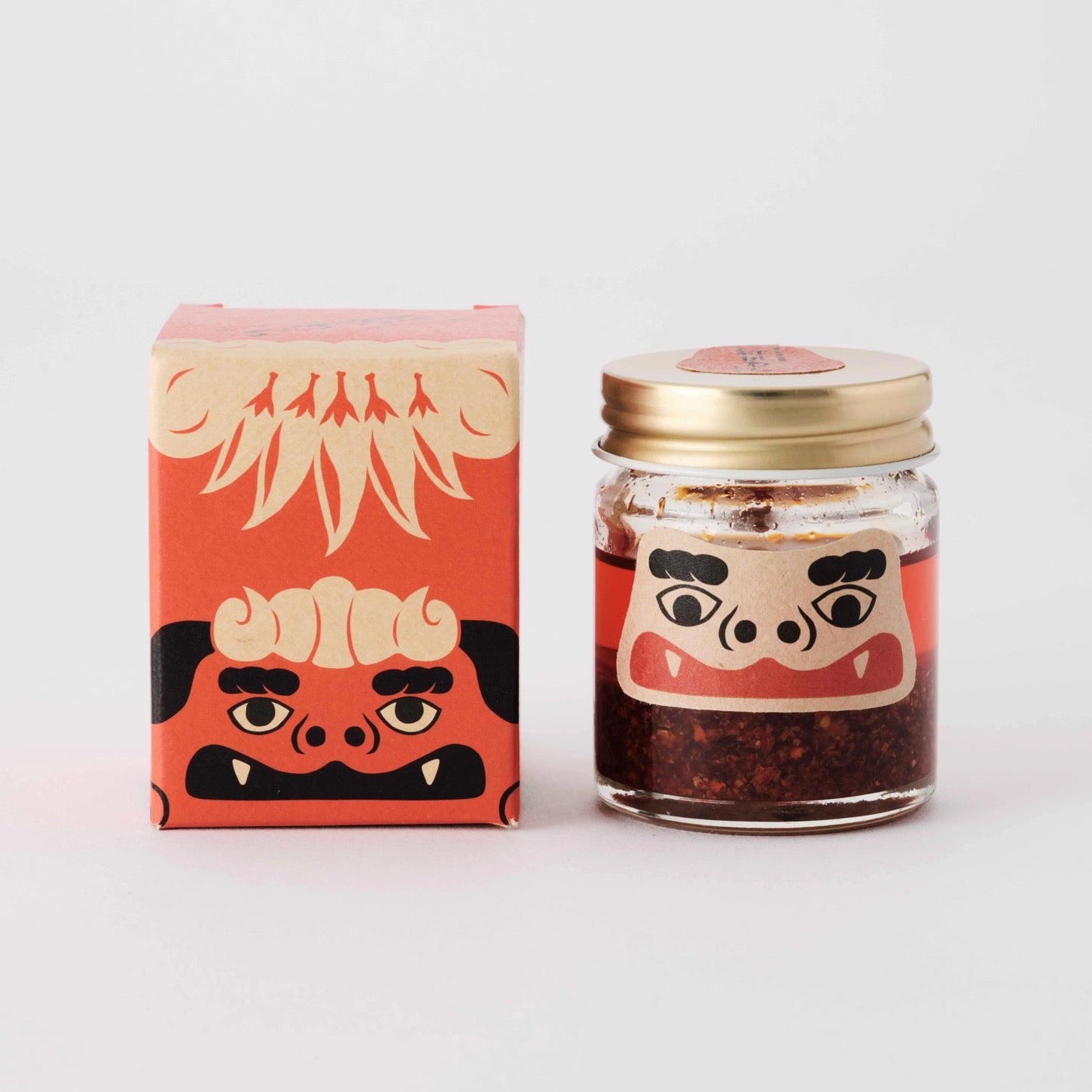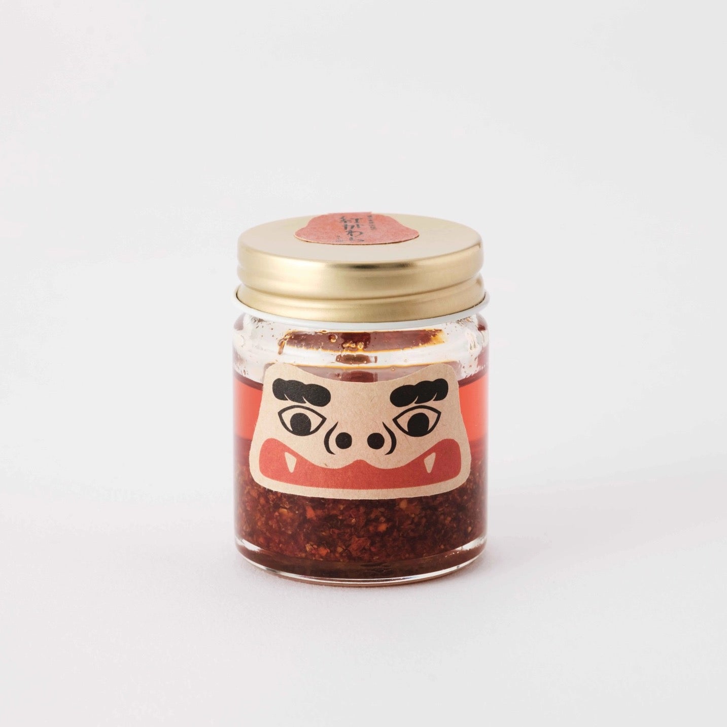岡山県産の唐辛子と山椒、国産のヒマワリの種から抽出したひまわり油を使用したラー油。すっきりとした味わいの中に山椒がピリリ!と効いているくせになるラー油です。もやしと和えたり、餃子につけたり。いつもの一品が味わい深いものになること間違いなし。パッケージの狛犬が愛嬌たっぷりで、紅だるまと紅てんぐと一緒に食卓を賑やかに彩ってくれています。