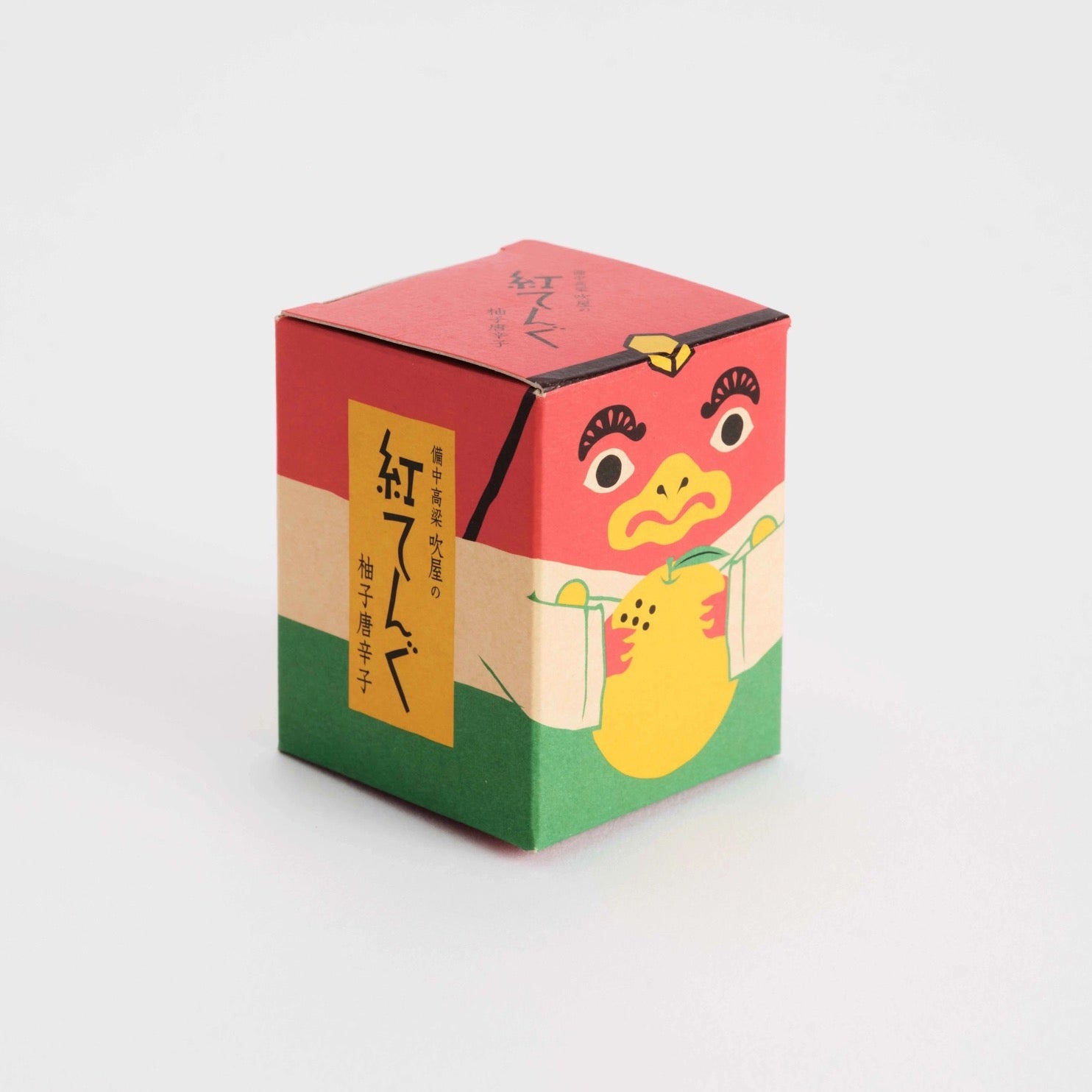 岡山県産柚子の果汁と唐辛子を使ったさっぱり仕立ての洋風柚子胡椒。添加物が使われていないので素材の風味が楽しめます。紅だるまよりも少し辛めですが、柚子の風味が広がるので、辛いのが苦手な方でも抵抗なく食べられるかと思います。油分が強めの洋食などの料理にかけるととてもさっぱりするので、味変用としても持っておくと間違いない一品。和食に合わせても相性抜群なので、よく食べています。パッケージの天狗も愛嬌たっぷりで、紅だるまと紅がわらと一緒に食卓を賑やかに彩ってくれています。