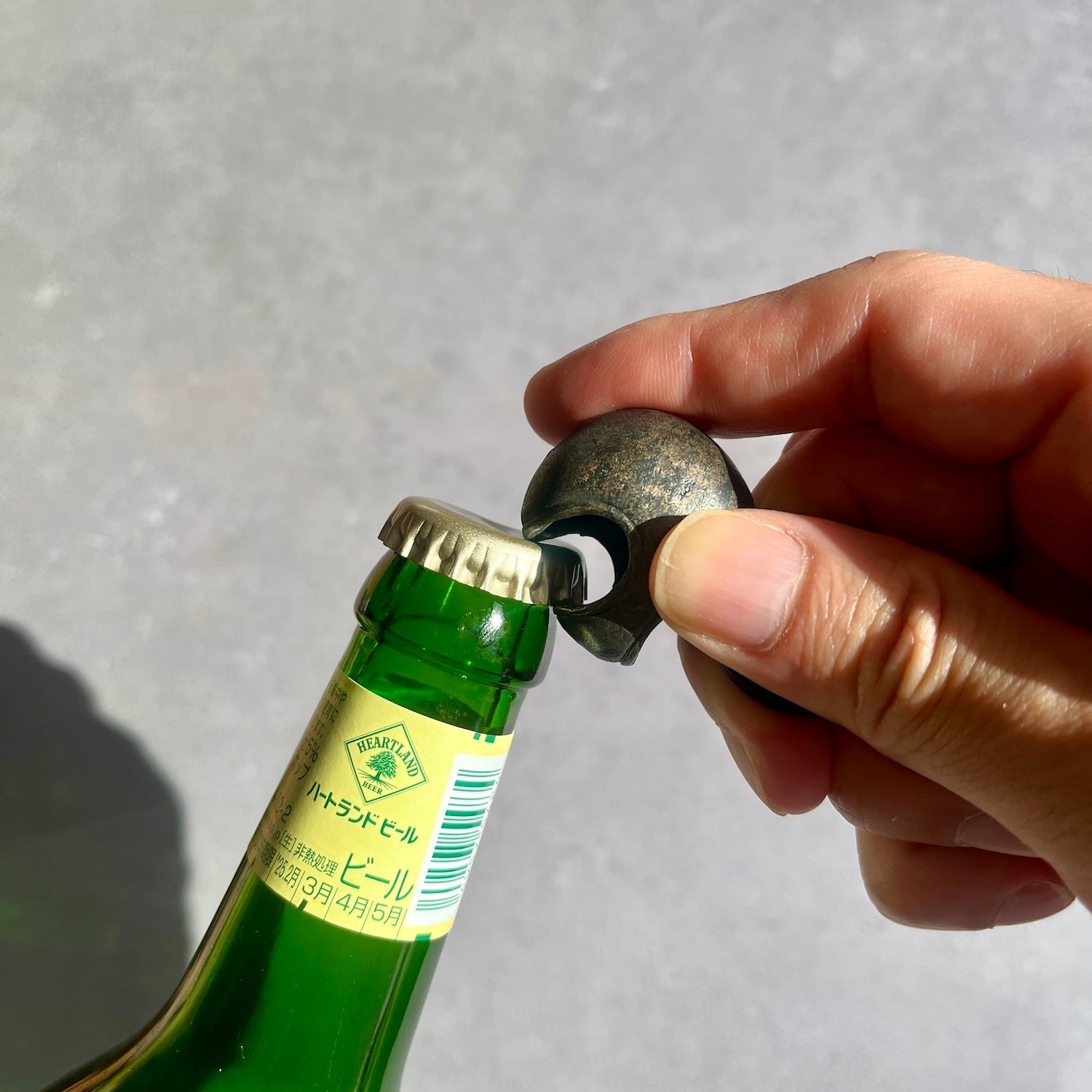 ヴィンテージヘルメットを模した、栓抜きにもなるキーリング。25mmのキーリング付き。