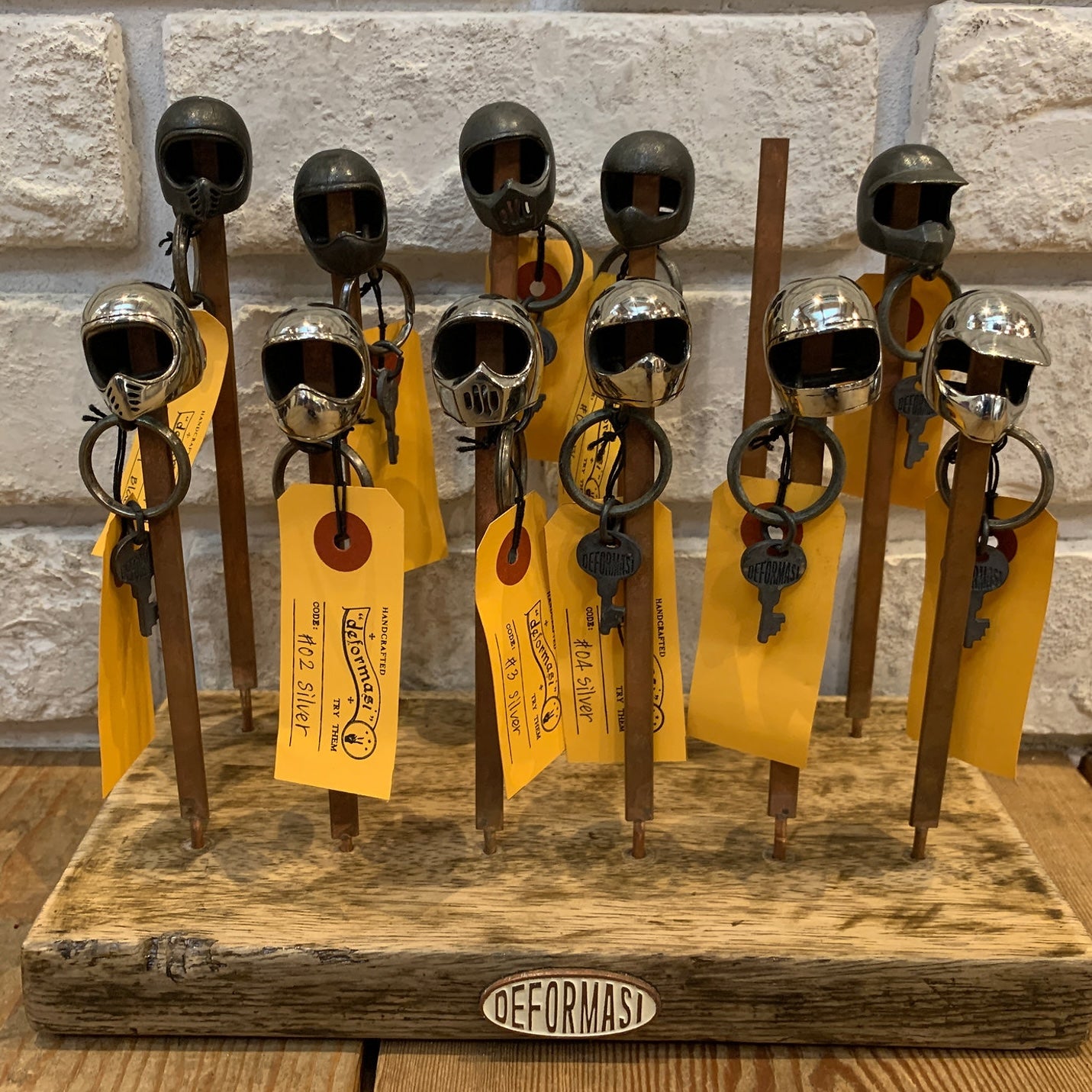サーフトリップしている時に出会った、バリ島を拠点に活動する日本人デザイナーのトモくんのDEFORMASIは、日常的な身近なものを新しい視点で制作しているブランド。これは僕が一目惚れしたビンテージヘルメット型キーリング。燻銀仕上げのブラックと鏡面仕上げのシルバーがとてもいい味を出していて、ヘルメット部分は栓抜きとして使用可能。25mmのキーリングが付いていて、バイクのキーはもちろん、多くの鍵を取り付けることができる実用的なデザイン!