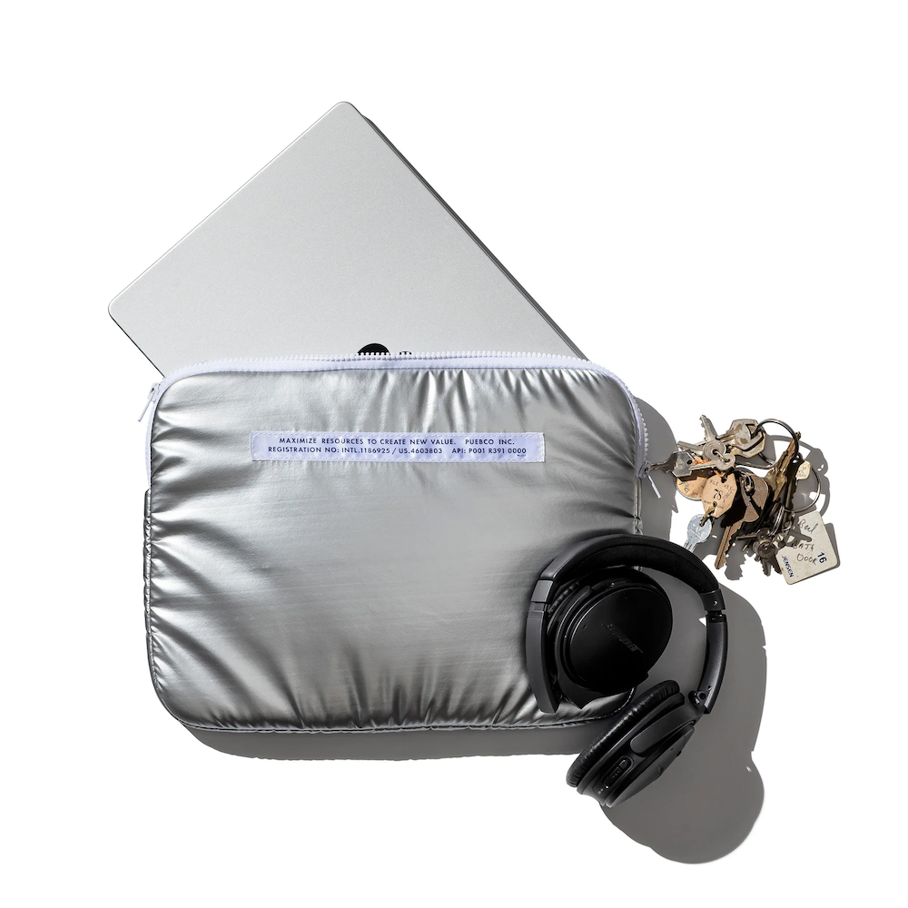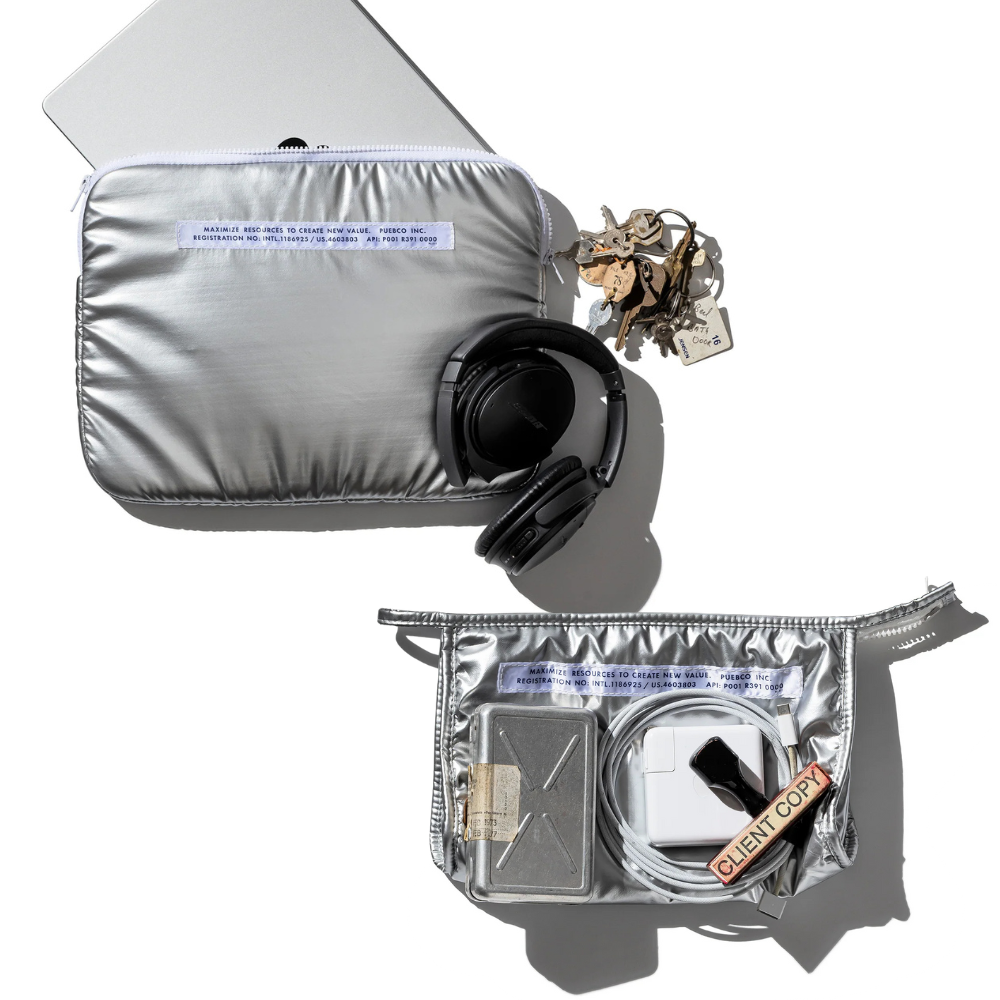 外での打ち合わせ用にMacBook Airを新調して、PCケースも探してた時に出会ったやつ。見た瞬間に即決。今の自分の気分にぴったりすぎる。このシルバーの質感が刺さりすぎた。同じシリーズのポーチも一緒に買って、PCまわりの細かいアイテムは全部そこにまとめてる。セットで持つとなんか完成形って感じがして気持ちいい。(PCケースとポーチは別売りです。)