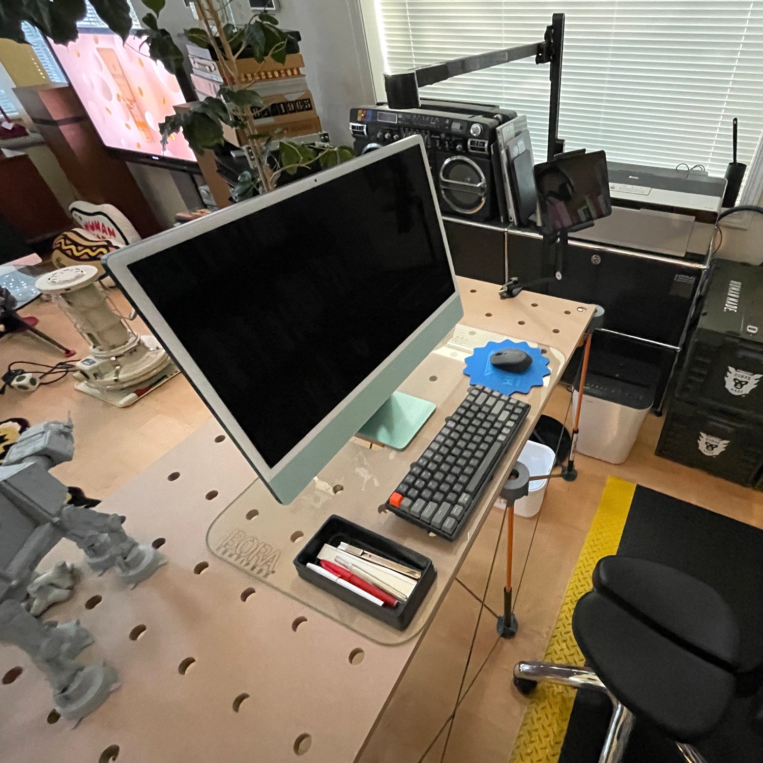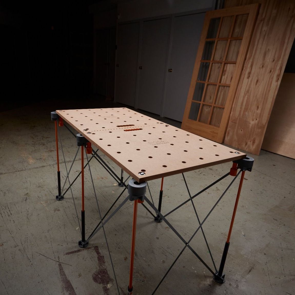 脚と天板の関係性が好きだ。IKEAで脚を買ってホームセンターで木の天板を買うなどそれぞれを別で買って組み合わせて使う。今回紹介するものはアメリカの大工さんの作業台。脚はエッフェル状で昨今ではアウトドアのチェアなんかにもよく使われる機構で建築的で幾何学的でとても美しい。専用のMDF合板とのマッチングもすばらしく、DIY作業や簡易デスク、BBQやキャンプなど多目的に使えそうだ。