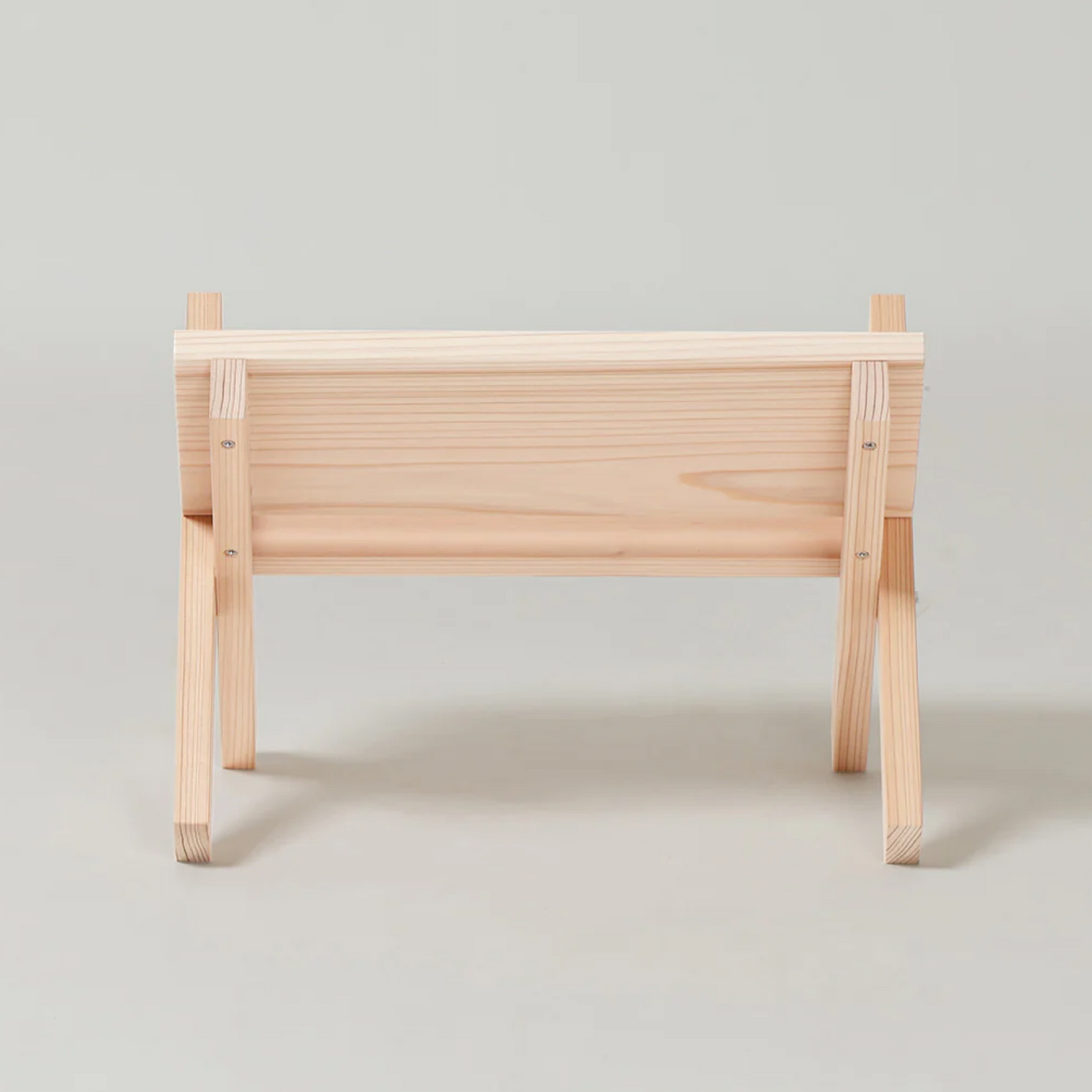 角材をX形に組んだフレームに、二枚の板材を固定した、ブックスタンド。お気に入りの本たちに、とっておきの居場所を。シンプルな構造でありながら、機能的にお使い頂けます。