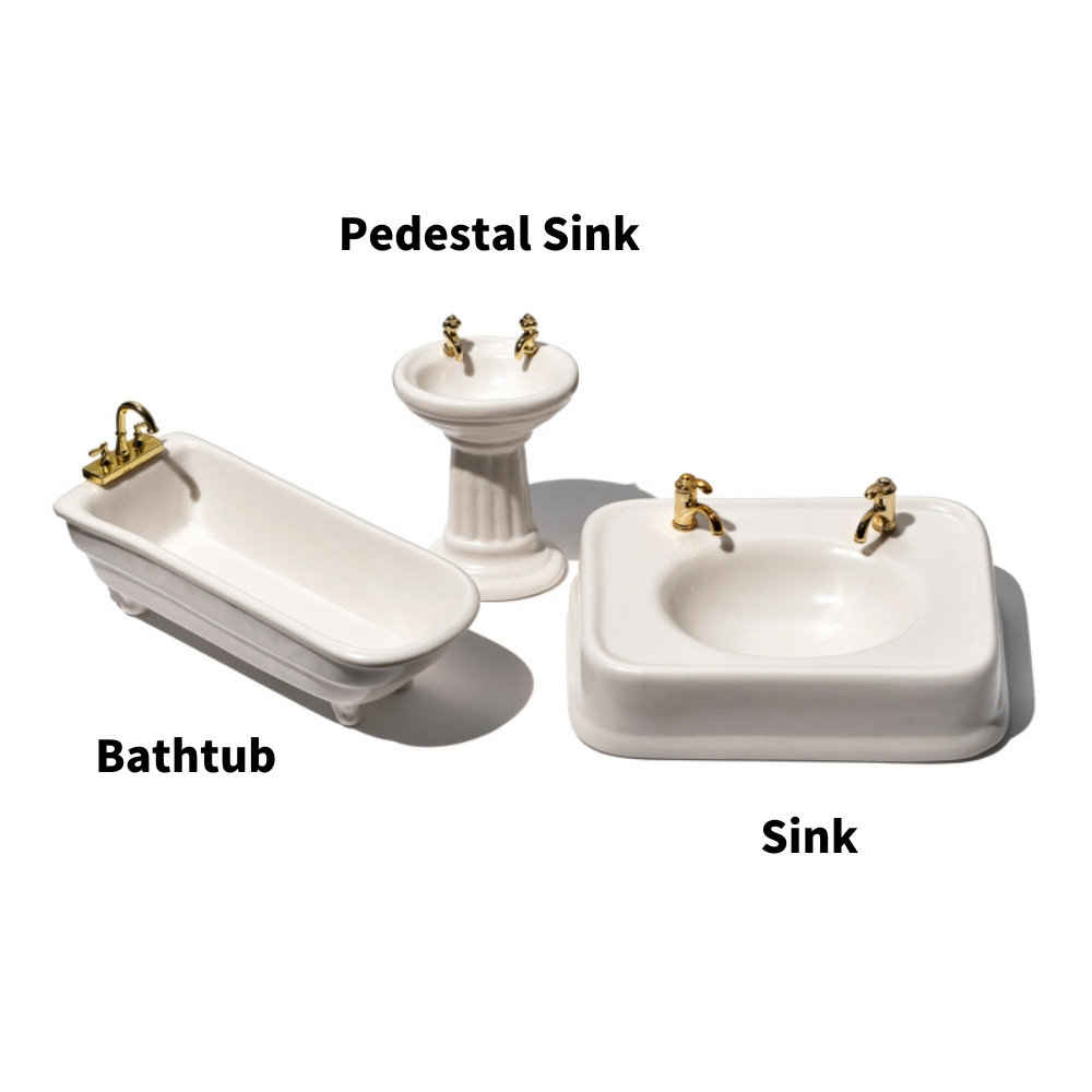 サイズ | Bathtub:W127×D50×H60mm Pedestal Sink:W50×D45×H73mm Sink:W120×D93×H43mm |