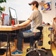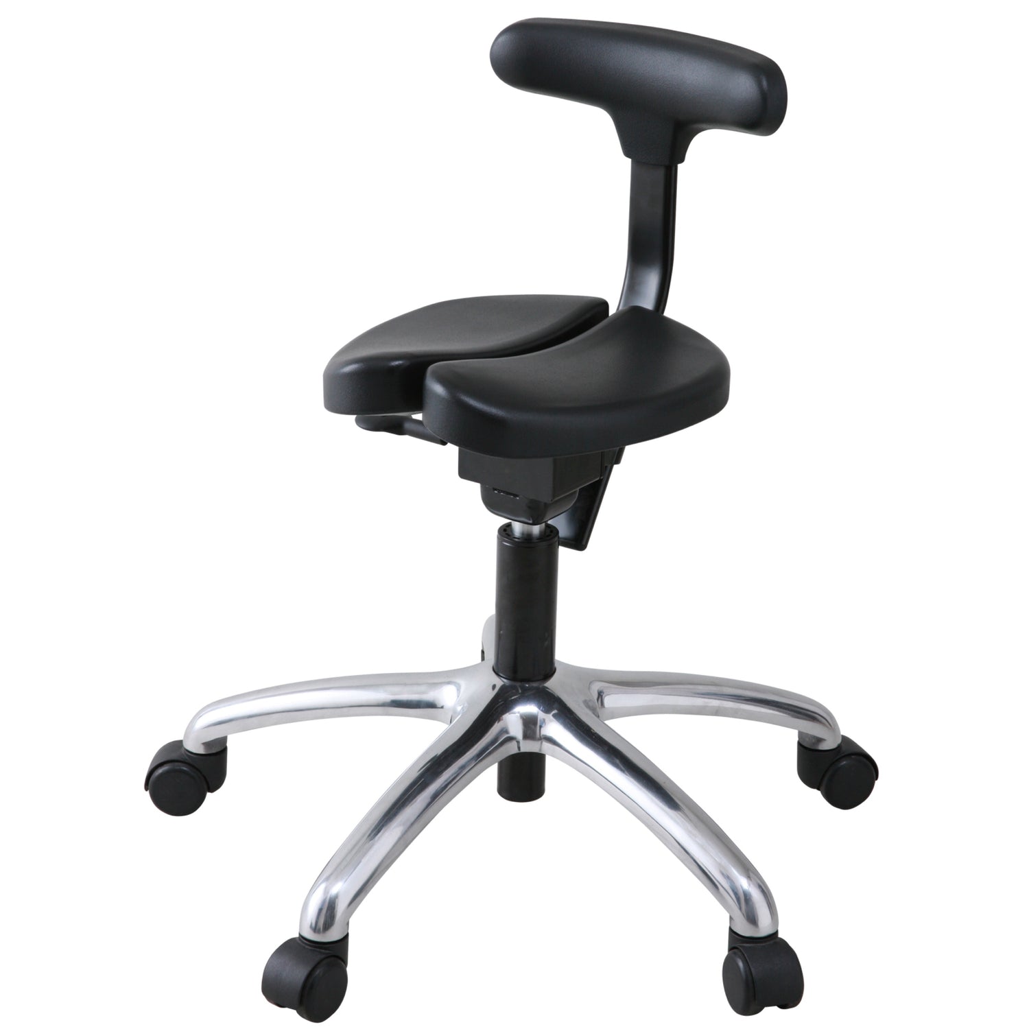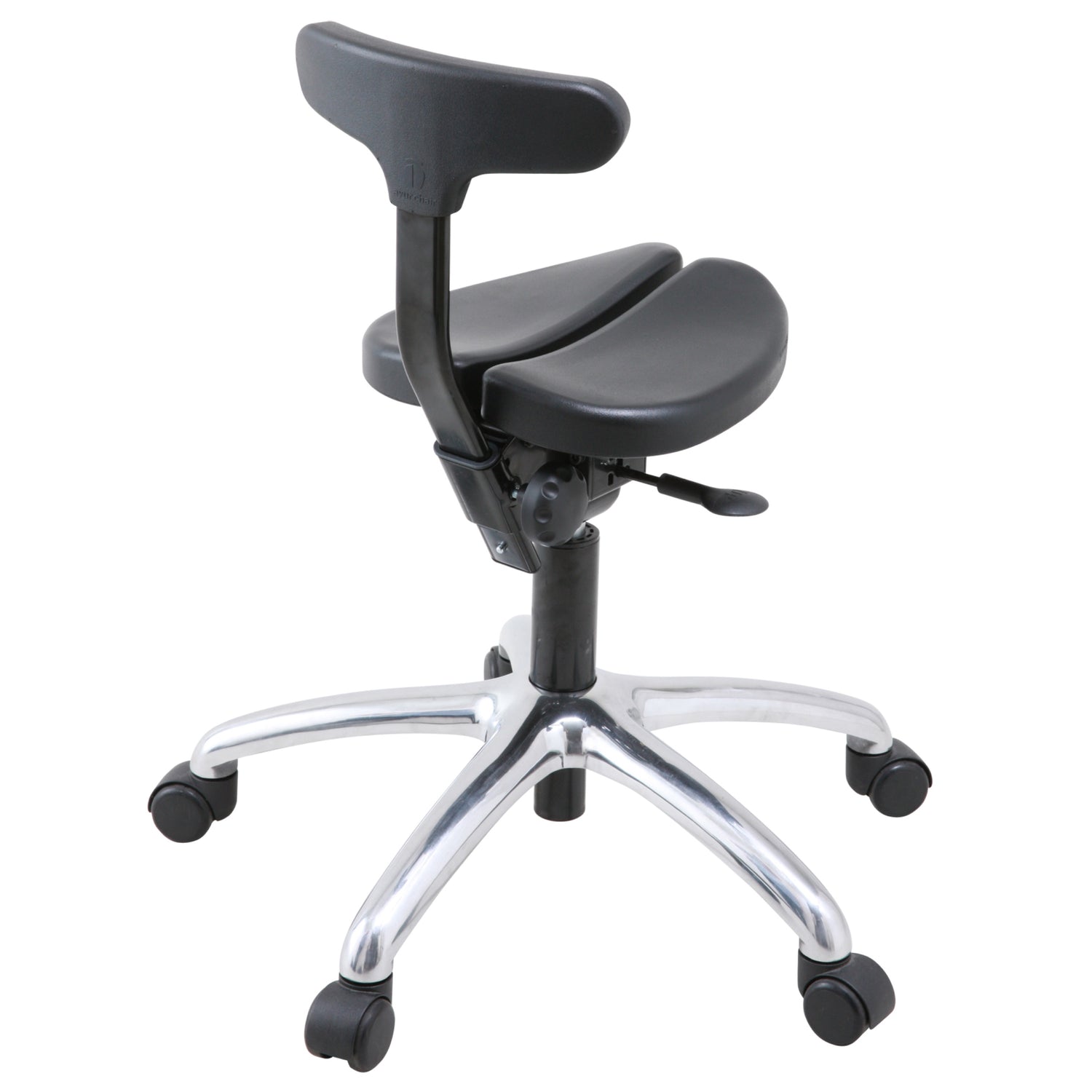 通常のイスの3分の1ほどの小さな座面。またいで座ると骨盤が立ち「坐骨」で座る理想の姿勢に。