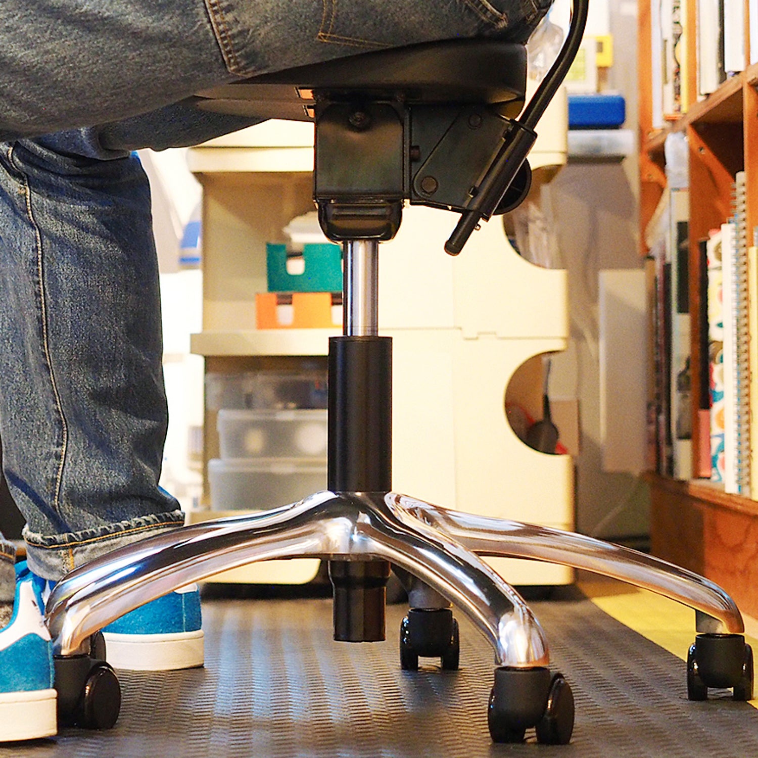 僕がこの椅子に座り始めた理由は、一年前にふと、姿勢をしっかりと正そうと思ったからだ。デザインという仕事をやっているので一日のほとんどが椅子に座って過ごすことになる。姿勢に気を使っている方ではあったが、長時間デスクワークをしているといつのまにかモニタを覗き込むように前かがみになっていたり、お尻が座面からずるっと滑り落ちるほどの位置にいたり、挙句の果てはアーロンチェアであぐらをかく始末で、最終的にどの姿勢が正しい姿勢なのかがわからなくなってしまっていた。