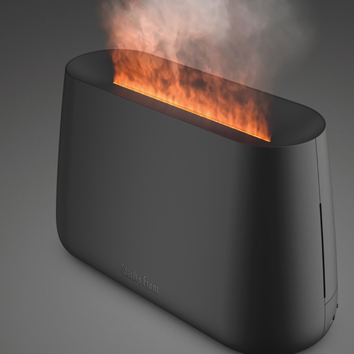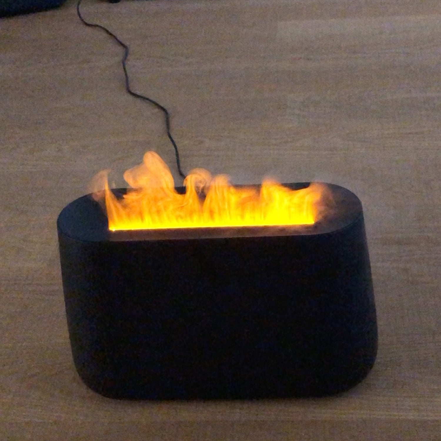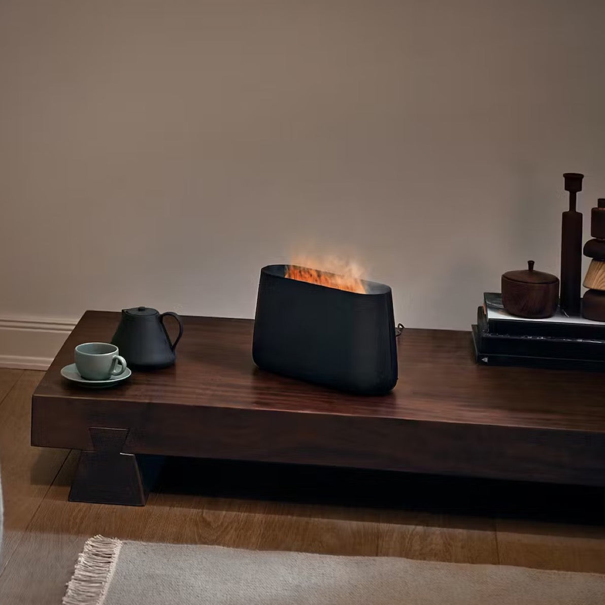 この加湿器は超音波式で空間の加湿は勿論のこと、お気に入りのオイルを直接垂らしてアロマディフューザーとして使える優れもの。更に今作最大の魅力はLEDライトとミストを組み合わせることで屋内暖炉のような演出を魅せてくれます。今まで加湿器をずっと眺めたことなんてありませんでしたが、ついつい見入ってしまう才色兼備な逸品です。