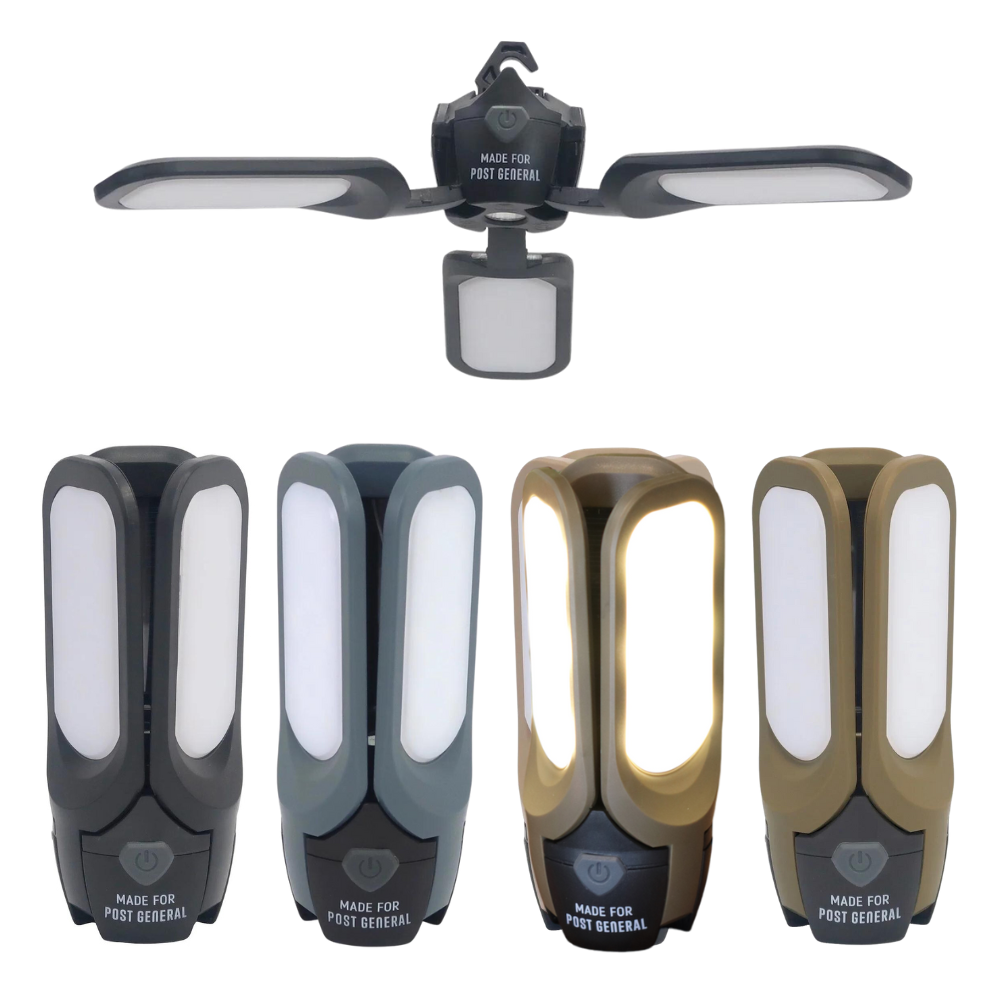 3枚のLEDパネルを広げるとソーラー充電が可能なLEDライト。最大の特長は変形可能なこと。吊り下げて使う、置いて使う、持って使う、壁や車の側面に取り付けて使う(マグネット内臓)、4通りの使い方は様々なライフシーンでお使い頂けます。普段はUSB充電機能で使用し、停電などの非常時にはソーラー充電することで、防災ライトとしてマルチに使えるライトです。