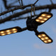 ライトはハイモードとローモードの切り替え可能。3枚のメインLEDパネルは約300ルーメンの照度(ハイモード)で約3時間連続点灯可能。また約100ルーメンの省エネモード(ローモード)では約5時間連続点灯可能。USB充電時間は約8時間(晴れの状態)