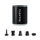浮き輪・おもちゃ用、直径15.85mmエアベッド用、直径20.05mmエアベッド用、エアクッション・ボード用、衣類圧縮袋用の5つのノズルが付属で様々なアイテムの使用可能