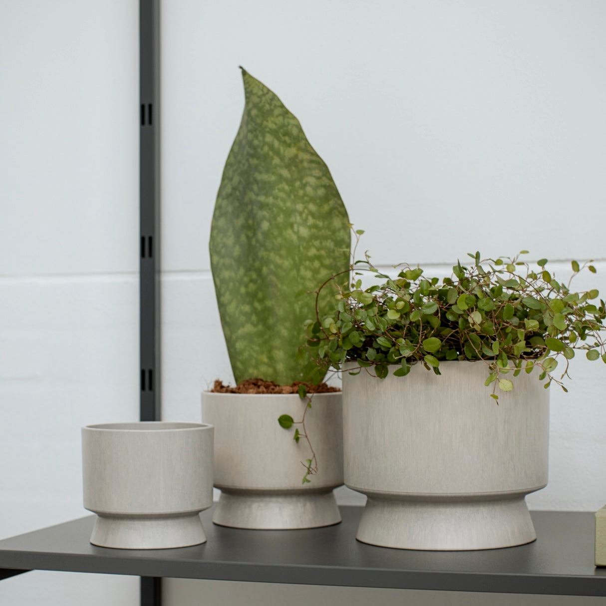 植物が成長し、植木鉢をオーバーしてきたのでシンプル且つデザイン性のある鉢カバーを探していたところ、ちょうどいいものを発見!届いてみてびっくり。とっても軽いです。この鉢カバーは再生プラスチック100%でできていて、デンマークの家庭から出るプラスチックごみゴミを再利用しているみたい。しっかりした作りなのに軽くて丈夫でどんなインテリアにも馴染み、地球にも優しいなんて全て叶えてます!!我が家には育ち盛りの植物ちゃん達がまだまだいるので大きさ違いでも追加購入しました。