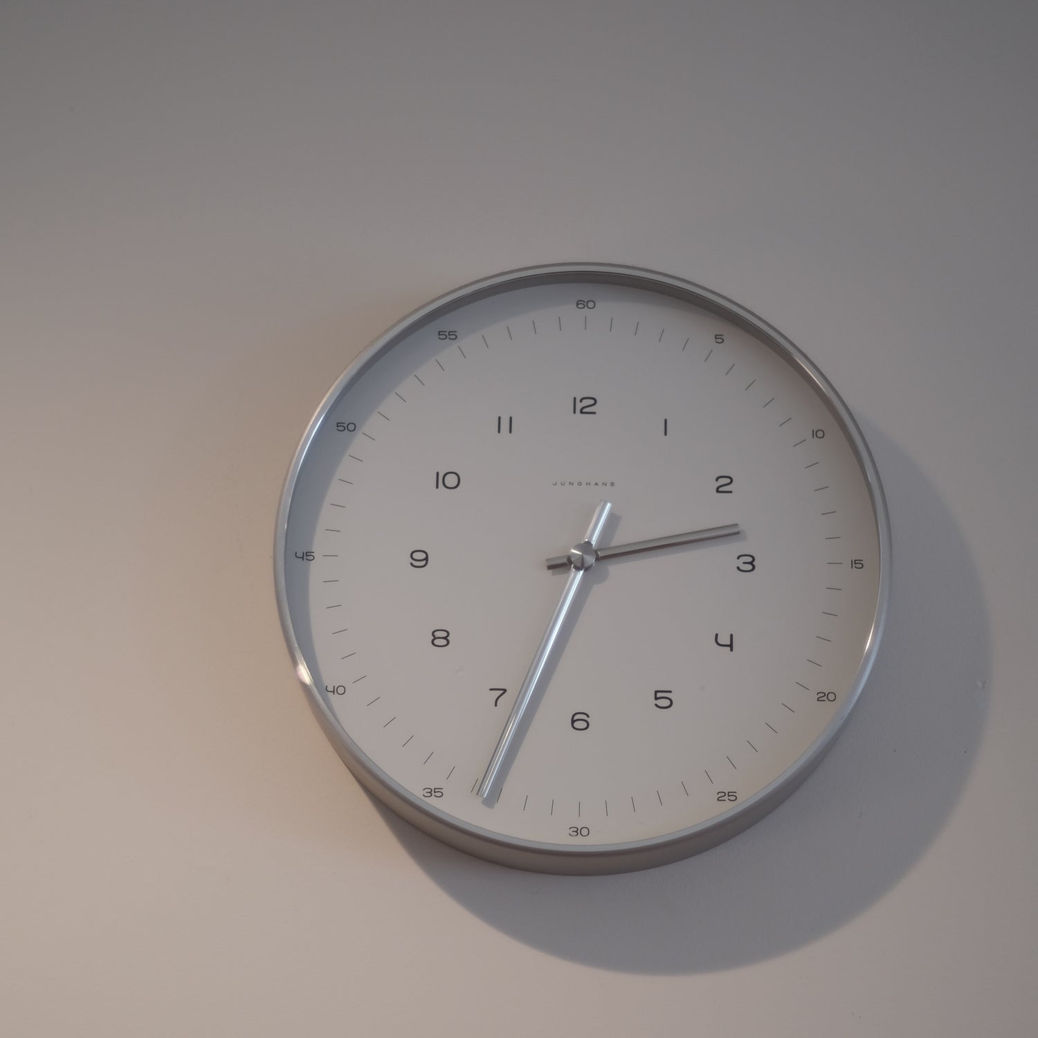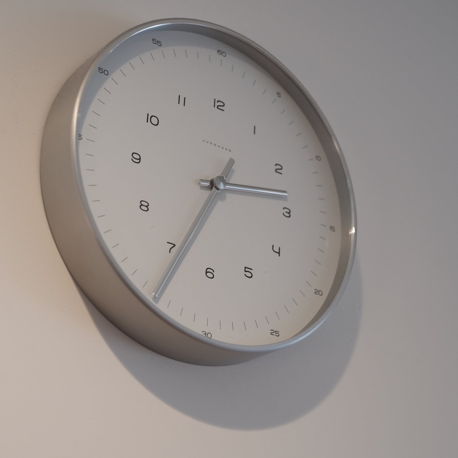 バウハウスの巨匠マックス・ビルがデザインした掛時計。バウハウスは機能美に特化したモダニズムで、いい意味で主張がなく本当に邪魔をしないです。これはどんな家のどんなライフスタイルの人が置いても馴染んでくれます。