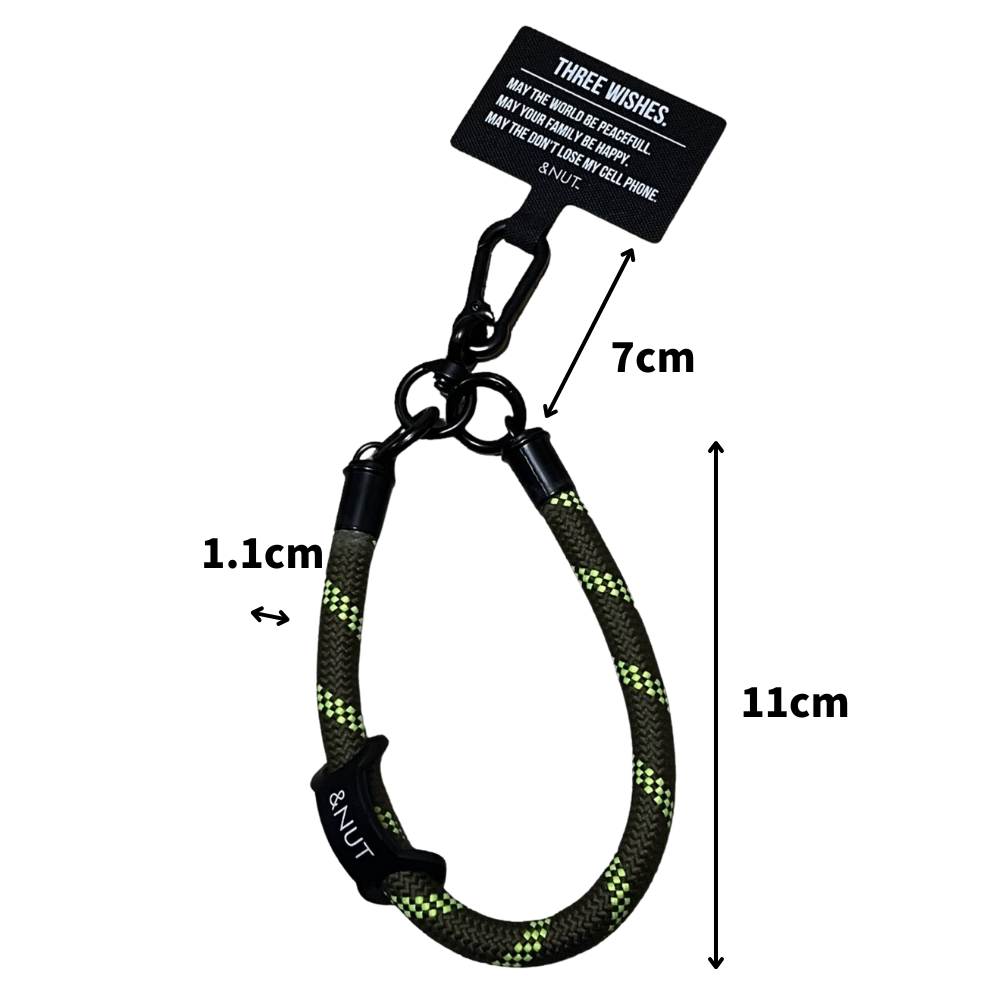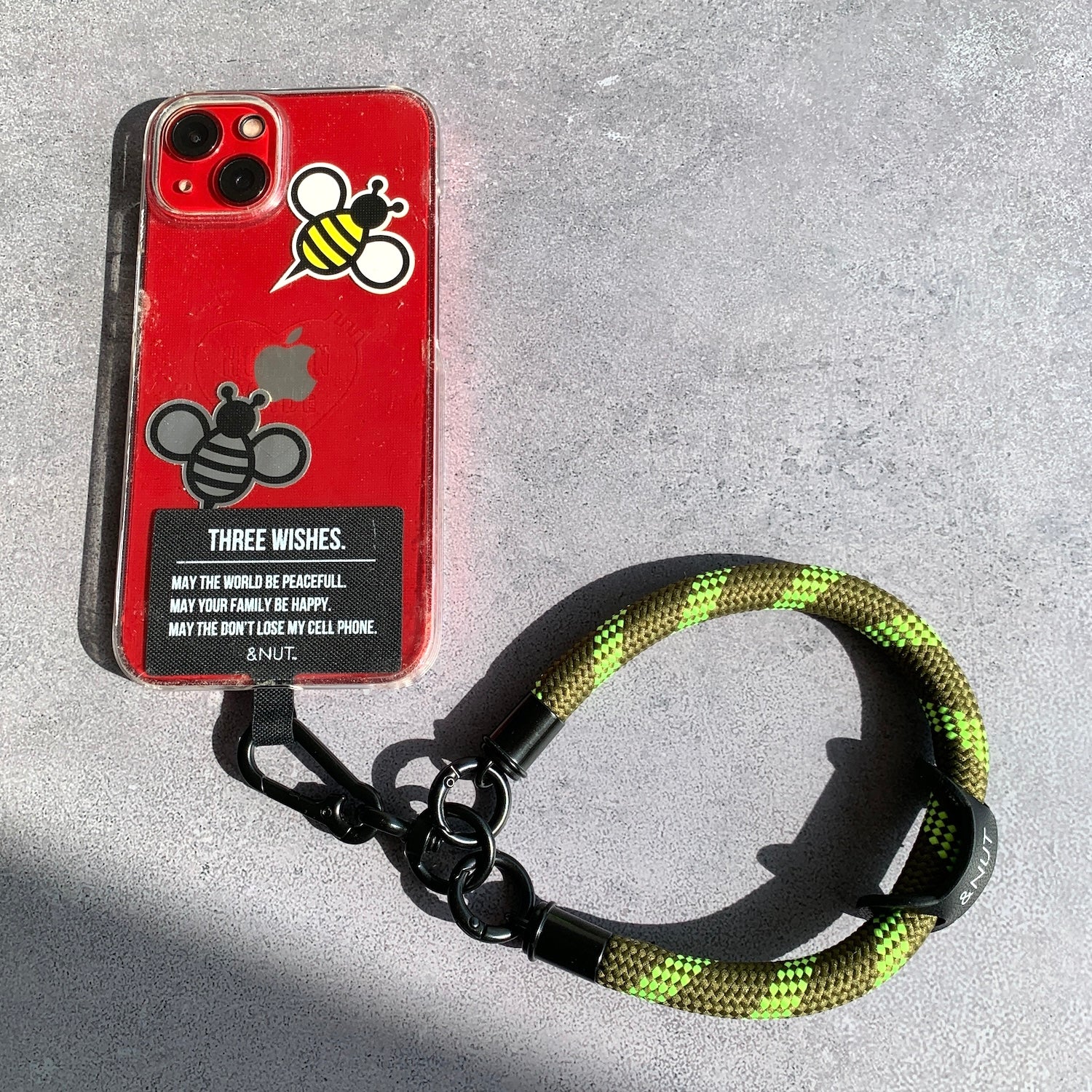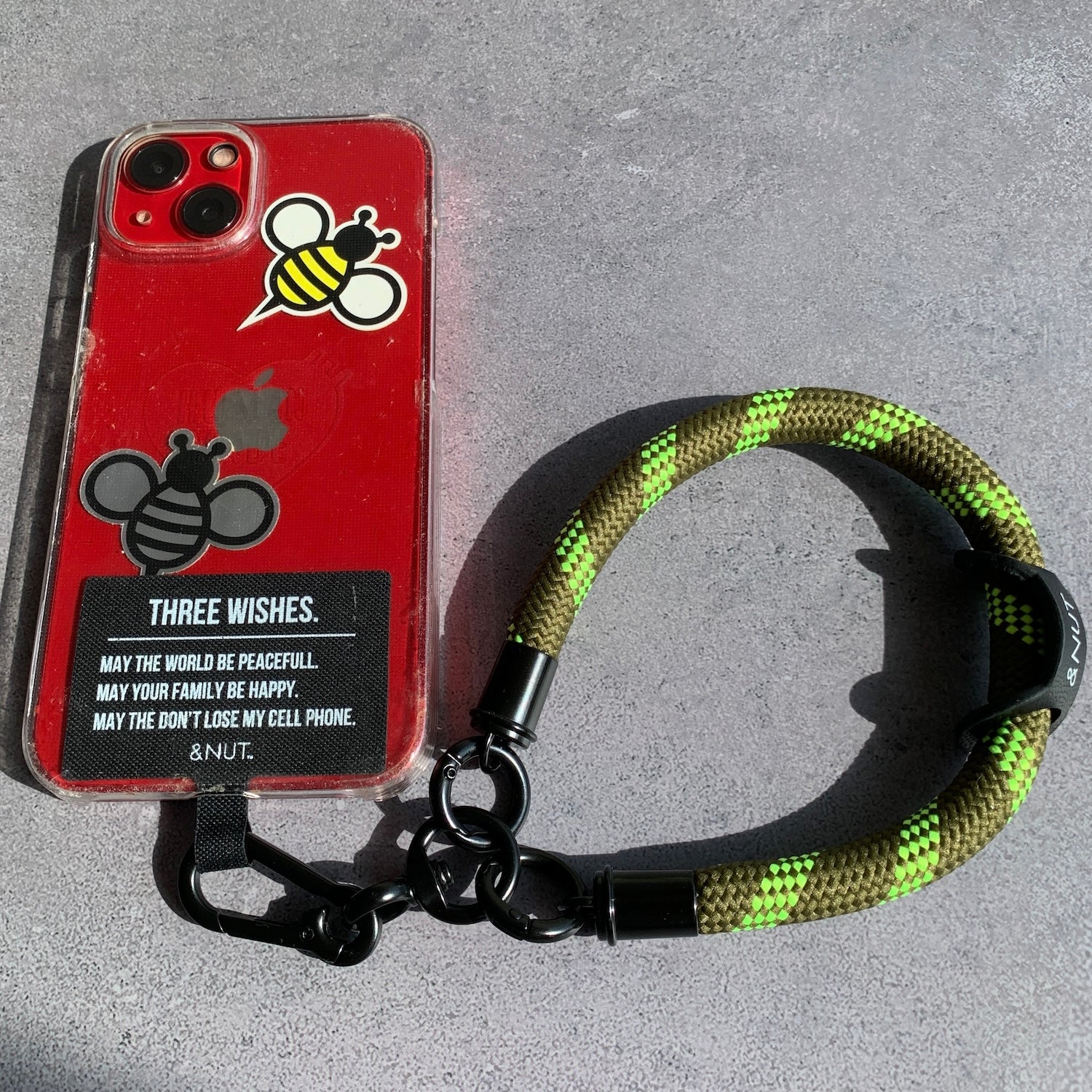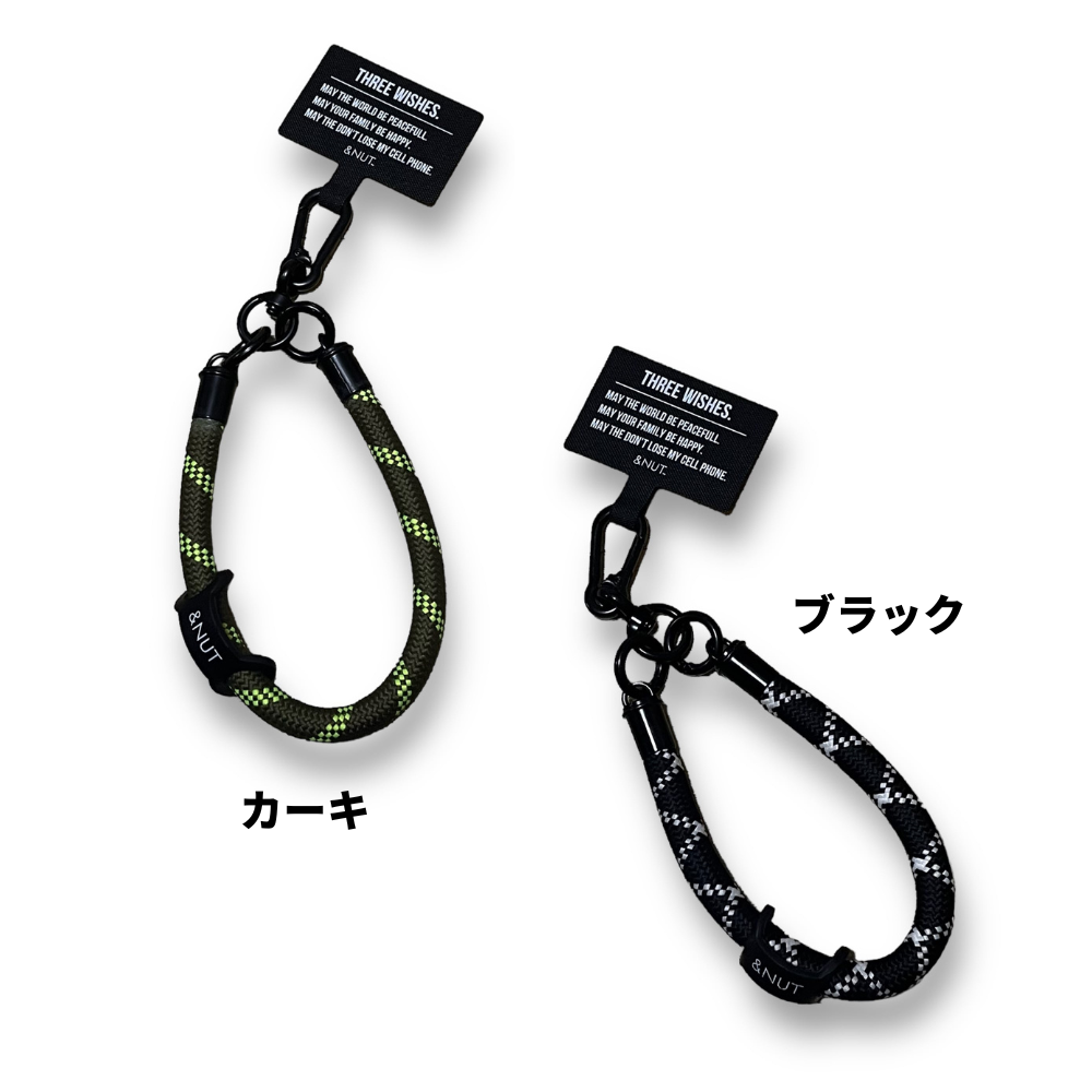 スマートフォン用のリストストラップ。ケースの中に忍ばせるアタッチメントには、とっても大切な3つの願いが込められて(プリントされて)います。