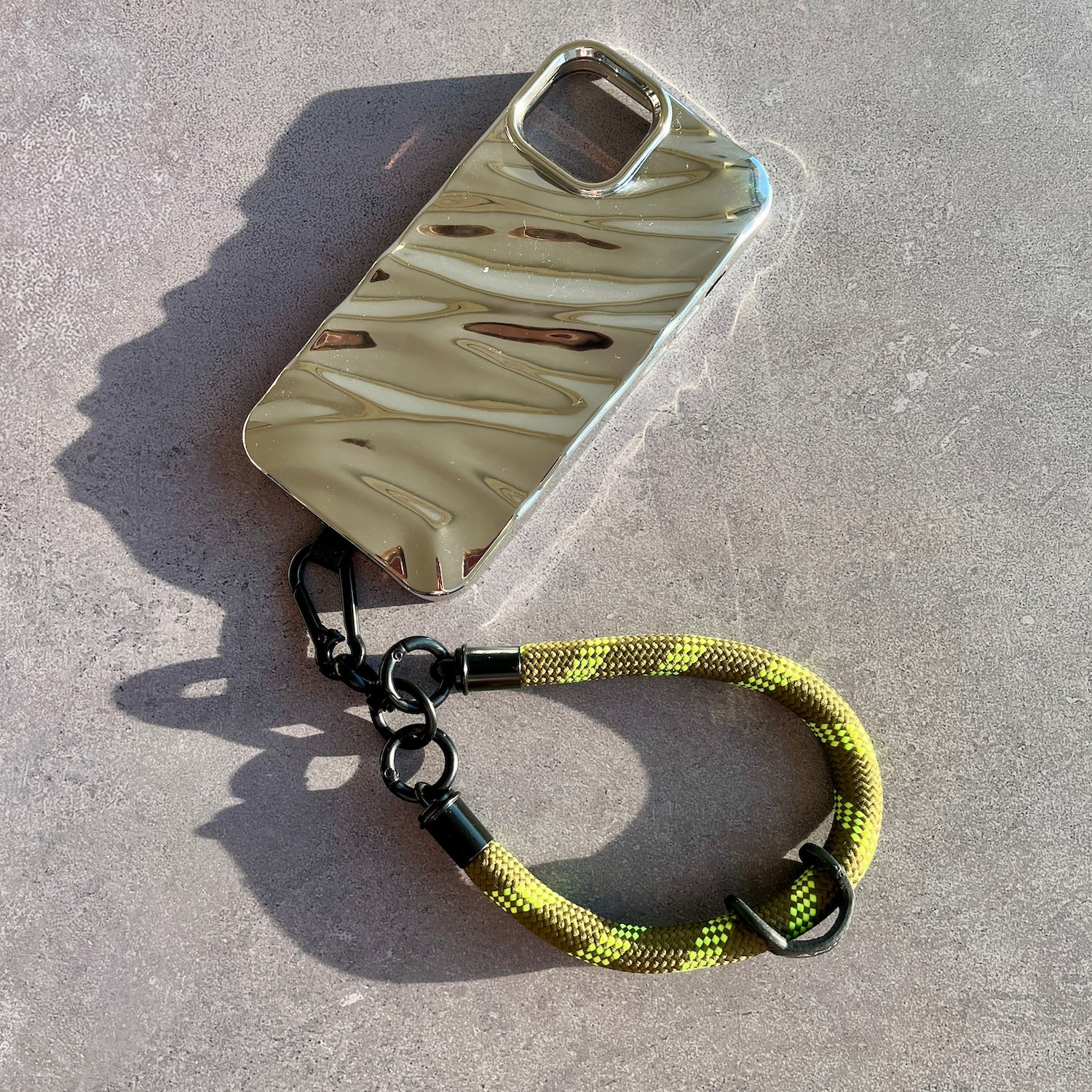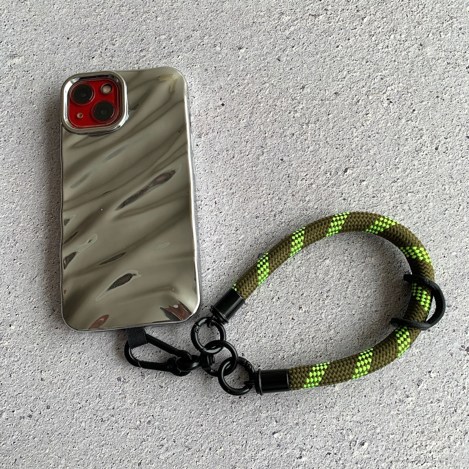 太めで丈夫。かなり安定感のあるリストストラップです。スマホにごつめのケースを付けたので、相性も良くとてもカッコいいです!