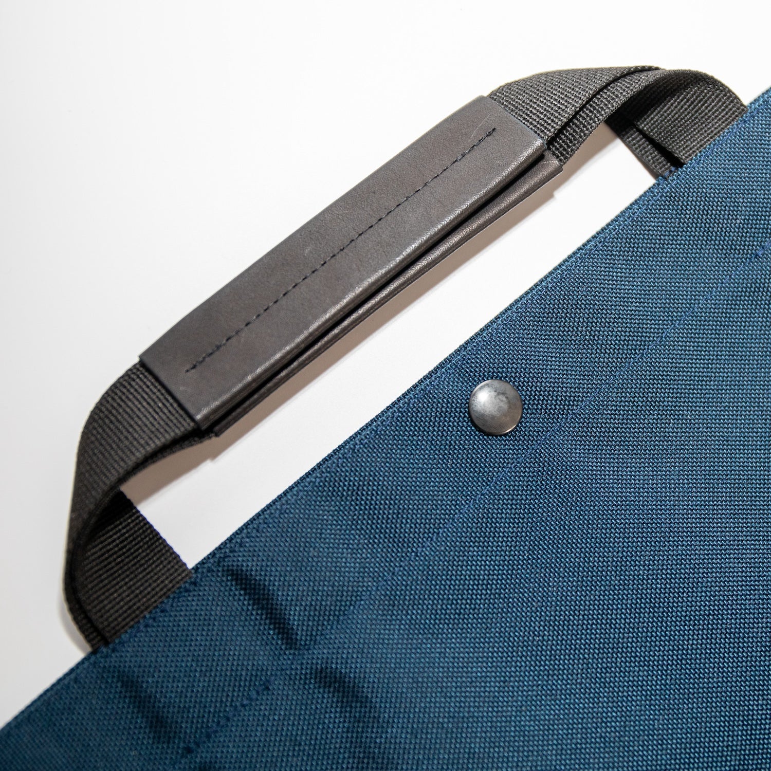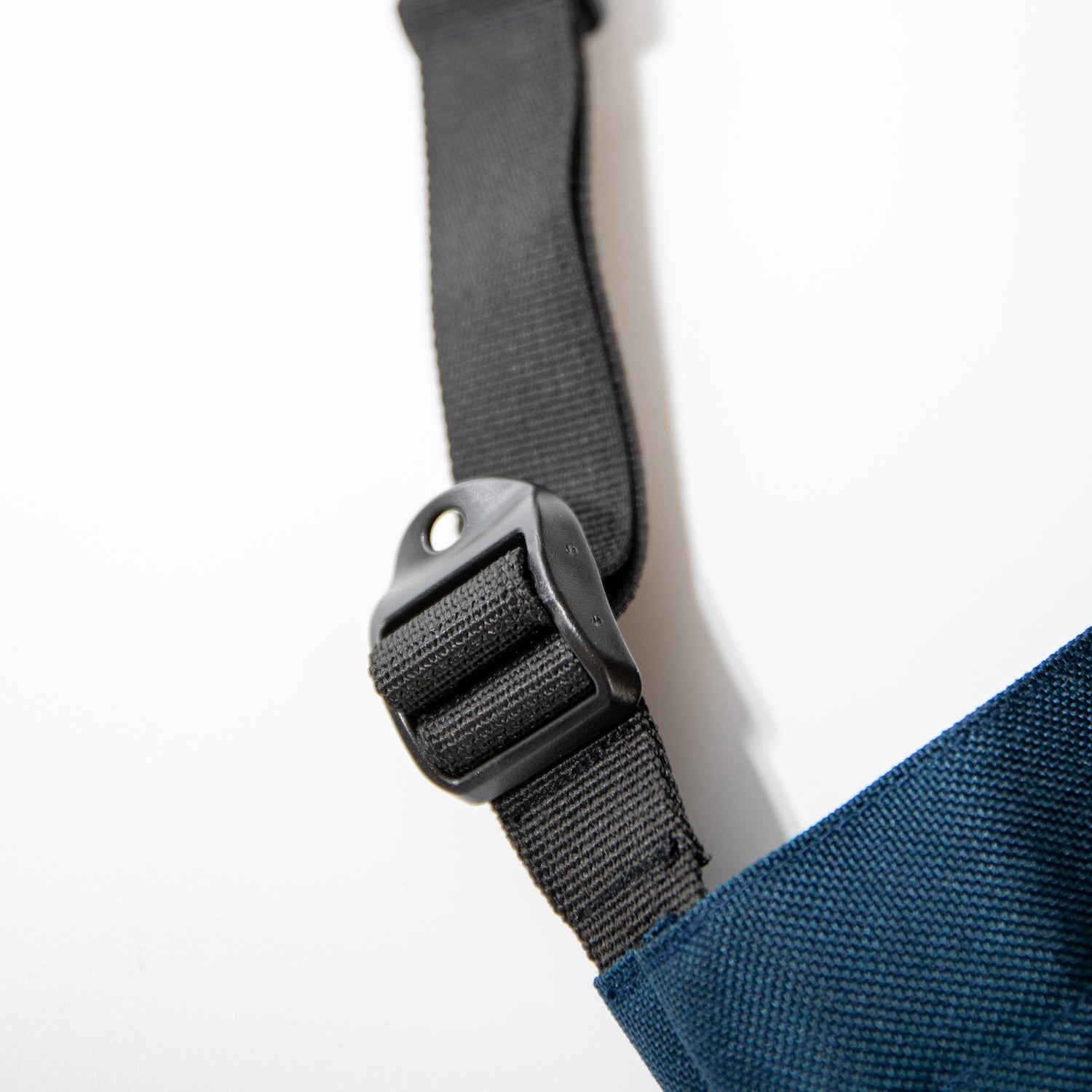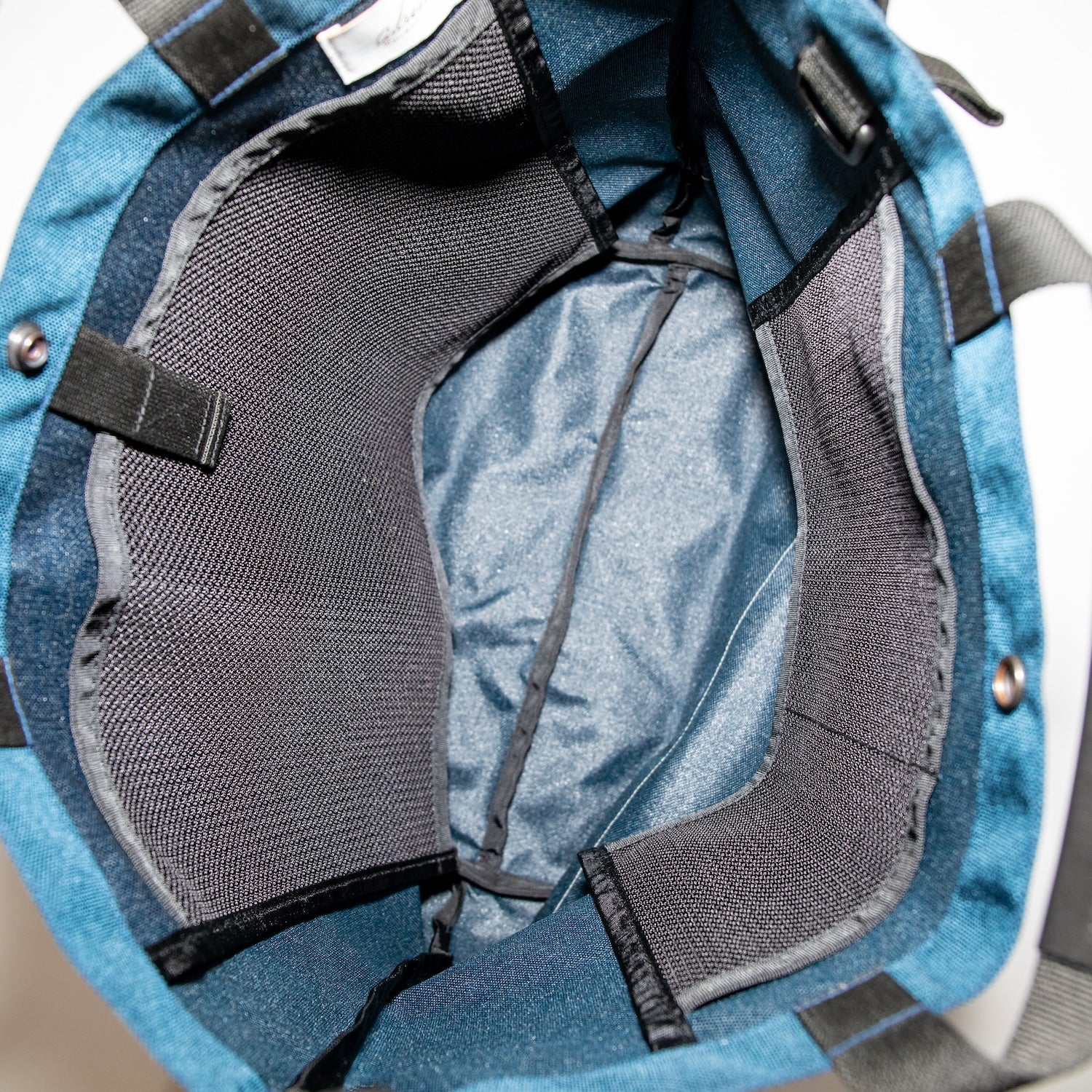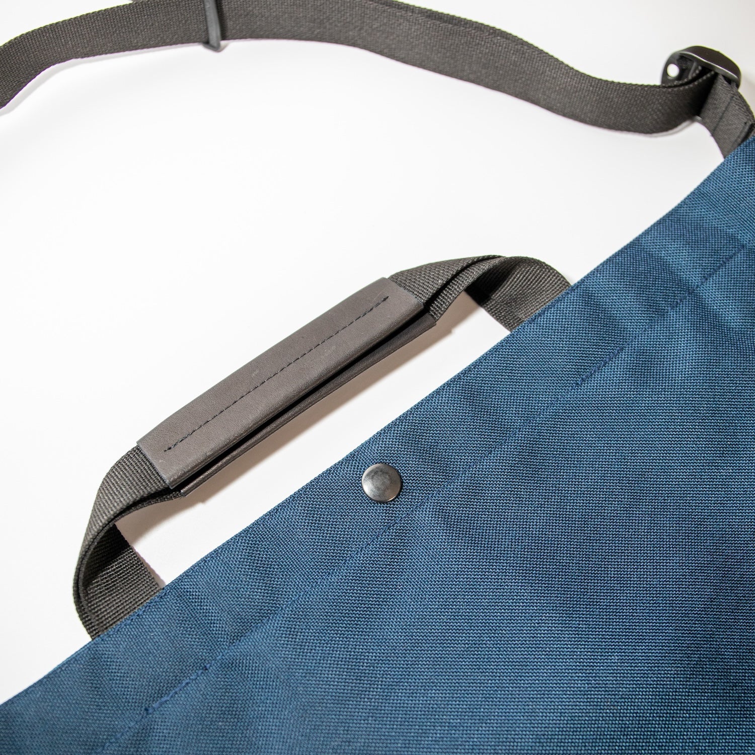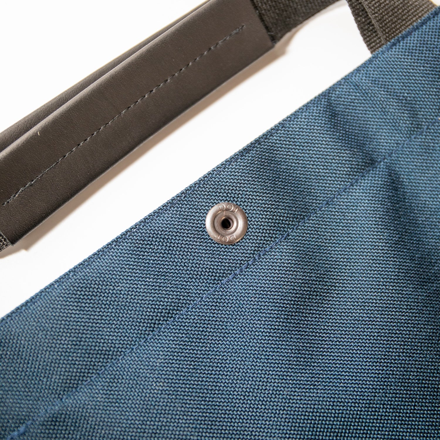 ボディとボトムには米国より取り寄せたCORDURA®1000Dを使用。日本で出回っているCORDURA®1000Dよりコーティングが厚めで重厚な雰囲気が特徴。また通常モデルとは異なり、持ち手にイタリアより取り寄せた牛本革を贅沢に使用。使うごとに手に馴染み経年変化を楽しめます。このバッグは両サイドに備わったラダーロックによりショルダーベルトの調整が行うことが可能で、右肩に掛けても左肩に掛けても、また表裏関係なく掛けることができます。内側には両サイドにメッシュ素材の吊りポケットを完備。一方はA4サイズが入る大きさで13インチのラップトップを収納することが可能。もう一方は財布やスマートフォンを収納出来るよう仕切りを配置。メッシュはANYTIME ANYWHEREではお馴染みのMIL-SPEC HEAVY WEIGHT MESHを使用している。メッシュ素材なので中に収納したものを視認しやすいのも特徴。またこの吊りポケットの脇にITW社製のDリングが備わっているのでキーホルダーやカラビナをぶら下げる事も可能。ボトム部は耐摩耗性を考慮し2枚仕立てに。センターにあるスナップボタンはMA-1やミリタリーウエアに採用されていた1970年代初頭のSCOVIL社製のデッドストックを使用。また使用しているプラパーツはミリタリーやアウトドアでお馴染みのITW社製のものを使用しております。ショルダーベルトとハンドベルトはCordura繊維が織り込まれたMIL-SPECウェビングを使用しました。こだわりを詰め込んだミリタリーショルダーバックを是非。