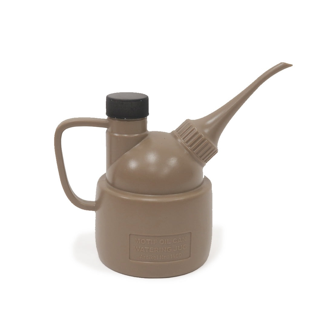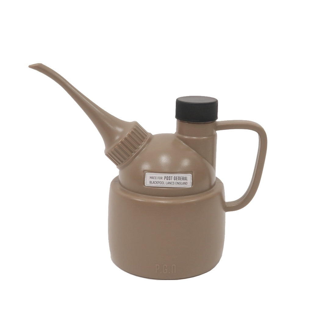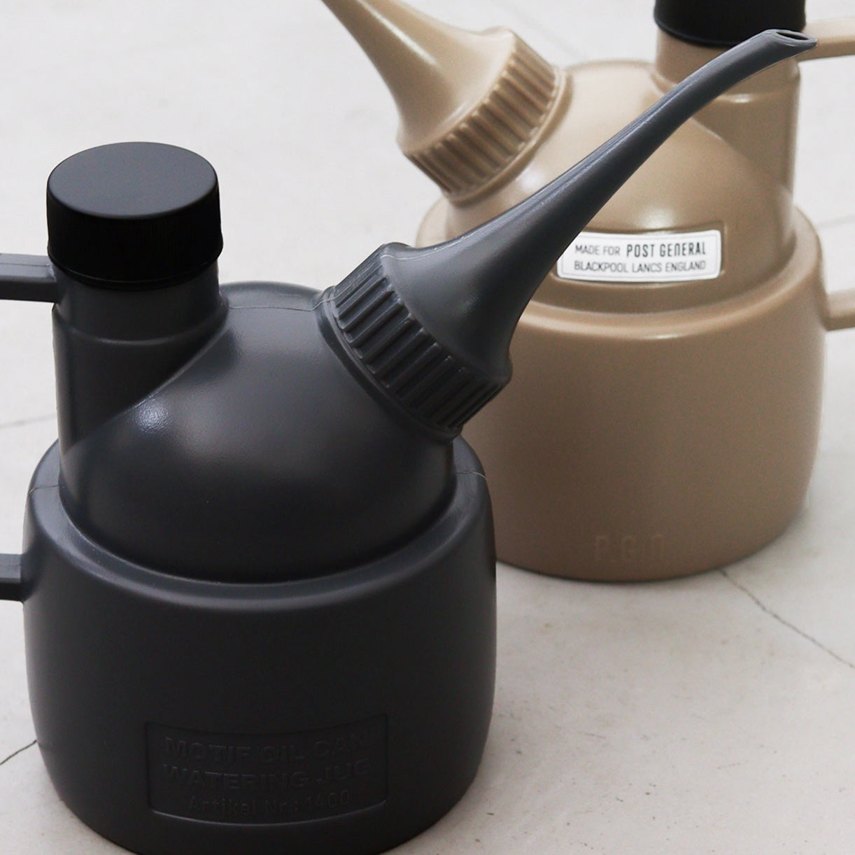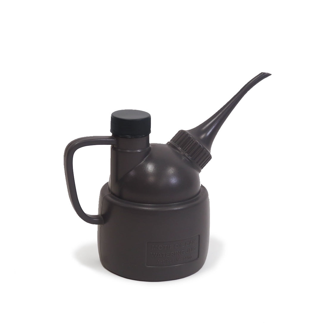 ヴィンテージのモーターオイル缶をモチーフにデザインしたインダストリアル風水差し。観葉植物の水やりに使いやすい、水量や勢いを調節しやすい細いノズルが特徴です(※ノズルは取り外しできません)。注水口にはキャップが付属しているので、水を沢山入れても安心して持ち運びができます。水を入れても片手でも扱いやすい小ぶりなサイズ感。