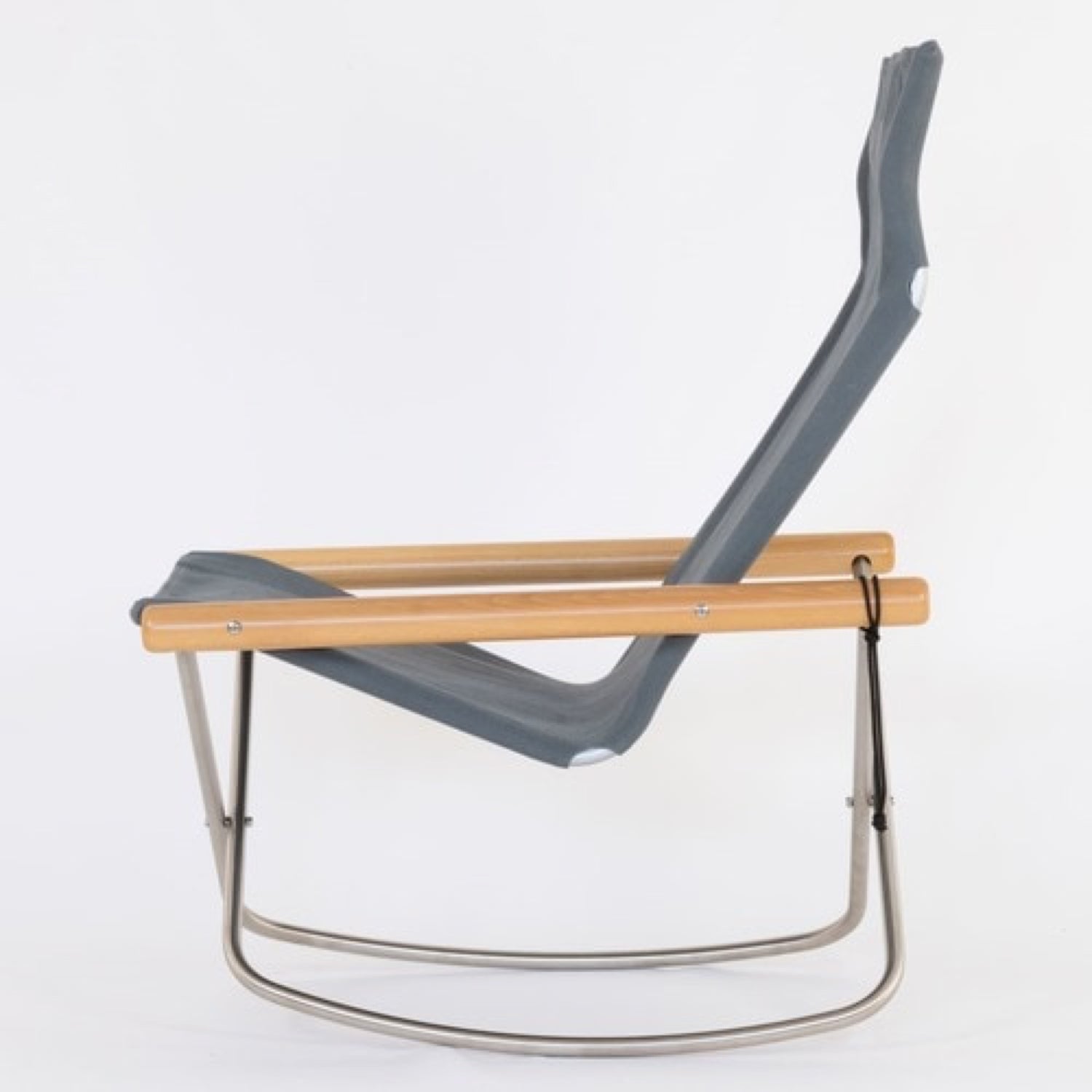 ロッキング 素材 | シート:綿 座・背部芯材:金属(鋼) 肘かけ:天然木(ビーチ) 脚部:金属(ステンレス鋼、ヘアライン仕上げ) |