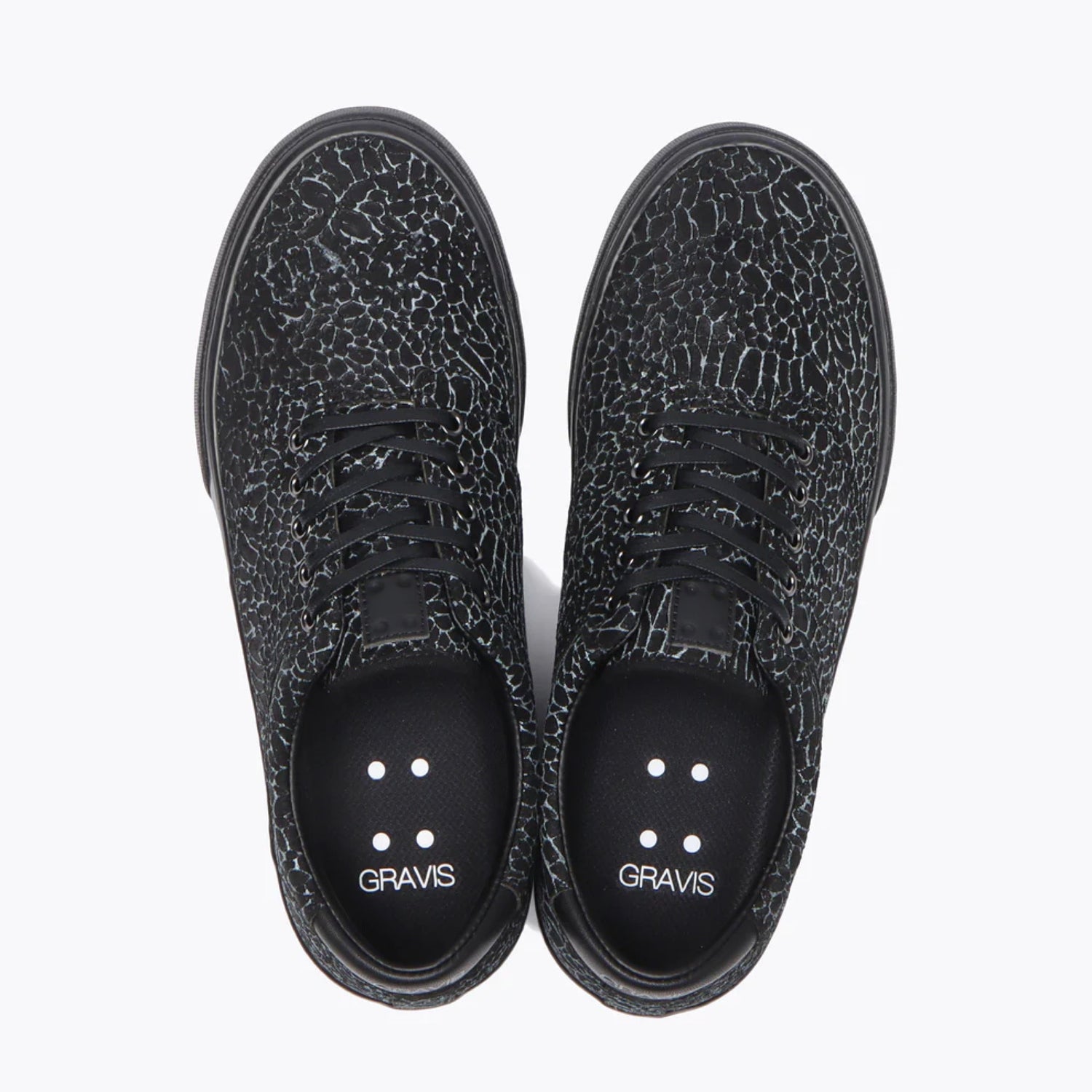 何よりも男心をくすぐる柄に惹かれる一足。立体的なプリントが施された高級感のある革素材を使用しているGravisの不動の定番モデル。周りの目を惹くこのおしゃれ度、高級感を醸し出しているのにこの価格なのがスケシューの良さですよね。ソールもブラックなのも◎