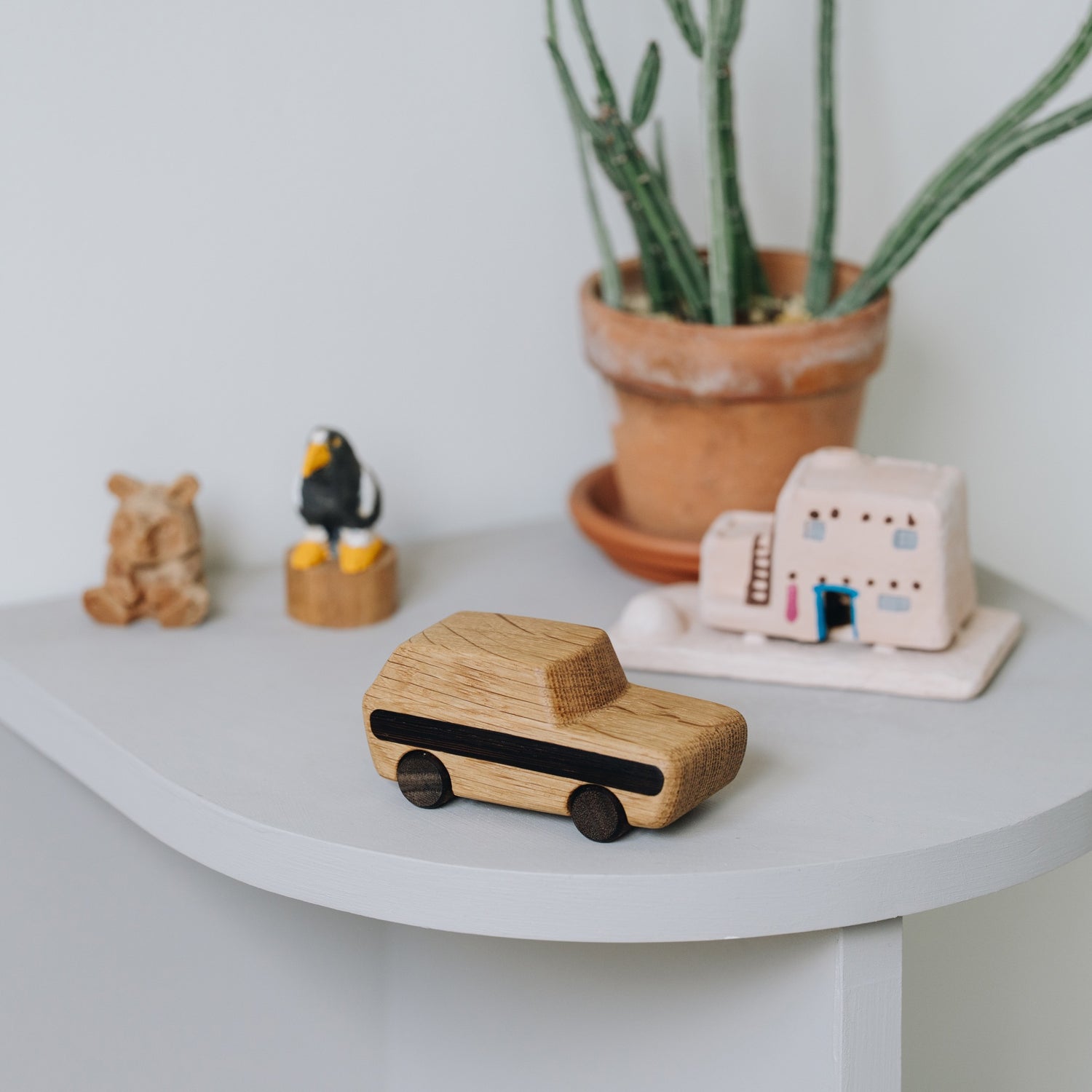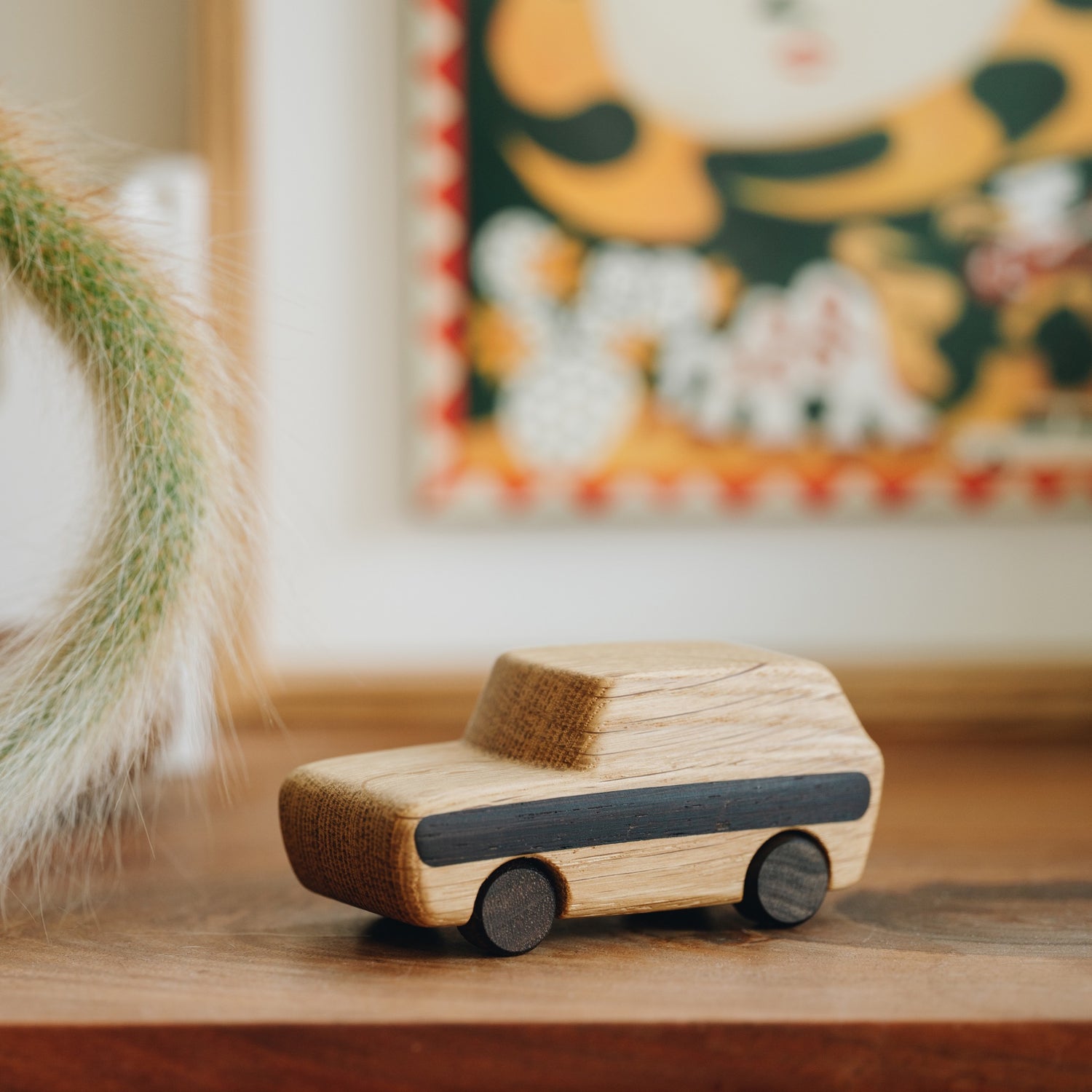 徳島県を拠点に小さな木製品をつくる小石製作所。そんな小石製作所がリリースする車のおもちゃシリーズが「 THIS IS VEHICLE 」です。「 THIS IS VEHICLE 」には色々なモデルがありますが、実はこちらの"BRICK"、僕のイメージやスケッチをもとに何度も試作を重ねた末に完成した小石さんとのコラボモデルなのです!"BRICK"はクラシックなSUV(昔でいうところのクロカン)をイメージしており、70~80年代に流行したウッドパネルが車体の側面に埋め込まれています。かわいいだけじゃく、ワイルドさも合わせ持つ"BRICK"、届いたらぜひ前後へ動かしてみてください。楽しい気持ちになること間違いなしです。
