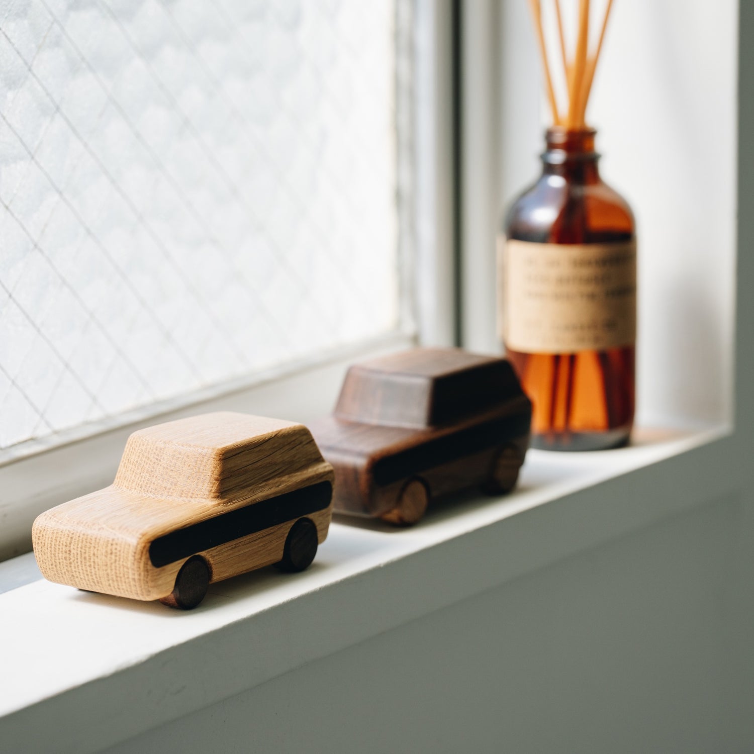 触れる心地よさ、木目の美しさ、木のやわらかさが五感に伝わるミニマムなデザインの車のおもちゃ、「THIS IS VEHICLE」。手に取り、動かし、想像して物語を描く。木の車は、誰しもが一度は体験するおもちゃだからこそ、きちんと木の特性がつまったモノを届けたいと思っています。無垢の塊を精巧に削り出すことで丈夫なつくりに、丁寧な手仕事が佇まいのよさを生み出します。タイヤがくるくる動くので走らせることももちろん可能。お子さまのおもちゃはもちろん、大人の方にもオブジェとして楽しんでいただけます。