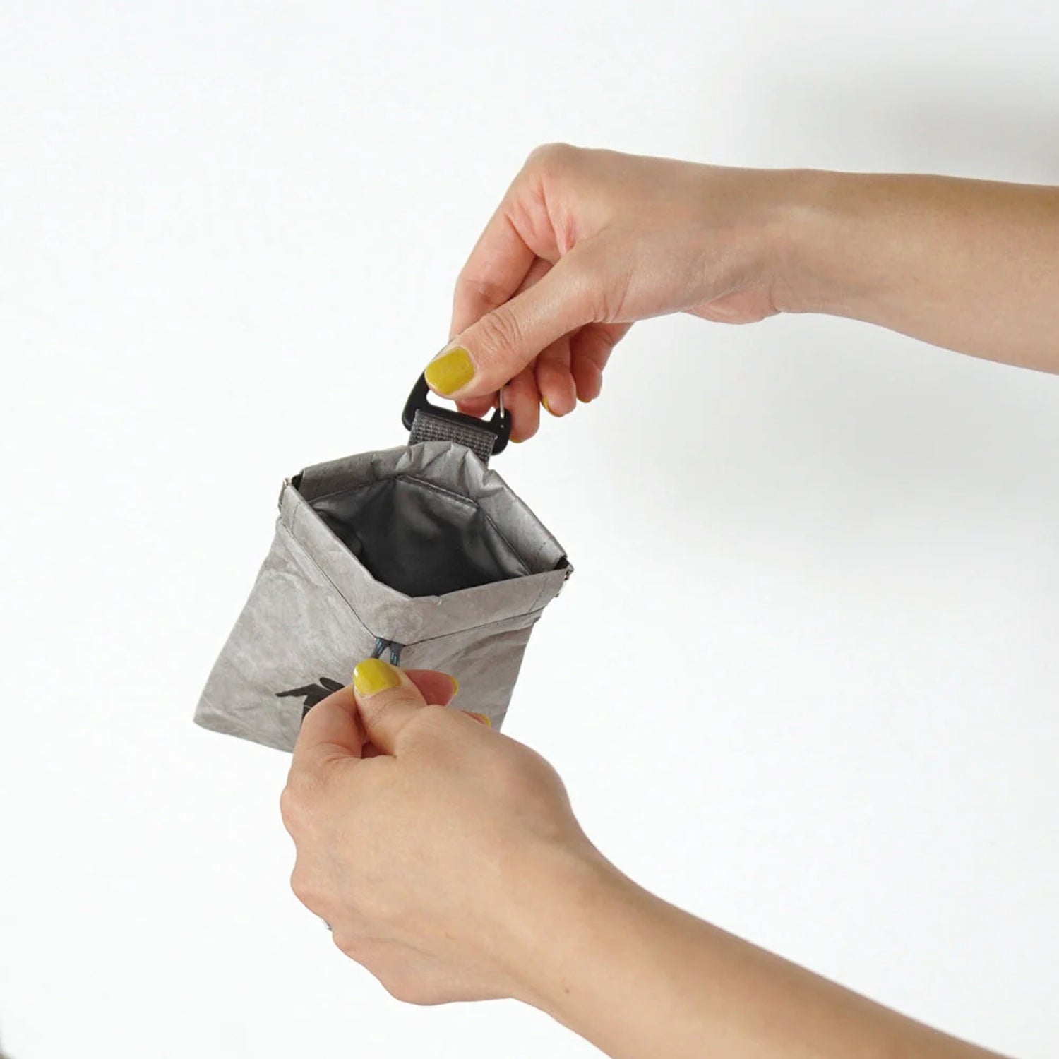 外出先で出てしまうちょっとしたゴミを入れることができる携帯ゴミ箱。お菓子の包み紙、ティッシュ、不要なレシートなど、小さなごみだけど捨てる場所がない・・・そんな時に、”とりあえず”入れておくのに便利な携帯用ミニゴミ箱。家に帰ったら、中のゴミを捨てるだけ。手のひらサイズで邪魔にならず、バッグの中に入れて置いたり、カラビナで取り付けて。お出かけにはポーイを持ち歩きましょう! 本体背面には、ウェットティッシュやポケットティッシュが入れられるポケット付き。セットで持ち歩けばどちらかを忘れてしまうこともなく便利です。
