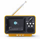 ブラウン管テレビ風に曲面加工された液晶画面。画面サイズは16:9と4:3を切替えできます。