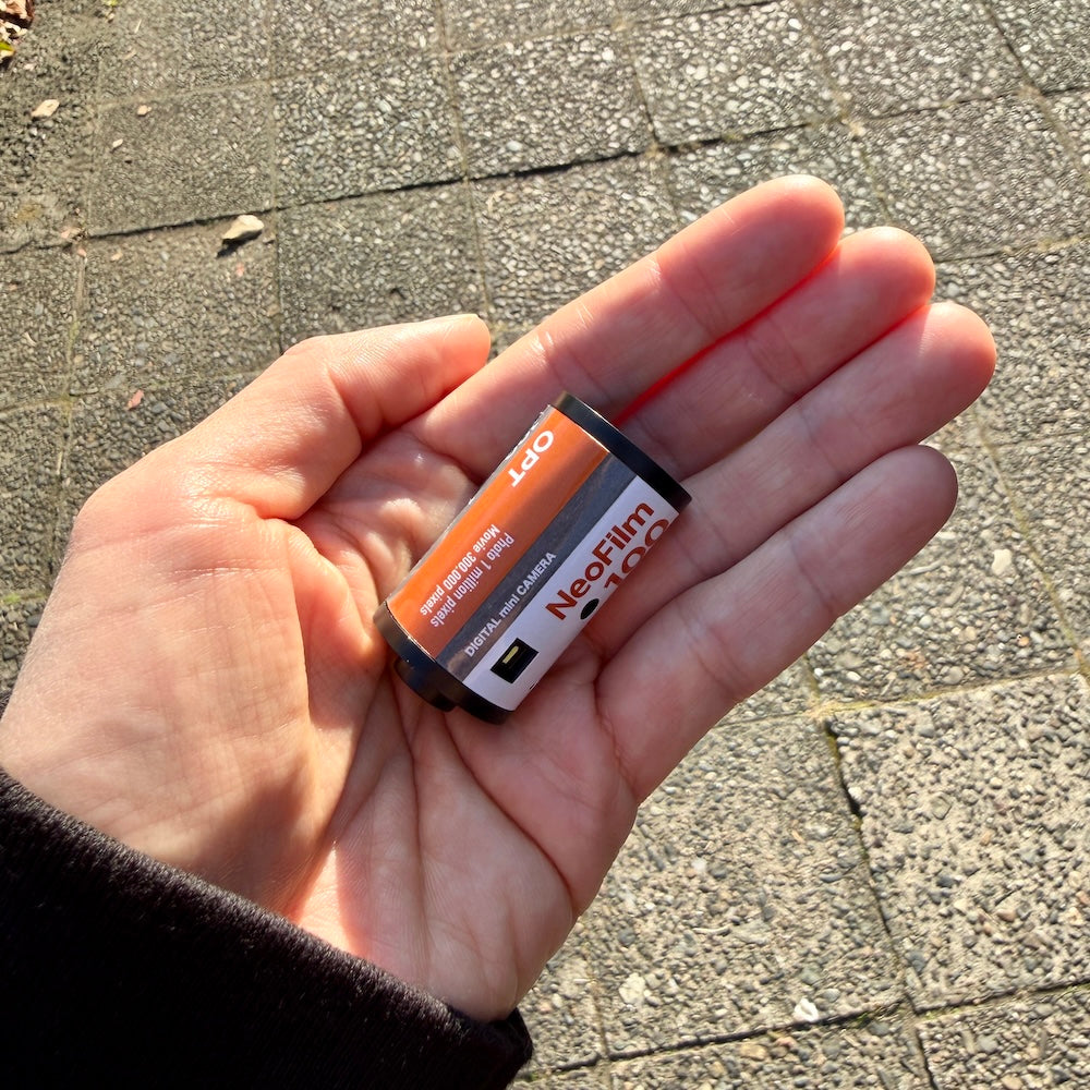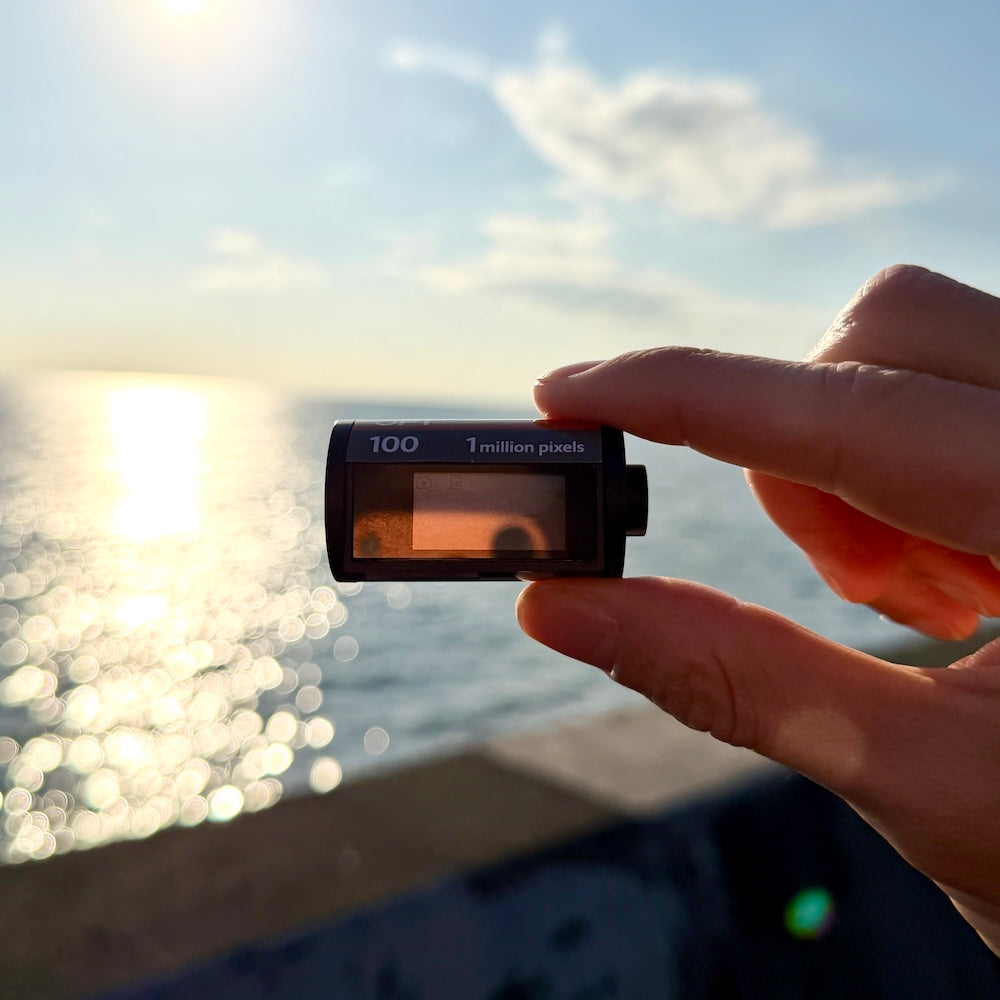 スマホで写真や動画を撮ることに、ちょっとしたハードルを感じていて。構えた瞬間に撮りますよって空気が生まれるのがどうも苦手。でも、日々のなかで残しておきたい瞬間はあるわけで。そのあいだの気分をゆるく埋めてくれたのが、このフィルム型の小さなカメラだった。実際のカメラフィルムよりひと回り小さく、重さはほぼ同じ。超ミニサイズってこと。コンビニに行く時も、朝の有酸素の時も、飲みに行く時も、必ずこいつをポケットに入れて出かけるようになった。このサイズと形のせいか、撮る瞬間の構える空気が全く生まれない。相手も自然体のままいられる。静止画でも動画でも、そのときの空気ごと保存できる感じ。気負わずにさくっと撮れるのに、あとで見返すと、その日の機嫌まで戻ってきちゃう。エモい画質も最高にいい味を出してる。友達と飲みに行ってなんとなく撮った一枚や数秒の動画が、あとで見返すとめちゃめちゃお気に入りの1枚になったり。友達でも恋人でも家族でも、あとで思い出になるのって、特別な日より、一緒にただ過ごしていただけの時間だったりする。そういう空気まで写してくれるカメラです。(商品説明欄の下の方に僕が作ったリールがあるので、実際にどんな写真・動画が撮れるか見てみてください!)