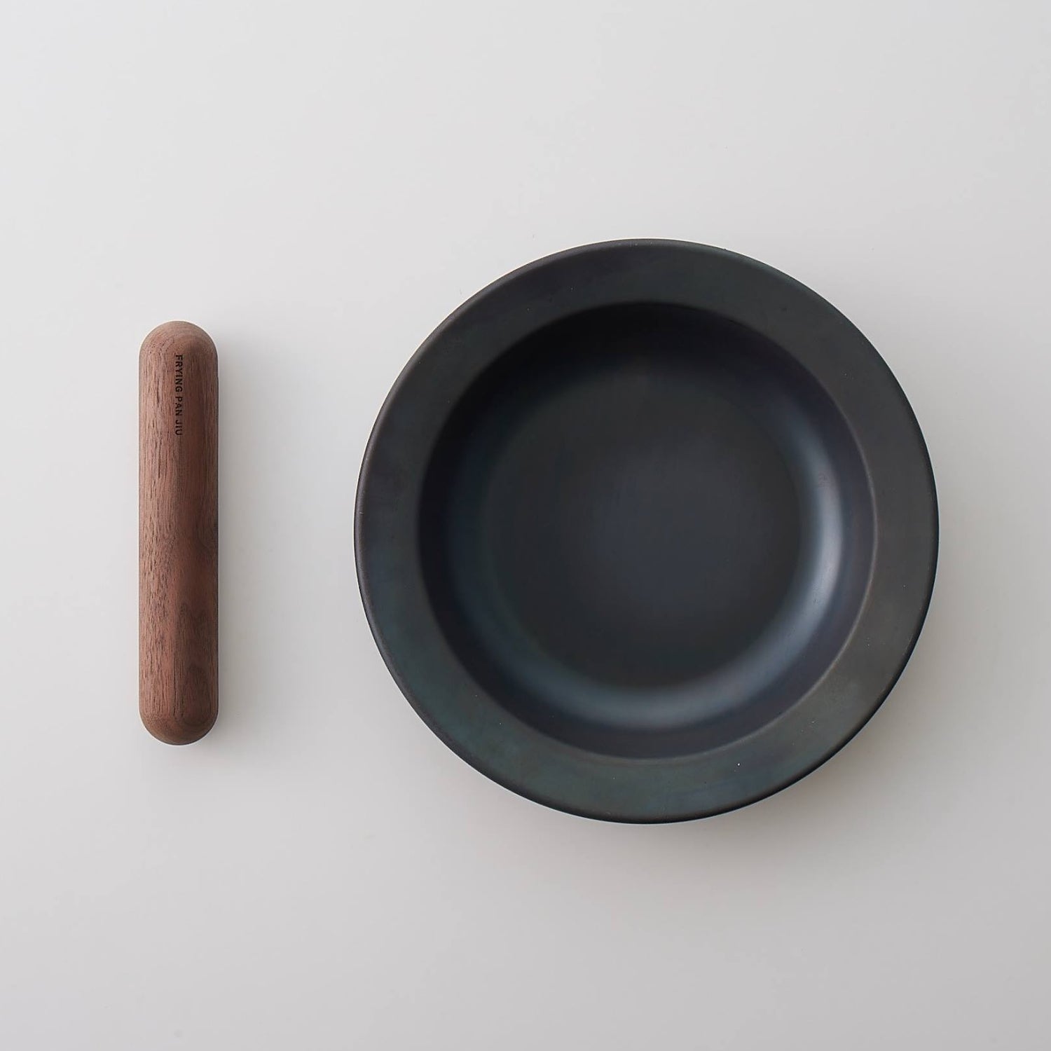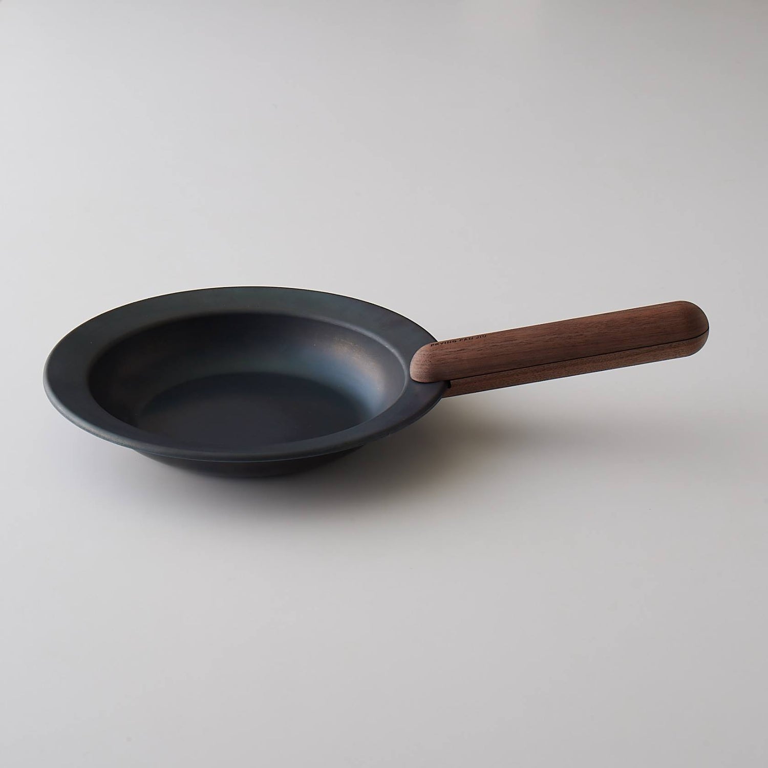 大阪の小さな町工場藤田金属株式会社と、東京の小さなデザイン事務所TENTが一緒に試行錯誤を繰り返し、ようやくたどり着きました。お皿のような見た目でも、もちろん鉄フライパンとしては最高品質。1.6mmの厚みを持った鉄フライパンなので、お肉はジューシーに、野菜はシャキシャキに、パンや揚げ物、焼きおにぎりは、外はサクッと中はフワフワに焼けます。
