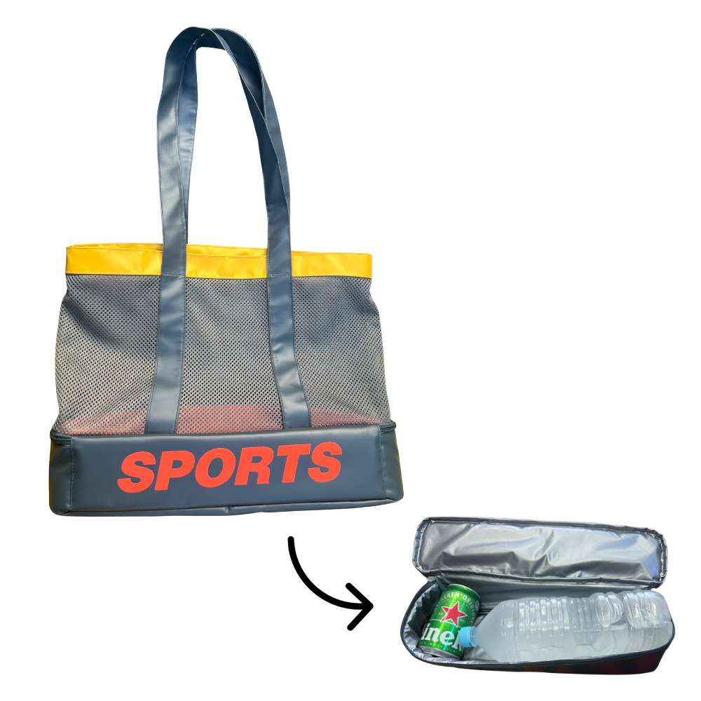 Sonyのあのカラーリングを落とし込んだトートバック。90’s好きな方には、たまらない配色。底が保冷になってるところも嬉しいポイント。街は勿論、レジャーでも使って欲しいです!