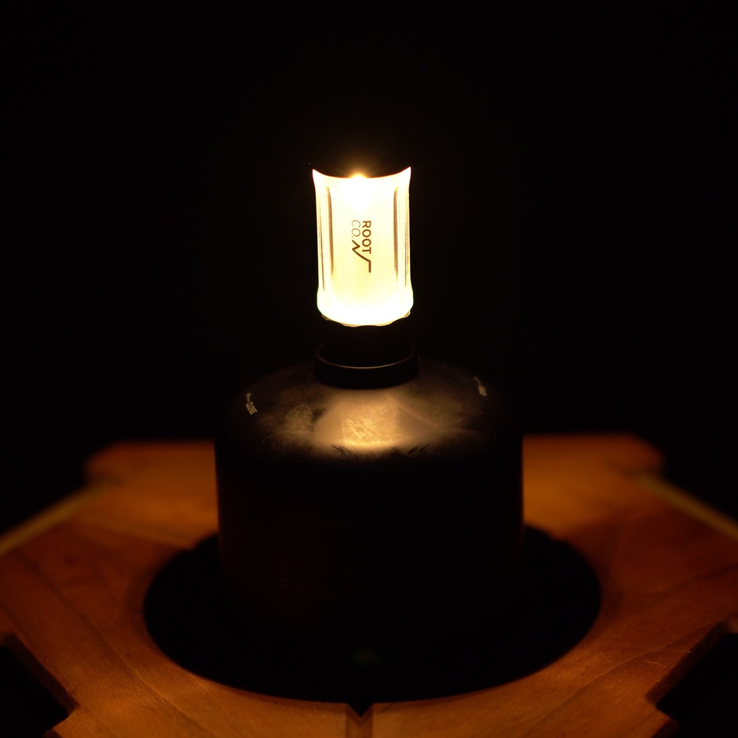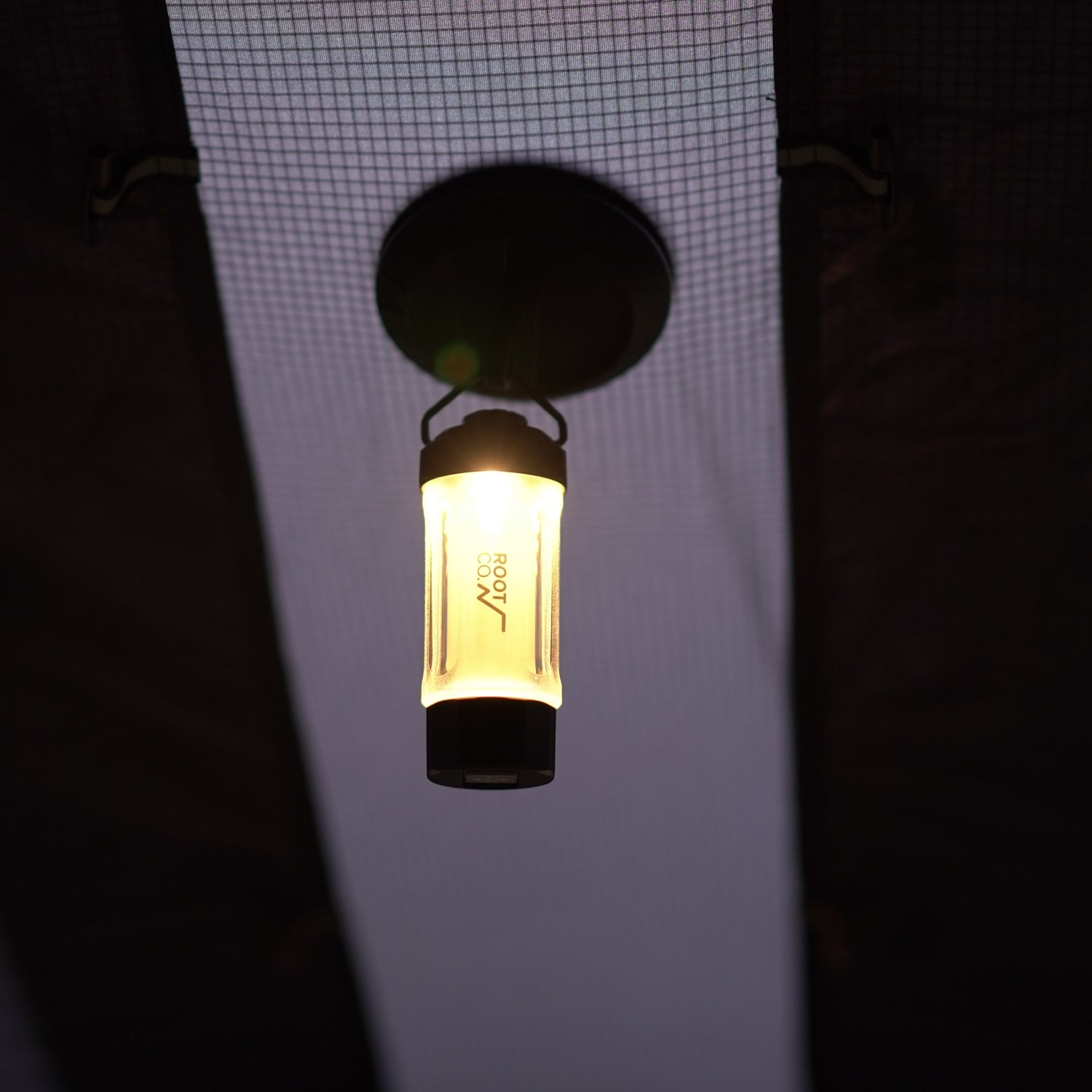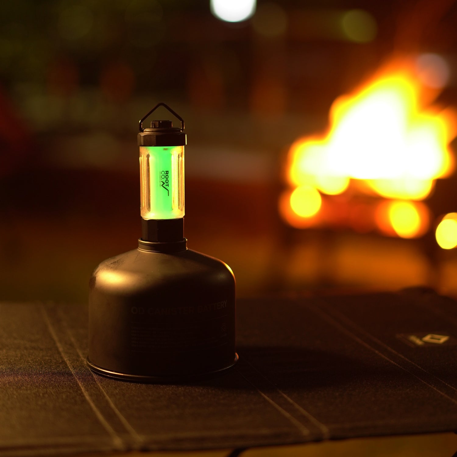 ミニLEDランタンは手のひらサイズなのに、最大120ルーメンの無段階調光。しかも蓄光タイプだから、夜真っ暗でもほんのり光って居場所がわかる。USBで給電できるから、OD缶型のバッテリーにそのまま挿して点灯OK。上にランタン、下にバッテリーっていう構成がハマりすぎてて、置くだけで“照明ギア”として成立してる。もちろん、単体で吊るしたり、テーブルにそのまま置いても雰囲気あっていい。