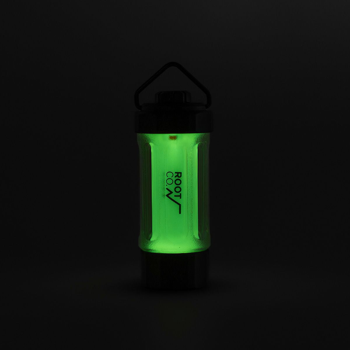 「ポータブルハブバッテリー」とアタッチメント可能なLEDランタン(蓄光タイプ)。バッテリーを内蔵しているためランタン単体でも使用可能ですが、ポータブルハブバッテリー(別売)と組み合わせることでより実用的に。本ランタンのUSB-A充電コネクタをポータブルハブバッテリーの天面側USB-Aポートに挿し込むことで、“給電”と“スタンド機能”を一体化してスマートな使用が可能となります。また、持ち運びやすいミニマルなサイズ感ながらも最大120ルーメン&使いやすいダイヤル式無段階調光機能を搭載し、キャンプ等で快適に使える機能をプラスしました。
