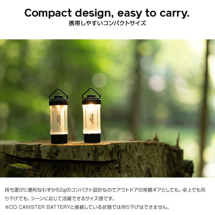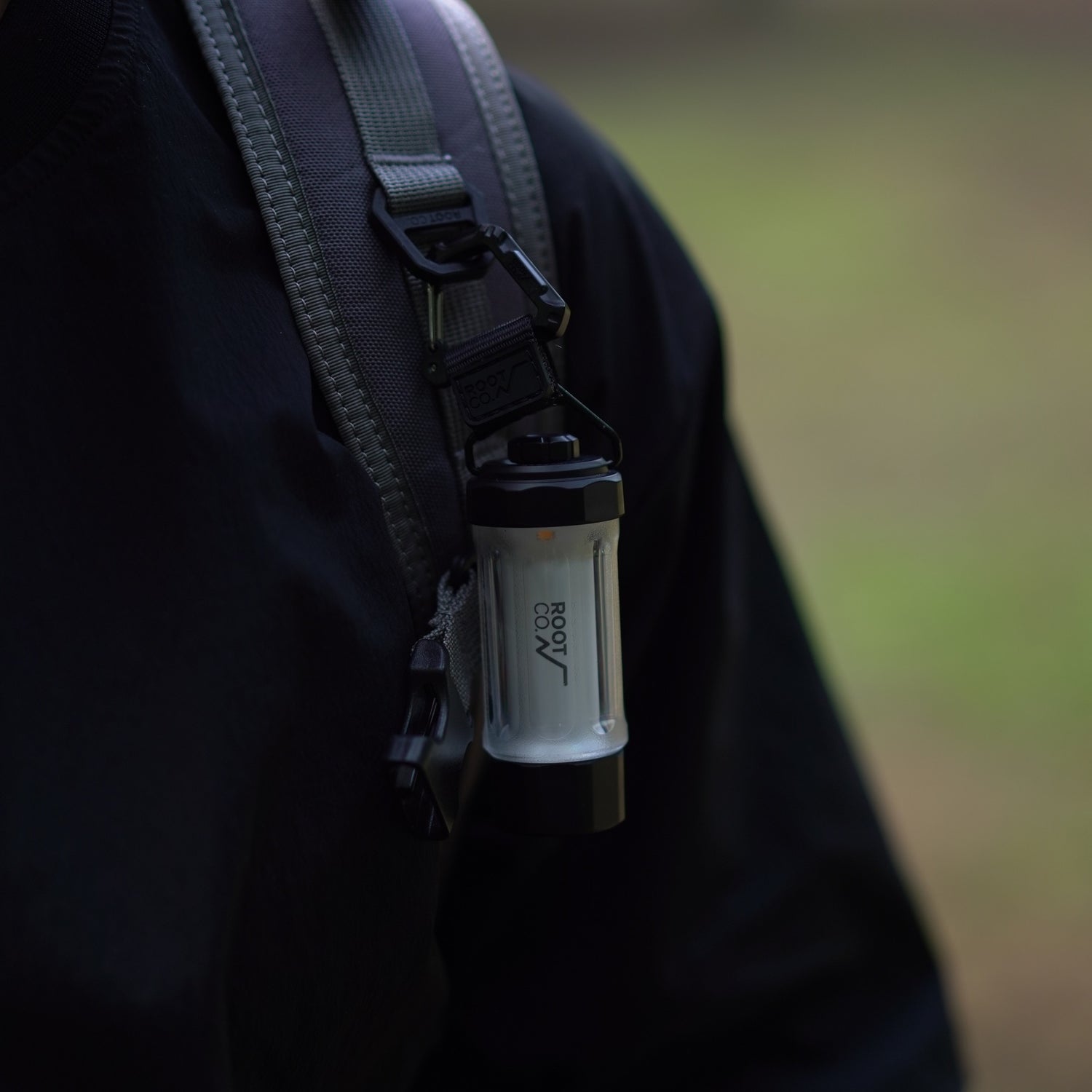 持ち運びに便利なわずか約52gのコンパクト設計なのでアウトドアの常備ギアとしても。卓上でも吊り下げでも、シーンに応じて活躍できるサイズ感です。 ※ポータブルハブバッテリーと接続している状態では吊り下げはできません。
