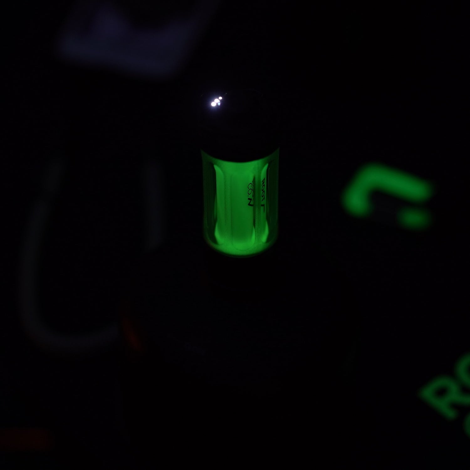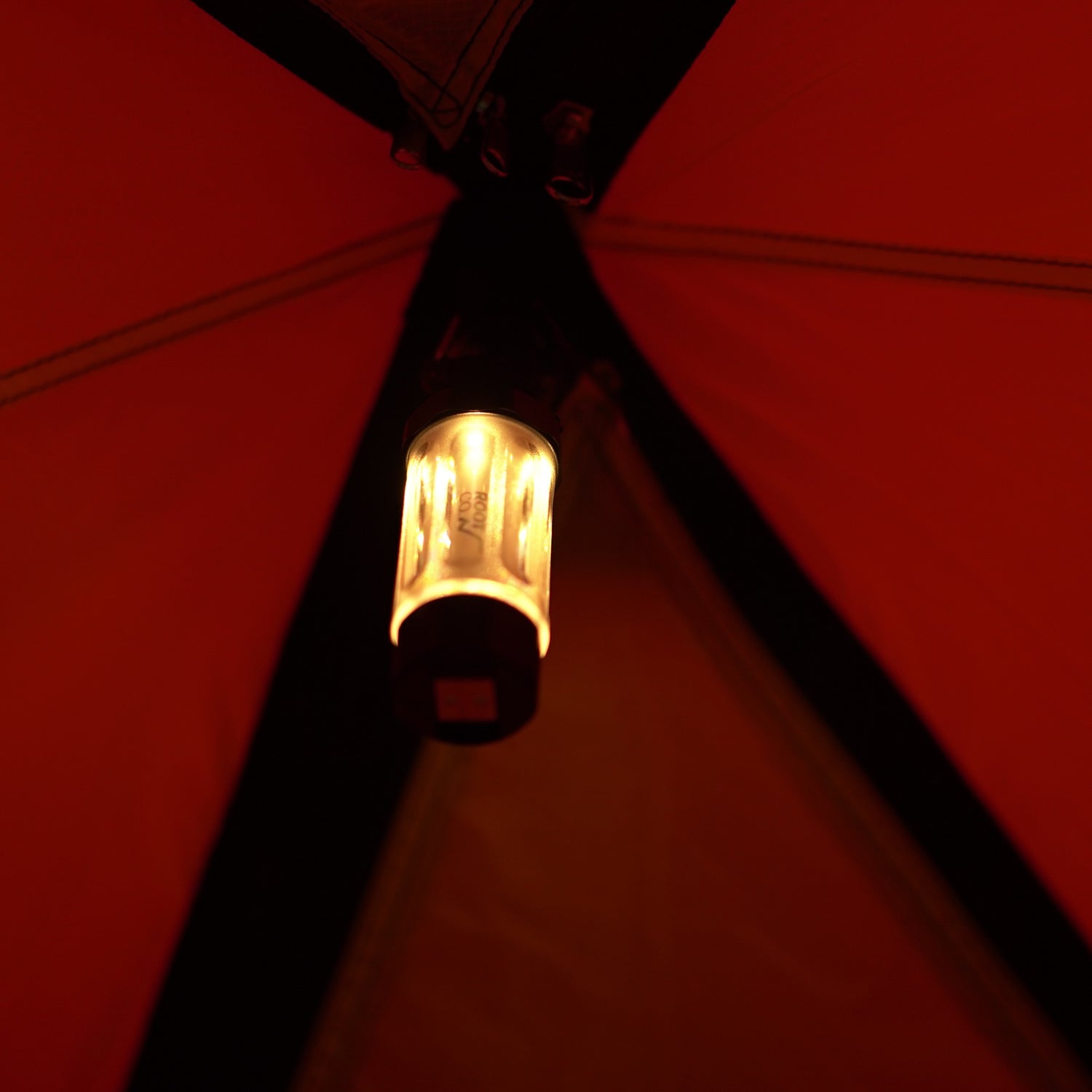 ランタン内部に蓄光素材を使用。点灯中に光を蓄え、消灯後はほんのり光るため、暗闇でもランタンの位置がすぐに確認でき夜間のキャンプでも安心です。