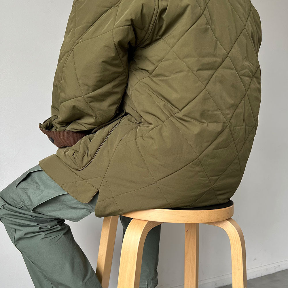 はんてんグジャケットとは僕が勝手に作った言葉です。日本の古き部屋着の文化でもある「はんてん」をアップデートした「DAN-TEN」がなんとハンティングジャケットになりました。なので造語で「はんてんグジャケット」と僕は呼んでいます。写真を見てもらえれば一目ですがはんてんのボテッとした形とハンティングジャケットの特徴であるポケットのバランスがとてもかわいい。色もどれも素晴らしいので悩んでくださいね。僕は部屋着としても使うけど、仕事着としてちょっと寒いときにオフィスで羽織っています。少し作家の先生感も出て気に入っています。