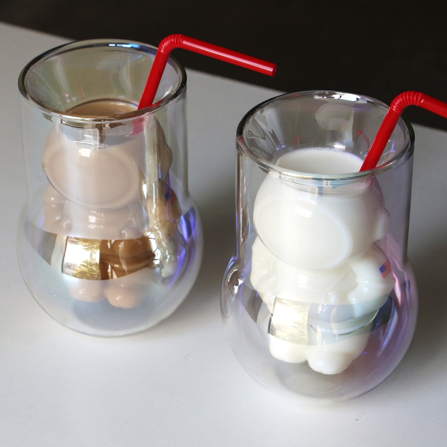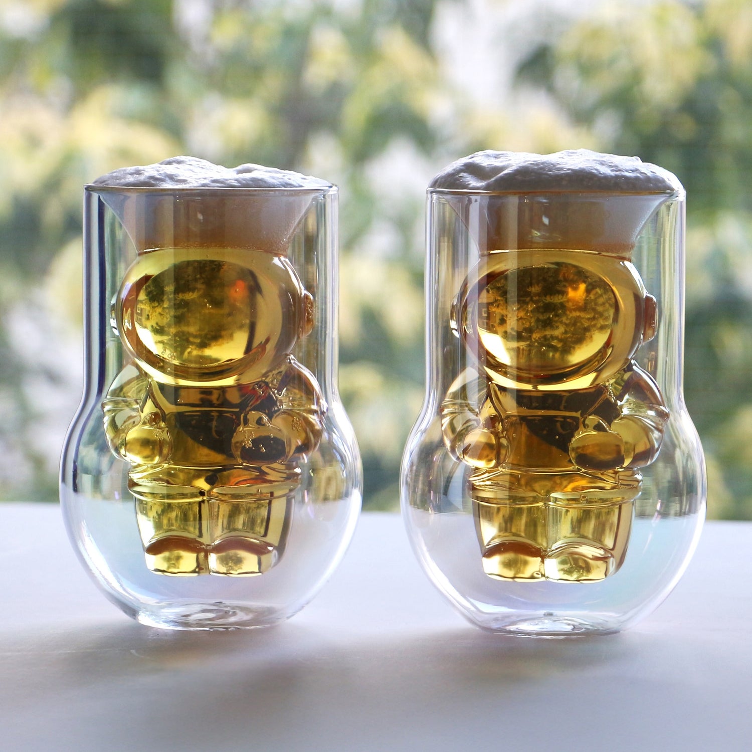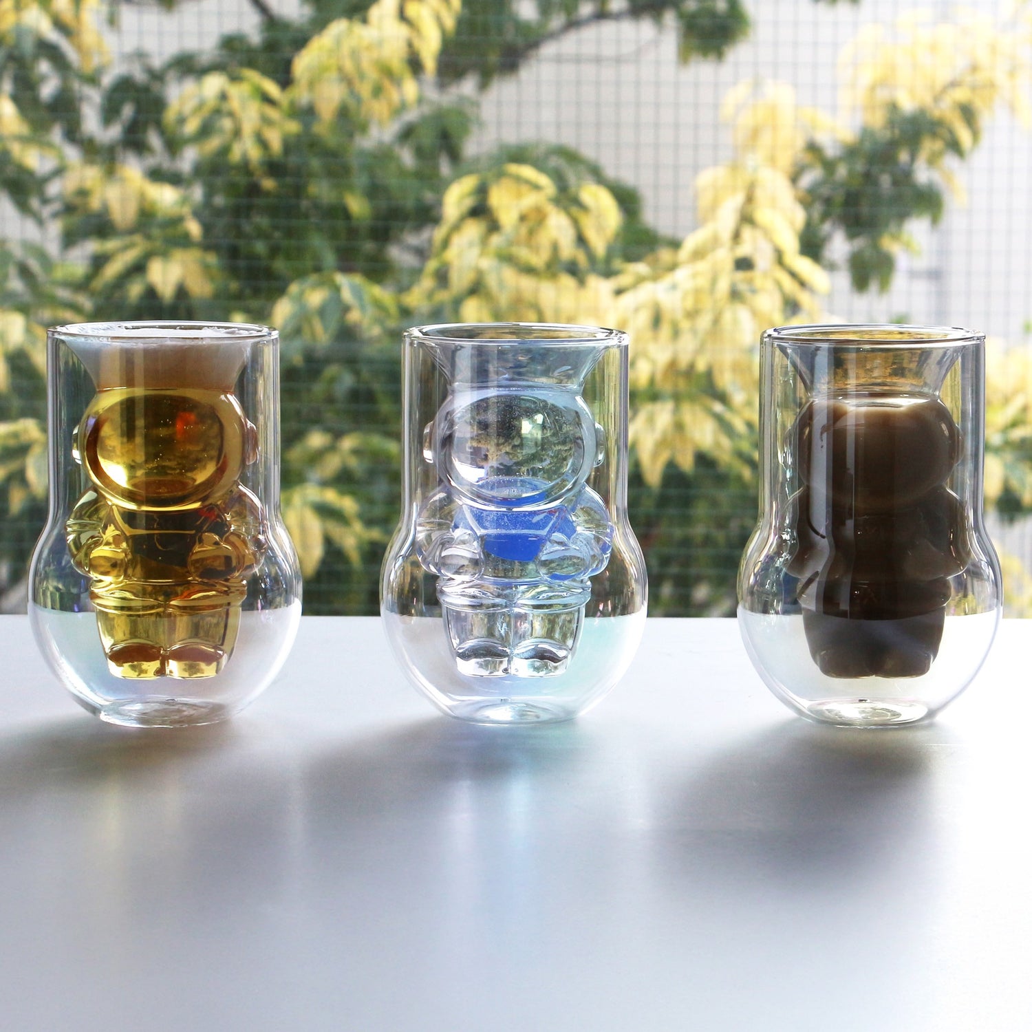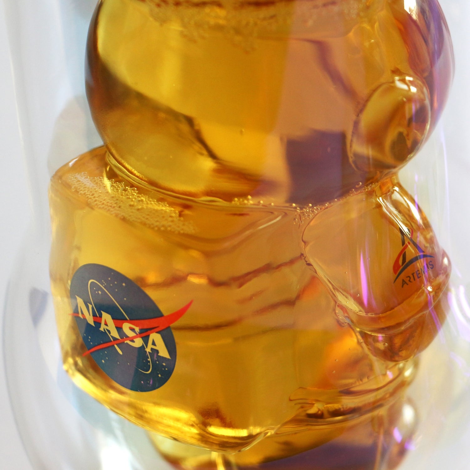 デフォルメされた宇宙飛行士のシルエットながらも、左肩にはアメリカ国旗、右肩にはアルテミス計画(※)のマークが施されるなど本格的。宇宙空間で行う船外活動の際に背負う生命維持装置にNASAのロゴプリントが施されているのはコラボレーションの証です。 日常使いにちょうどいい 8オンス (約240ml)の容量で、注いだドリンクの温度を保つダブウォール構造と機能的。ビールやミルクなど注ぐドリンクによって違う表情の宇宙飛行士が現れるユニークさは大人から子供まで惹きつけます。手に持ってもドリンクの温度が伝わりやすいので、お子様でも安心なグラスです。2個セットでそのままギフトとしても差し上げられるパッケージデザインです。