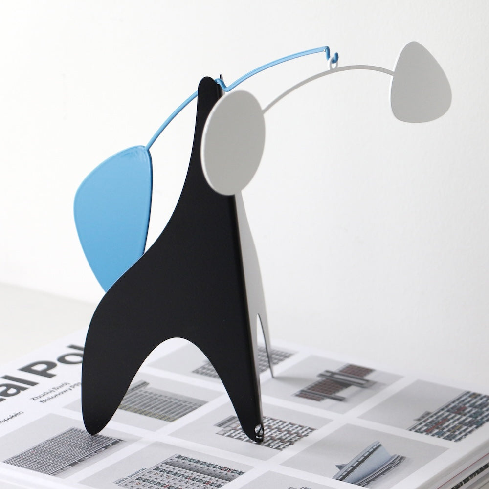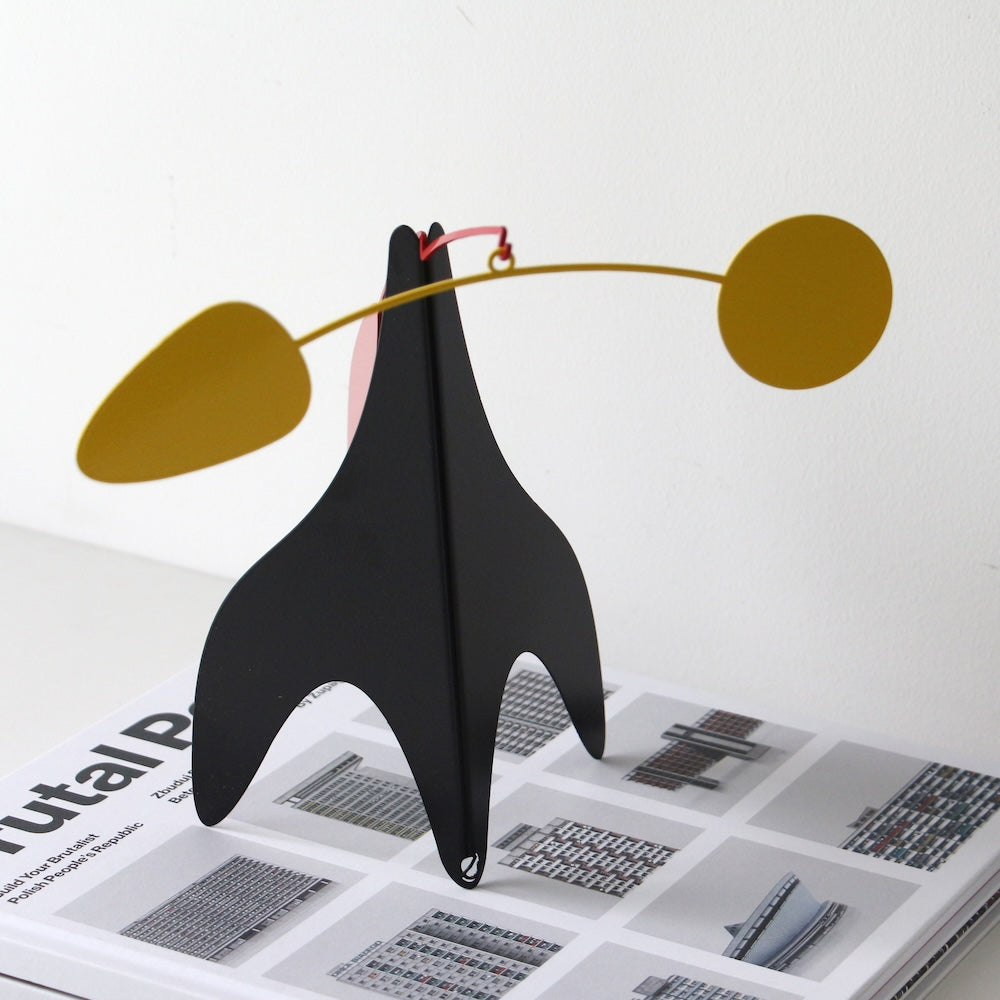 モビールがゆったりと揺れ動く様子は、慌ただしい日常を忘れさせてくれるような、穏やかでやわらかい時間を与えてくれます。ただそこにあるだけで感性を刺激し、心地よい時間が生まれる。そんな豊かな暮らしを叶えてくれるアートピースです。豊富な経験をもつエンジニアとデザイナーが手がけたこのプロダクトは、レーザーカットされた繊細なフォルムのアルミニウムパーツと、スチールのベース部分を組み合わせた、シンプルでありながらどこか有機的な雰囲気をもつモダンデザイン。天井に固定する吊り下げ式とは異なり、パーツを組み合わせて設置するだけのシンプルな構造は、デスクや書斎、キャピネットなど気軽にインテリアの中に取り入れることができます。