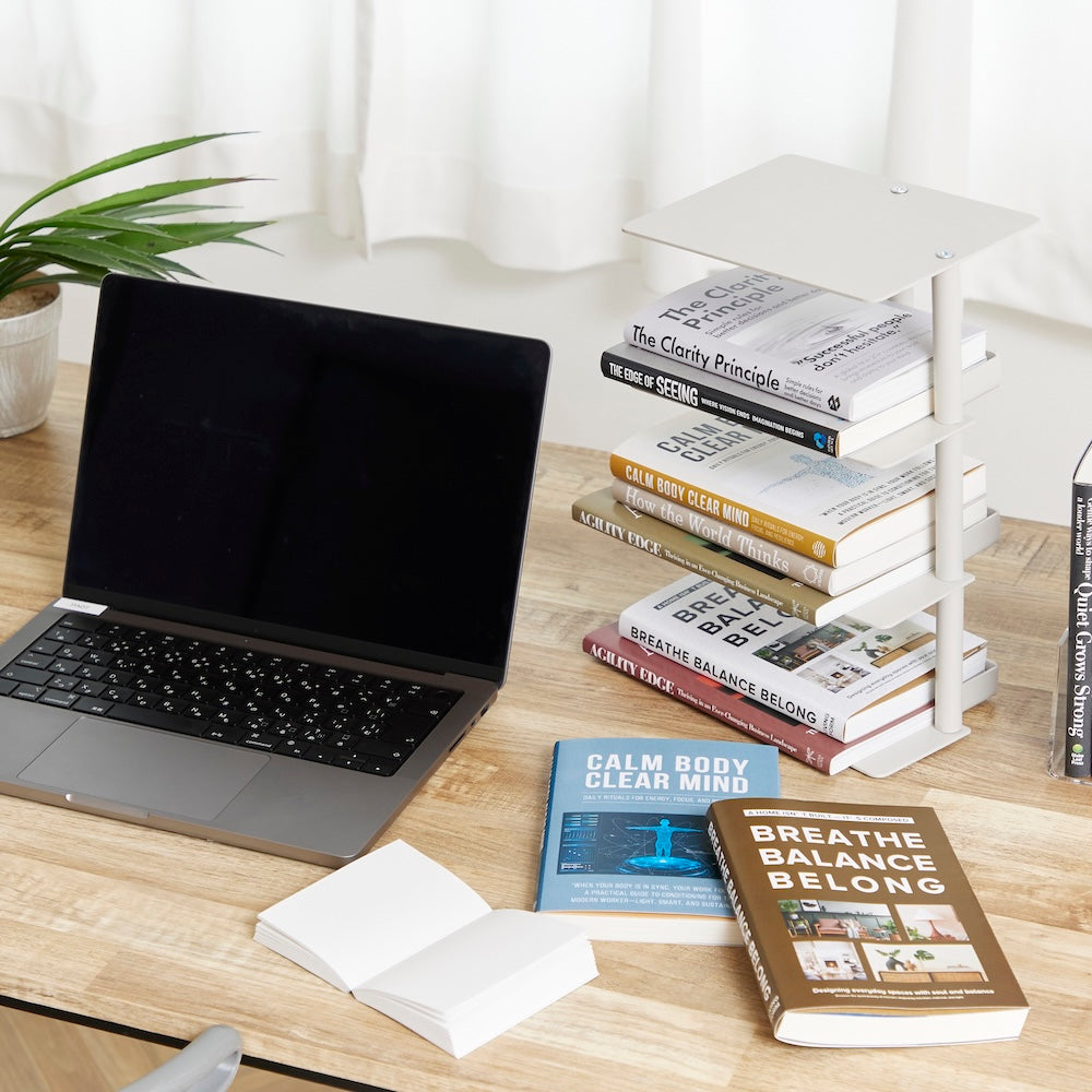 みなさんのご自宅やオフィスの机の上には、「読んでいない本」が積まれていませんか?積読(つんどく)ホルダーは、積読本をキレイに整理し、確実に読み進めることができる、卓上本棚です。本を整理して、頭もすっきり整えてみませんか?
