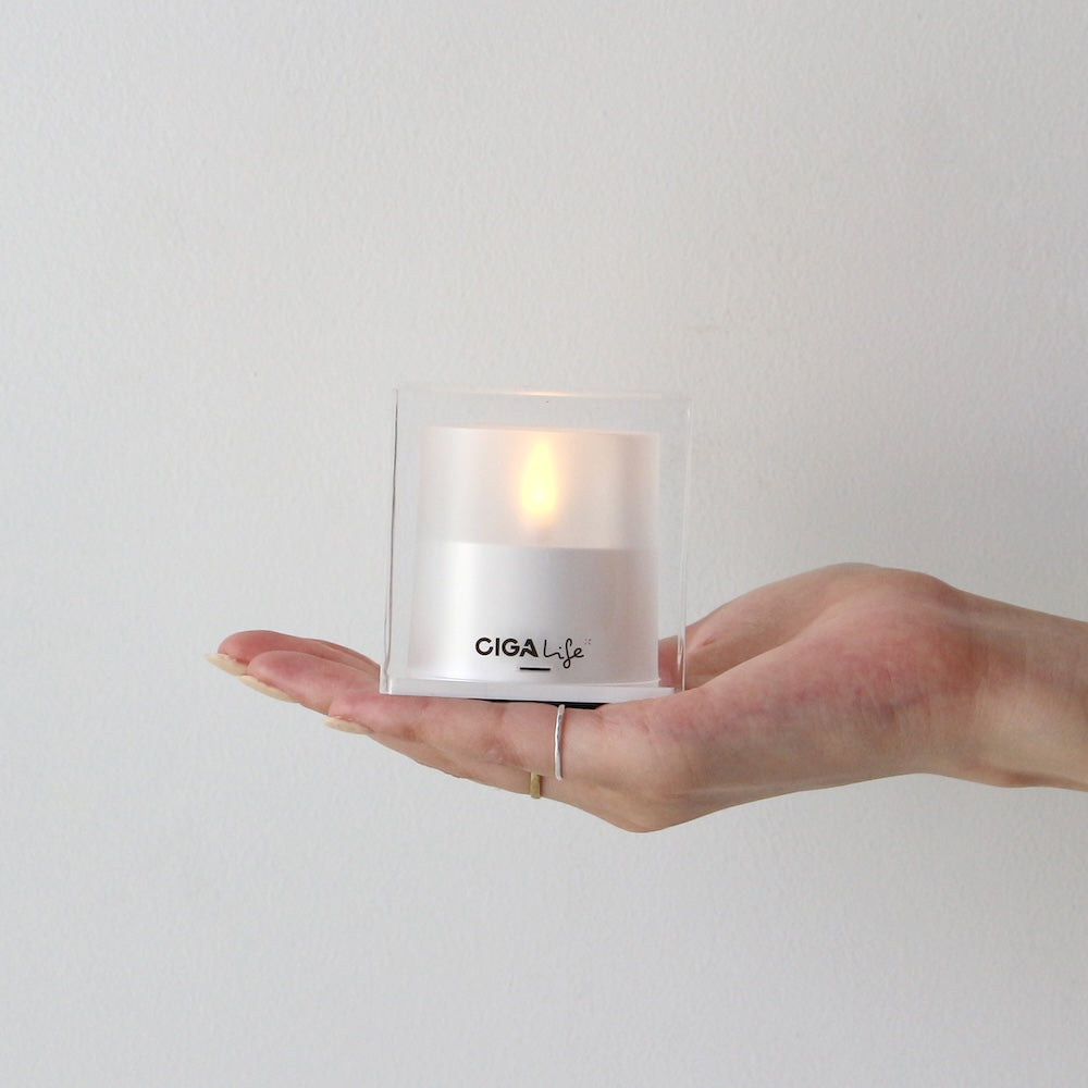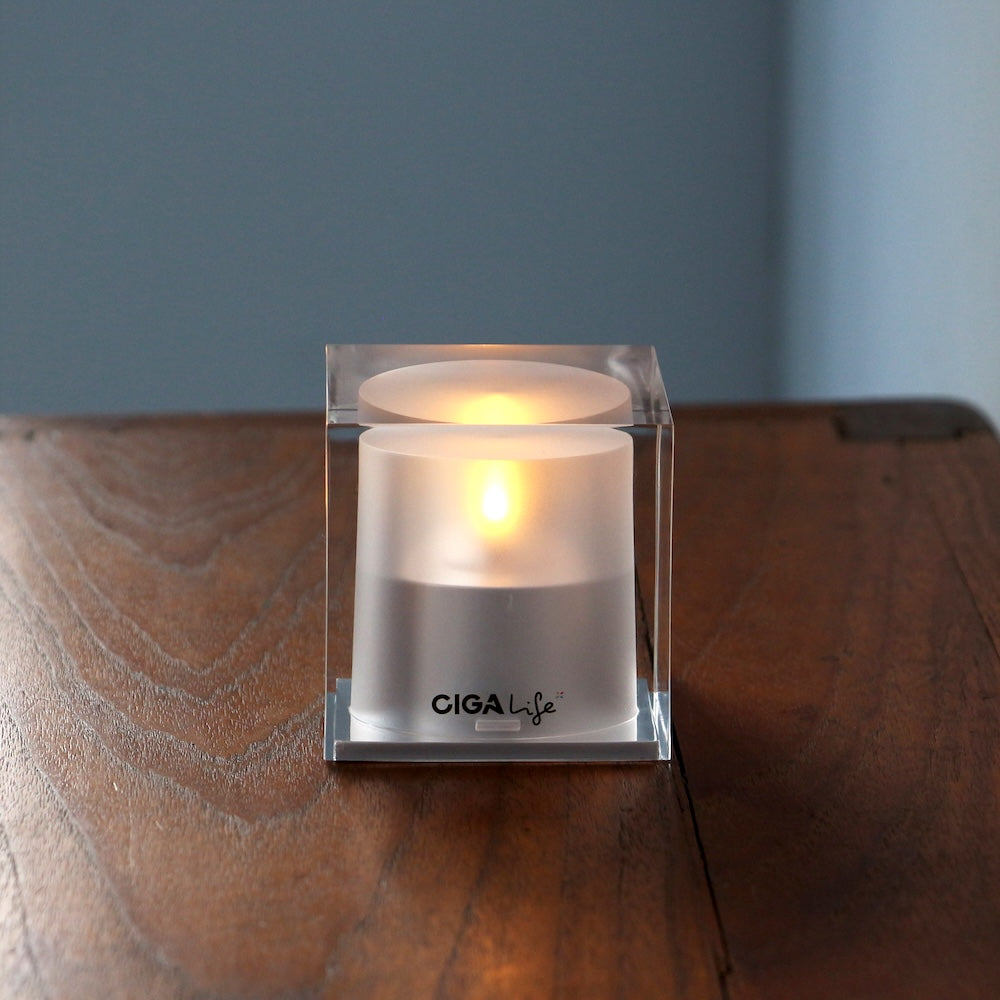 このキャンドル、消すときに息を吹きかける。当たり前じゃん?いいえ、これ本物のキャンドルではありません。本物の炎みたいにやさしく揺れる光を再現した、ソーラー充電式のLEDキャンドルです。火を使わないから安全なんだけど、炎感はかなり本気。本物と勘違いしちゃうくらい。でも、消す動作だけはキャンドルの所作を残しているのが、このアイテムのいちばんズルいところ。ノックすると反応して、最後は息を吹きかけて消す。このギミックはなくてもいい。でも、この無駄さがいい。消す瞬間まで、ちゃんとキャンドルでいさせてくれる。本当にモノとして好きで使って、結果エコです、非常時にも使えます、僕の理想。ダイニングテーブルに置いて、お香を焚いて、お酒を飲む。音楽を止めて、グラスを置き、部屋の明かりを落とす。最後はふっと息を吹きかけて消す。ベッドサイドに置いて、少しだけ携帯を見る。あ、もうこんな時間だと、眠る前にふっと吹きかけて消す。