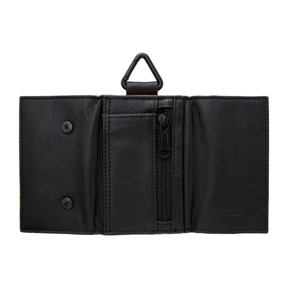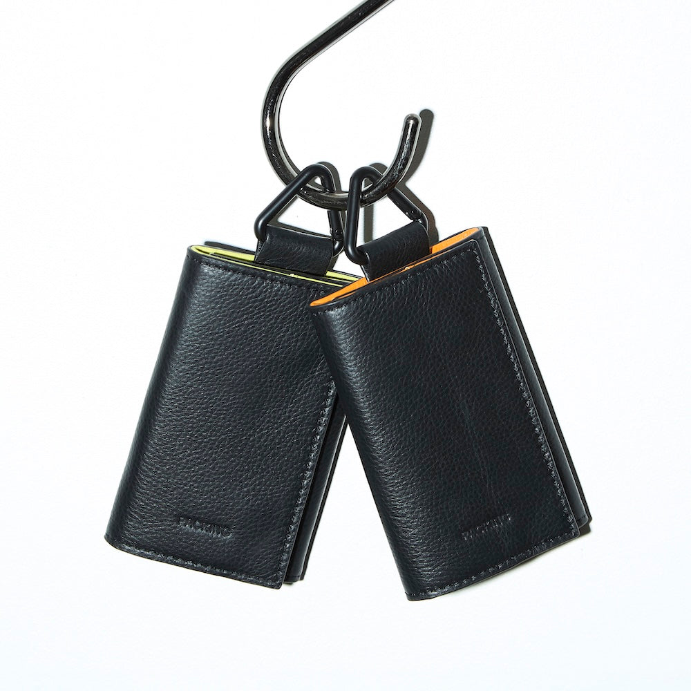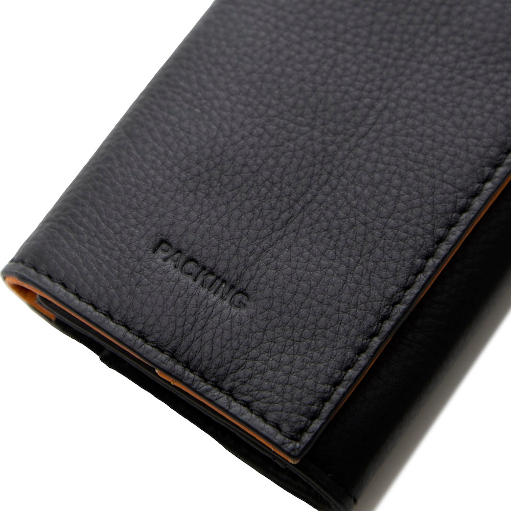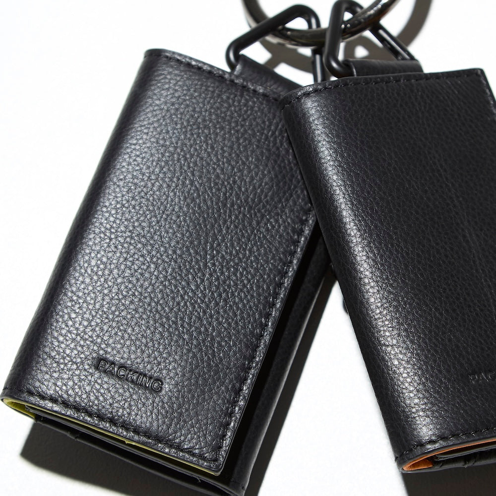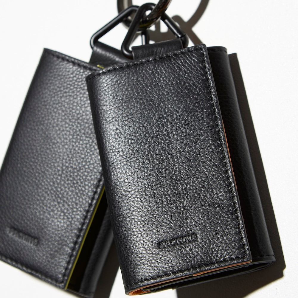 数年前にブルックリンやニューヨークのアートスークールの生協だったり、大学の生協を周った時があって。そこにシンプルで安いバッグパックやトートバッグが売っていたんです。そんなバッグを思い出させてくれるようなこのPACKING。野暮ったいアメリカっぽさも感じさせてくれるミニ財布。こちらは、レザーの生地を使用したもの。小さいながらも、カード入れが2つ、お札入れ、小銭入れと収納力あり。カラビナが付いていて、ベルトループへの装着も可能です。