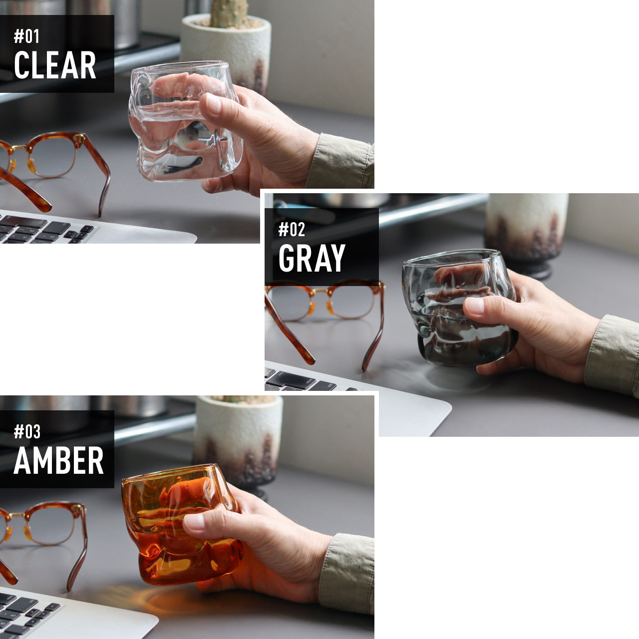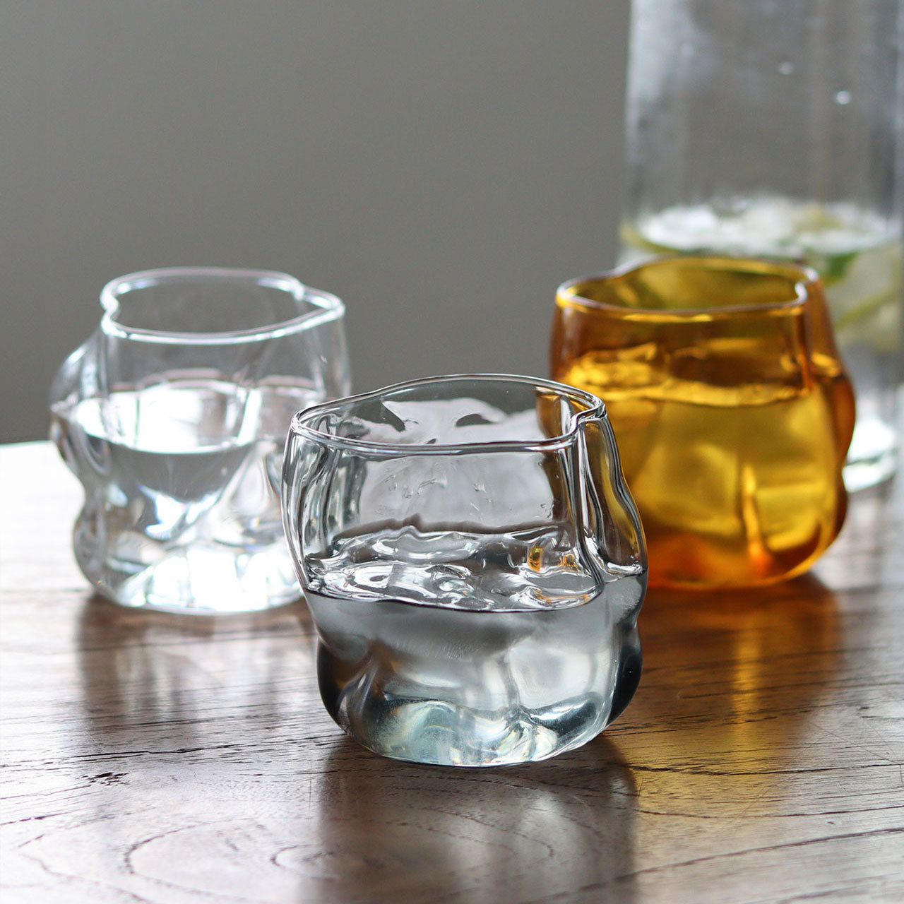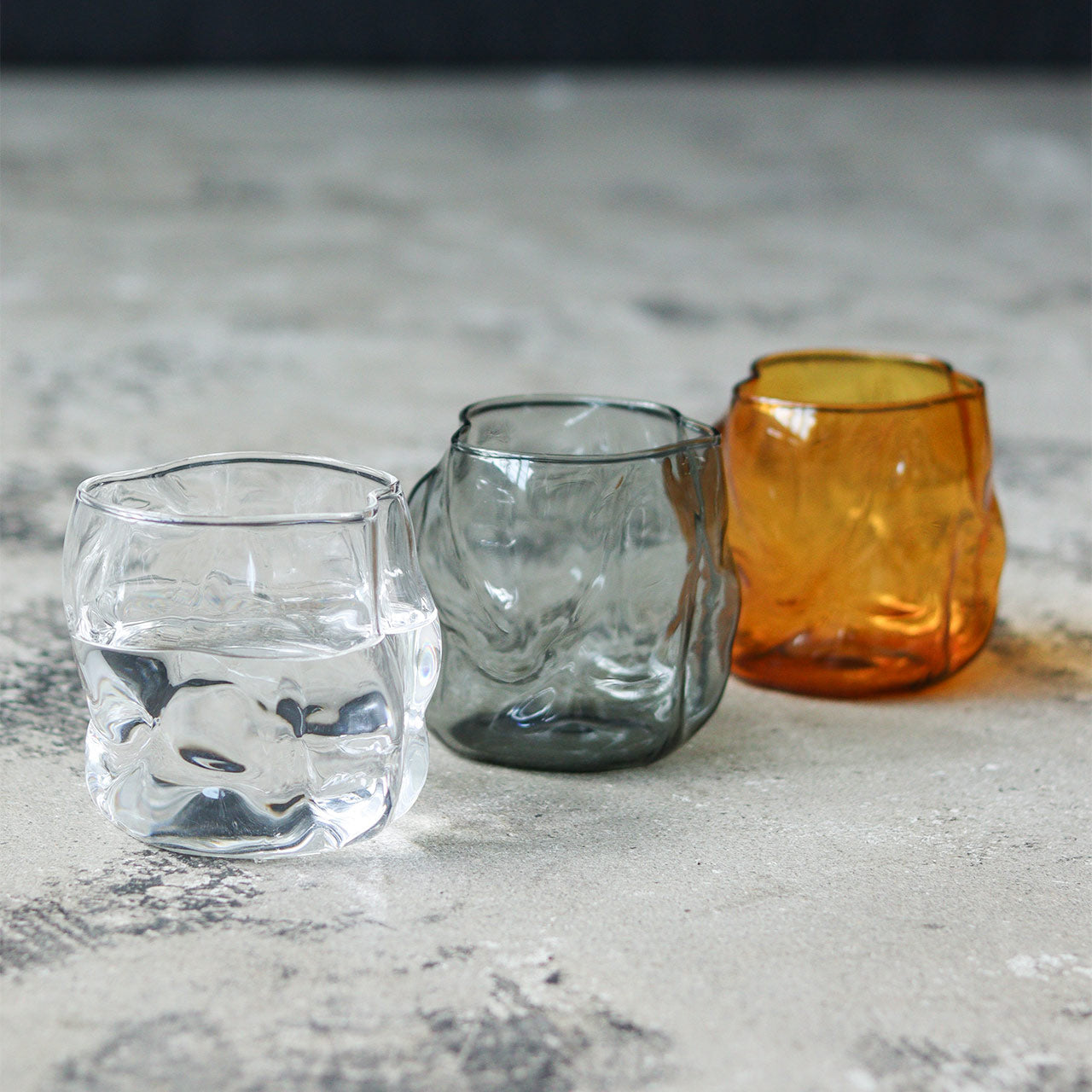 コペンハーゲンを拠点に活動するプロダクトデザイナー、グレン・オーカーによってデザインされたグラスウェア。インテリアとコンテンポラリーなキッチンウェアの融合をテーマに生まれた、アート性と実用性を兼ね備えたガラス器です。有機的な曲線が描くやわらかなフォルムは、視覚的な美しさだけでなく、手に自然と馴染む心地よい使い勝手も実現。注ぎやすさにも配慮された、機能美のあるデザインに仕上げられています。素材には耐熱ガラスを採用し、120℃まで対応。電子レンジや食洗機も使用できるため、日常使いにも気兼ねなくお使いいただけます。カラーはクリア、グレイ、アンバーの3色展開。いずれも空間にやさしく溶け込み、落ち着いたインテリアにも自然と馴染みます。ロックグラスとしてはもちろん、フラワーベースとして空間を彩るインテリアアイテムとしても。暮らしの中でさりげなく存在感を放つ、デザイン性豊かなグラスです。